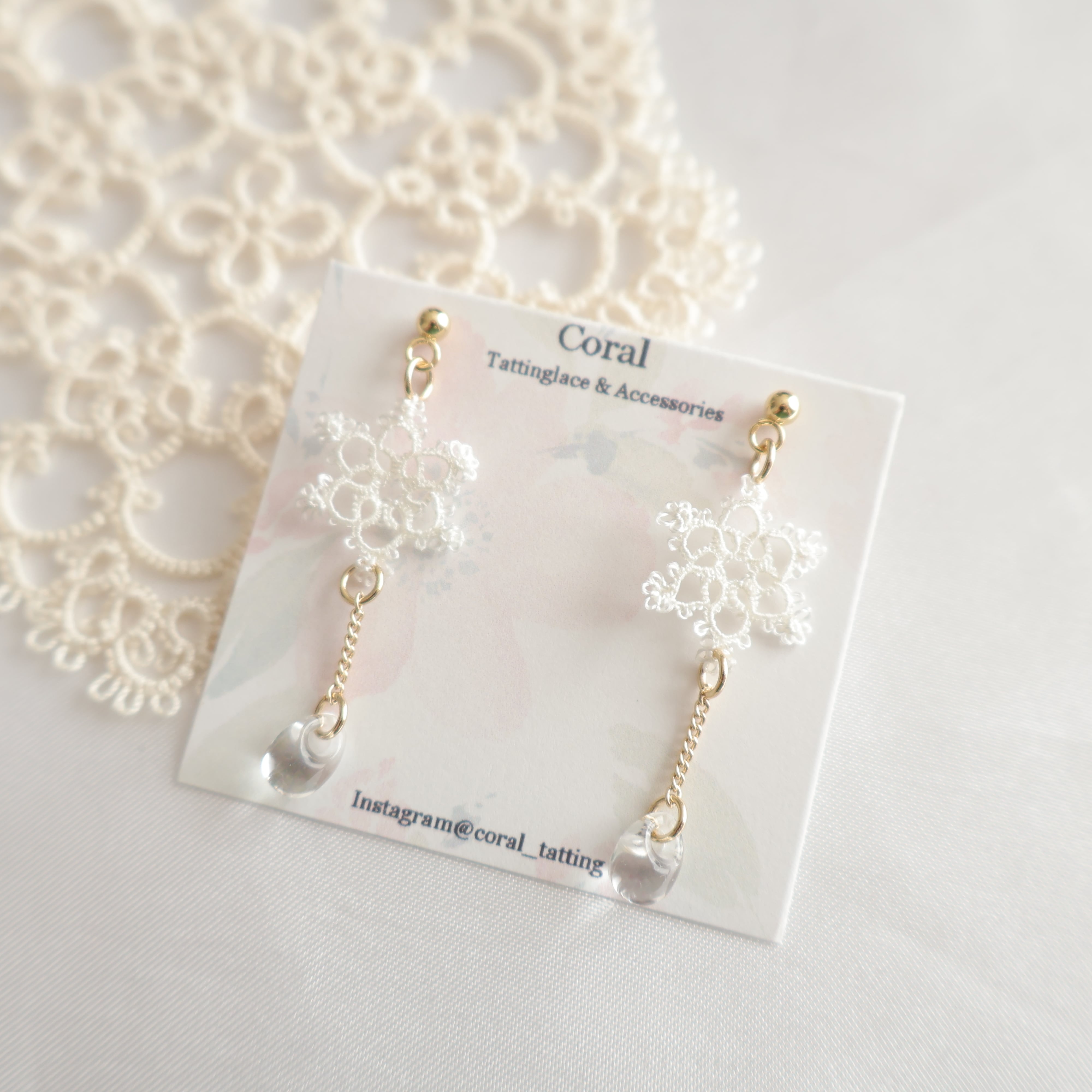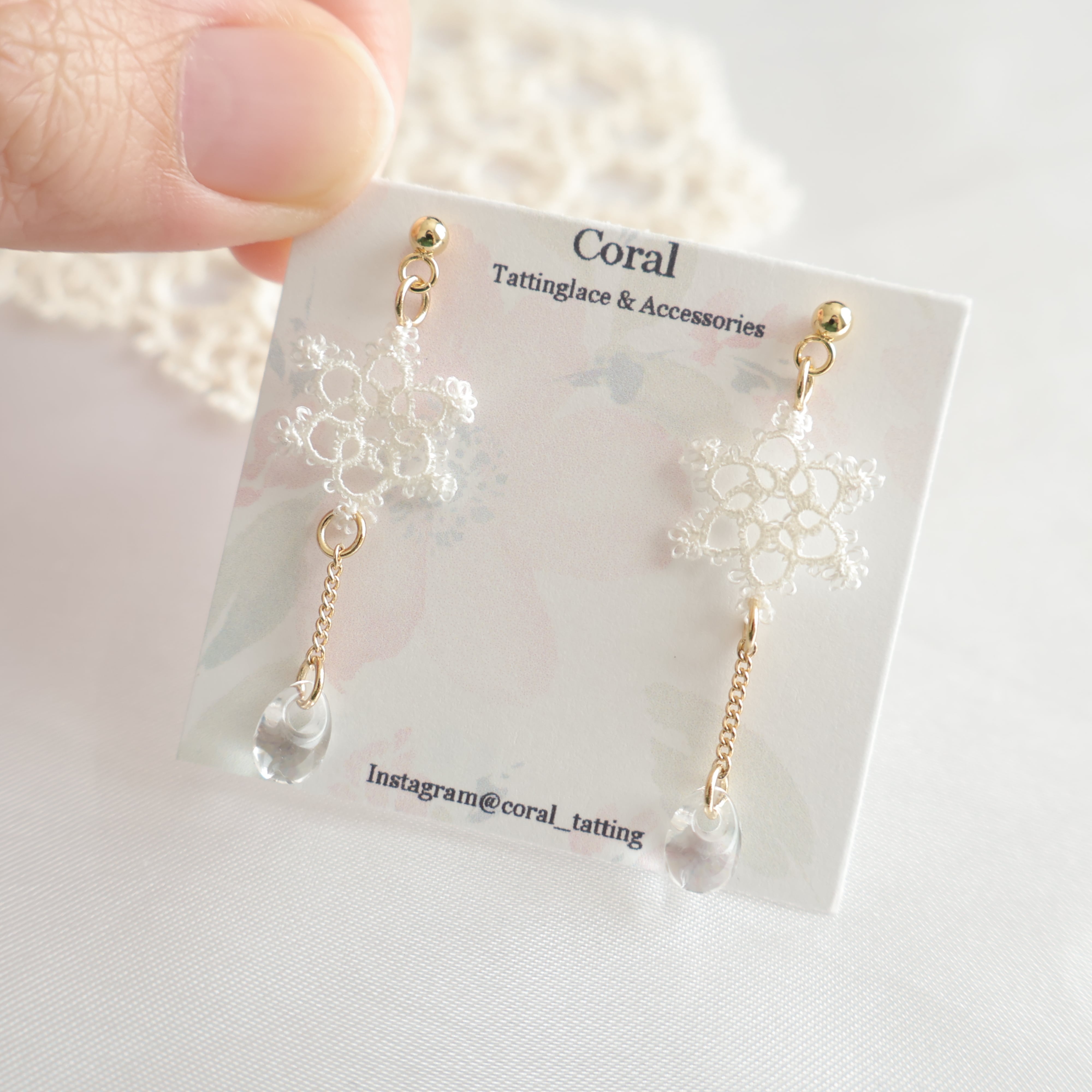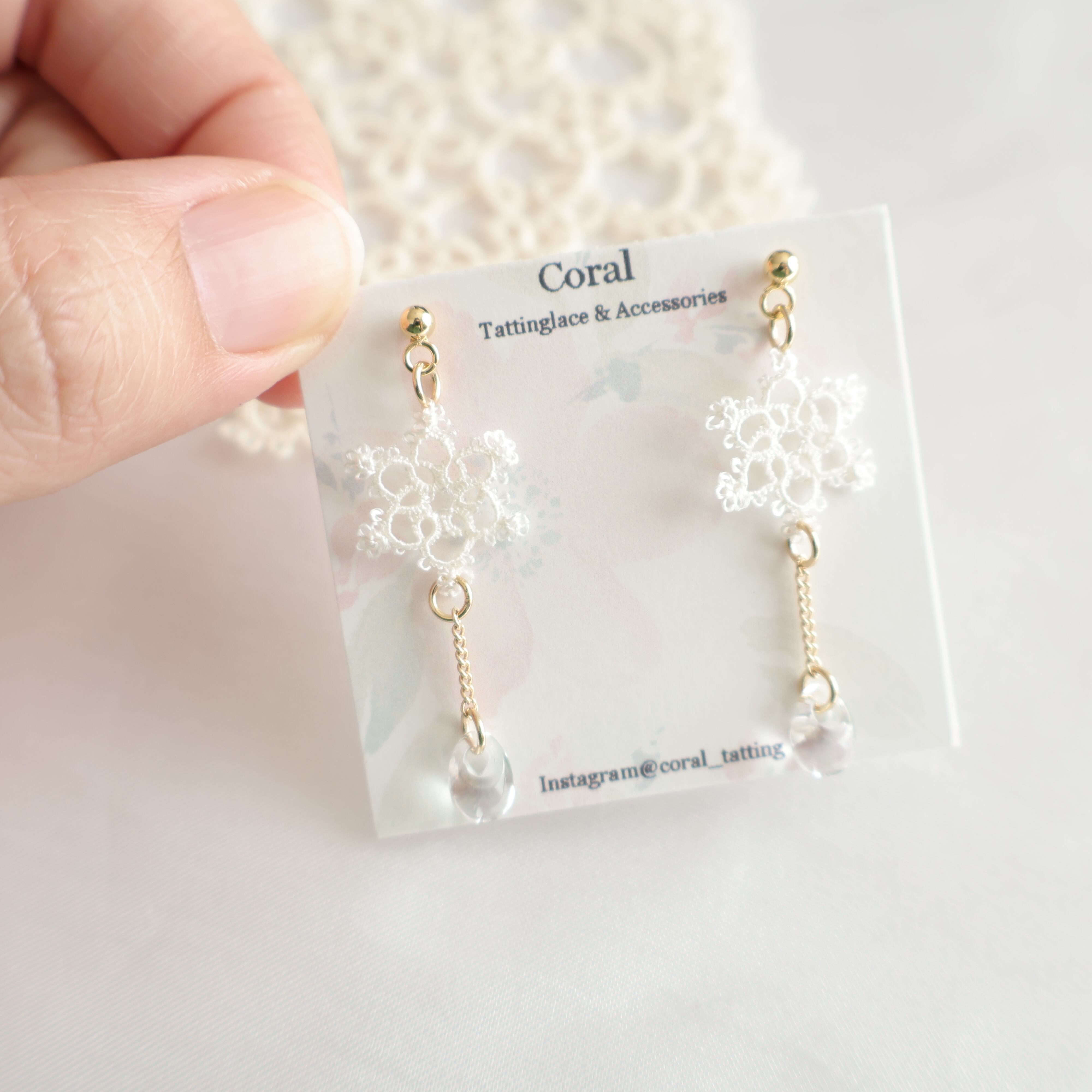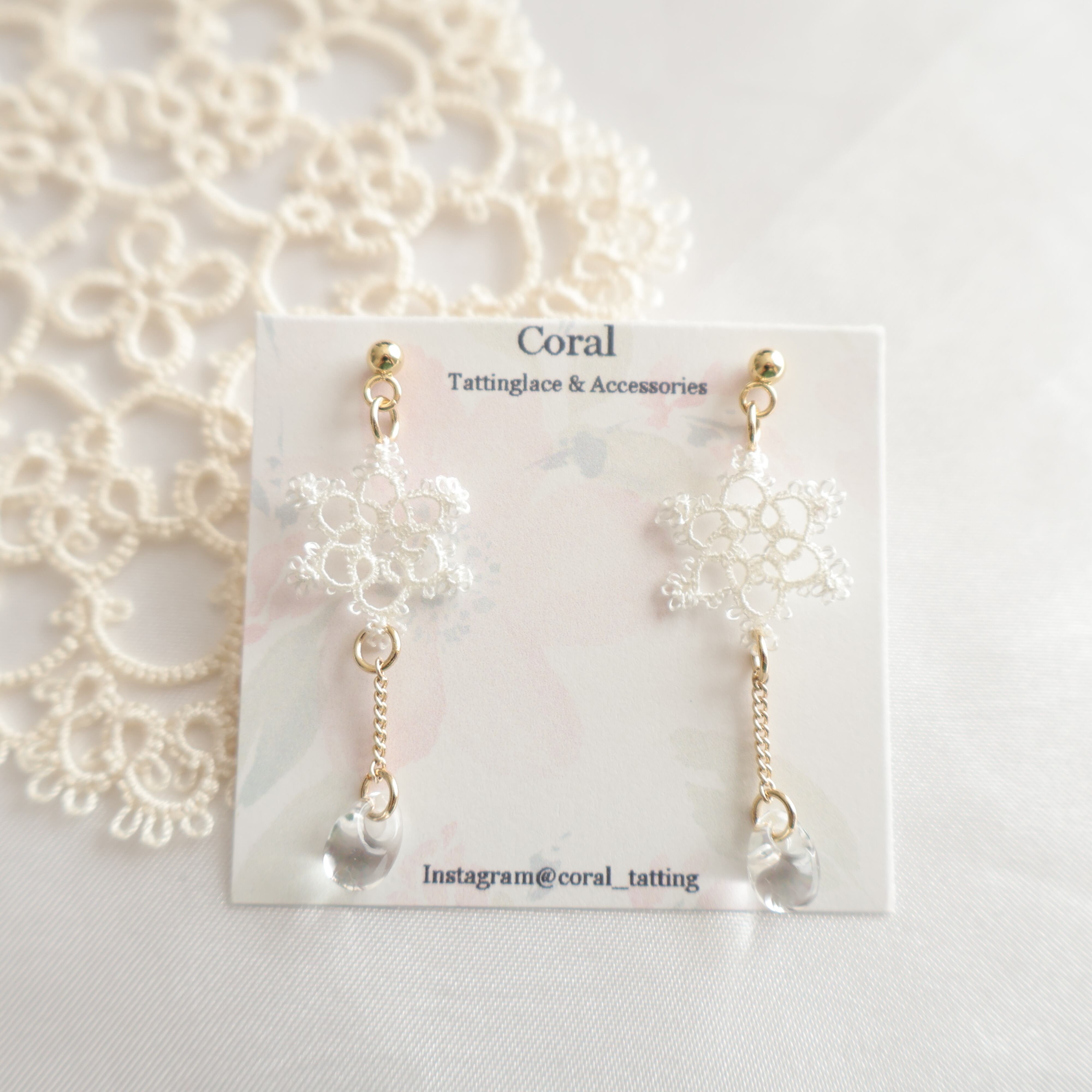 極細の糸で結った雪の結晶モチーフはとても繊細で可憐な印象に