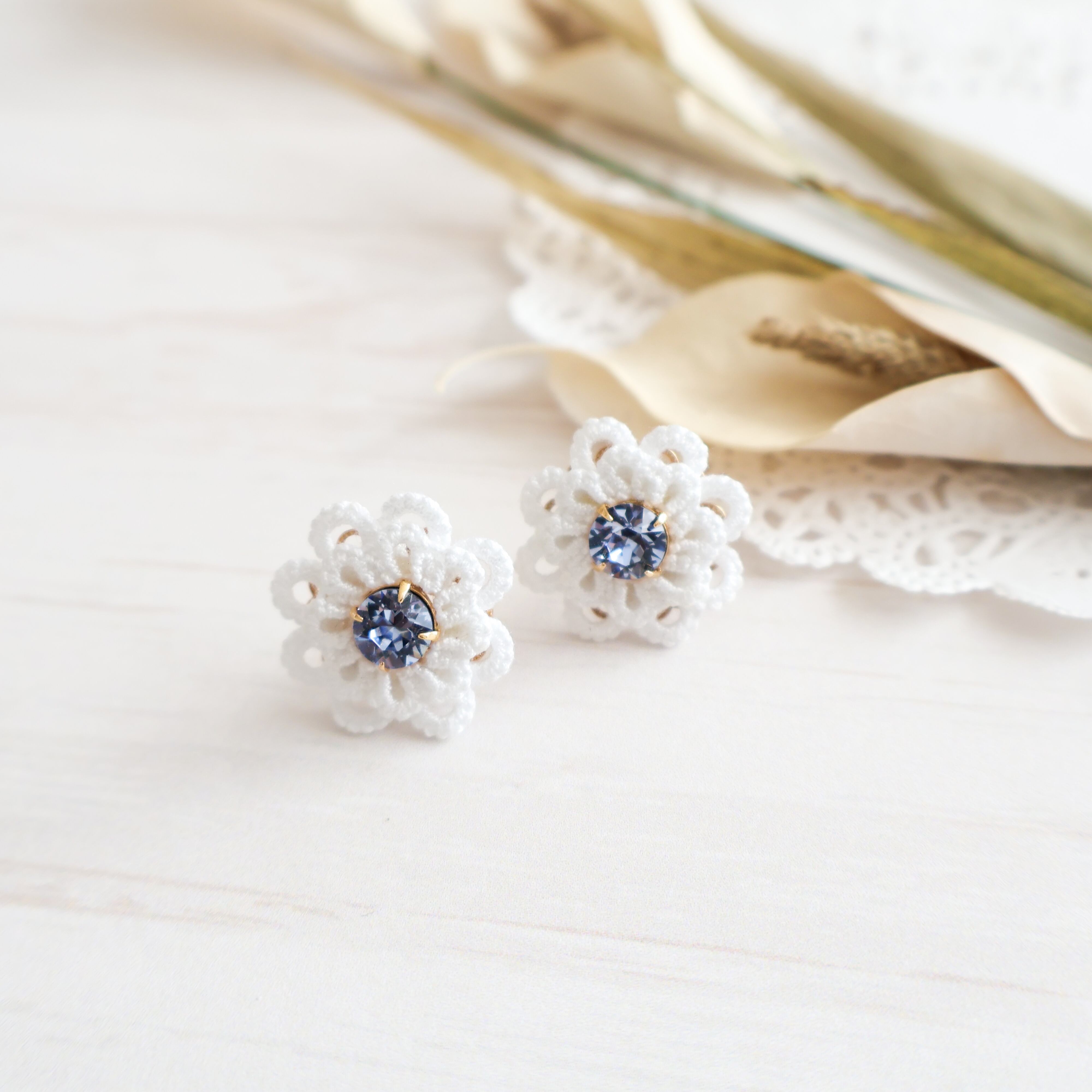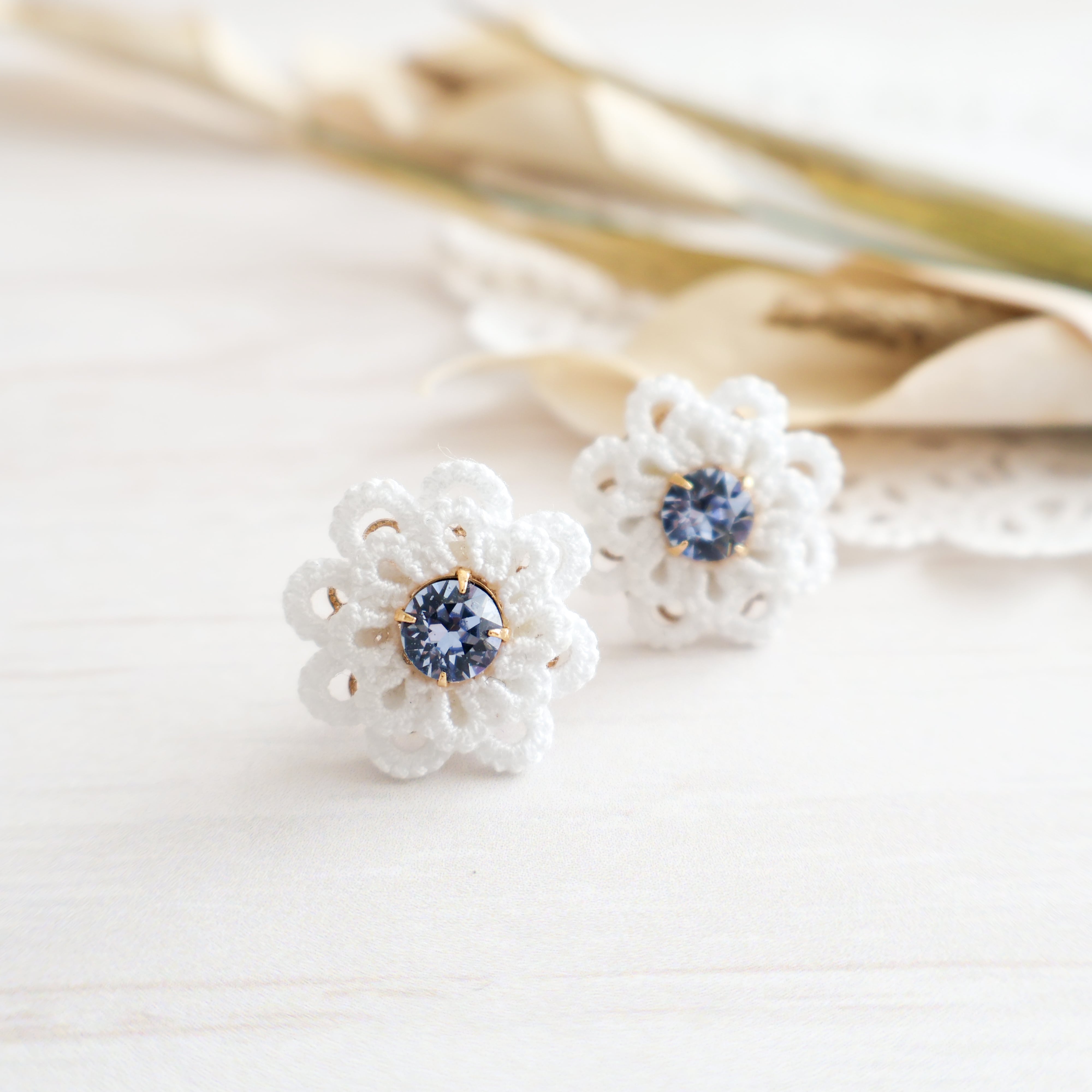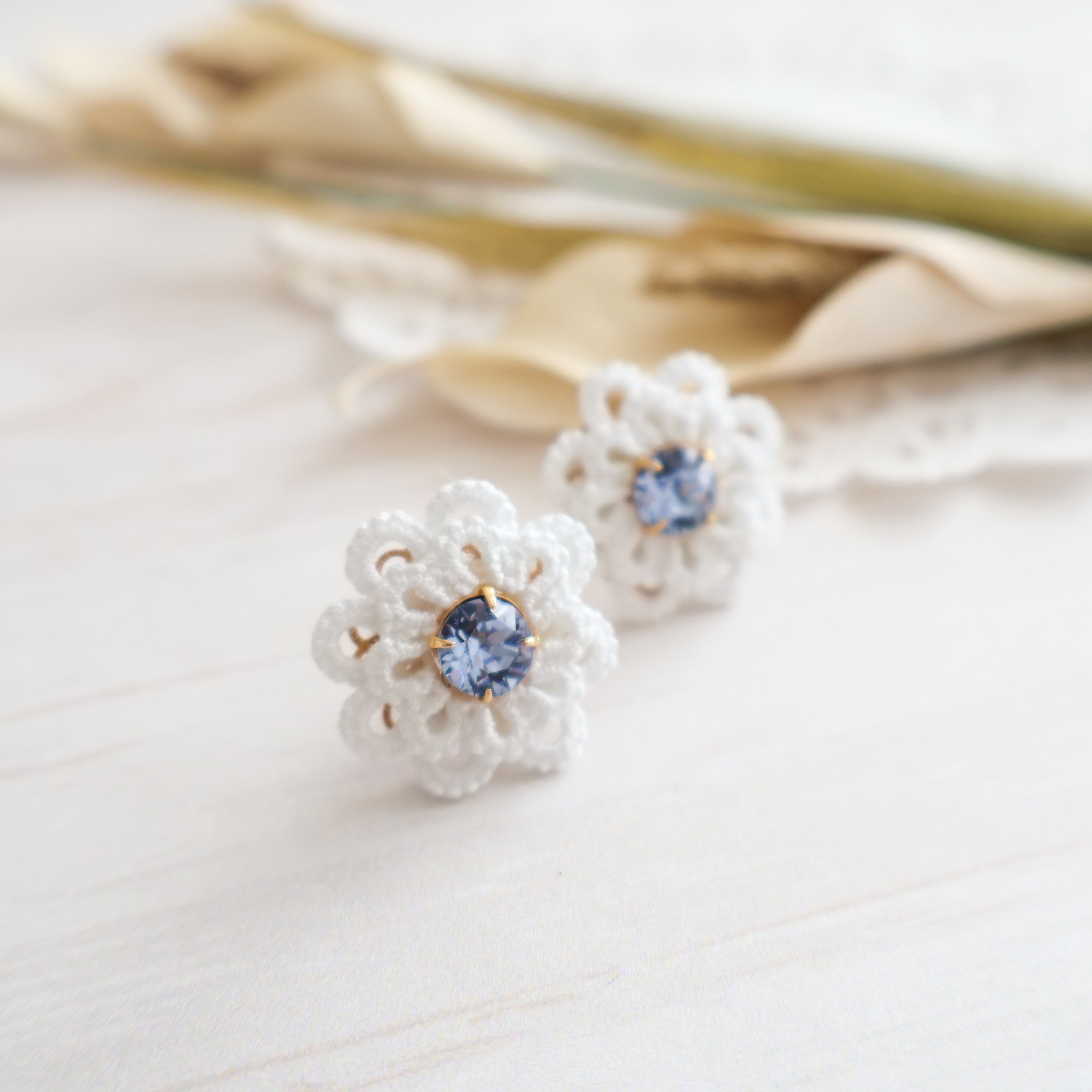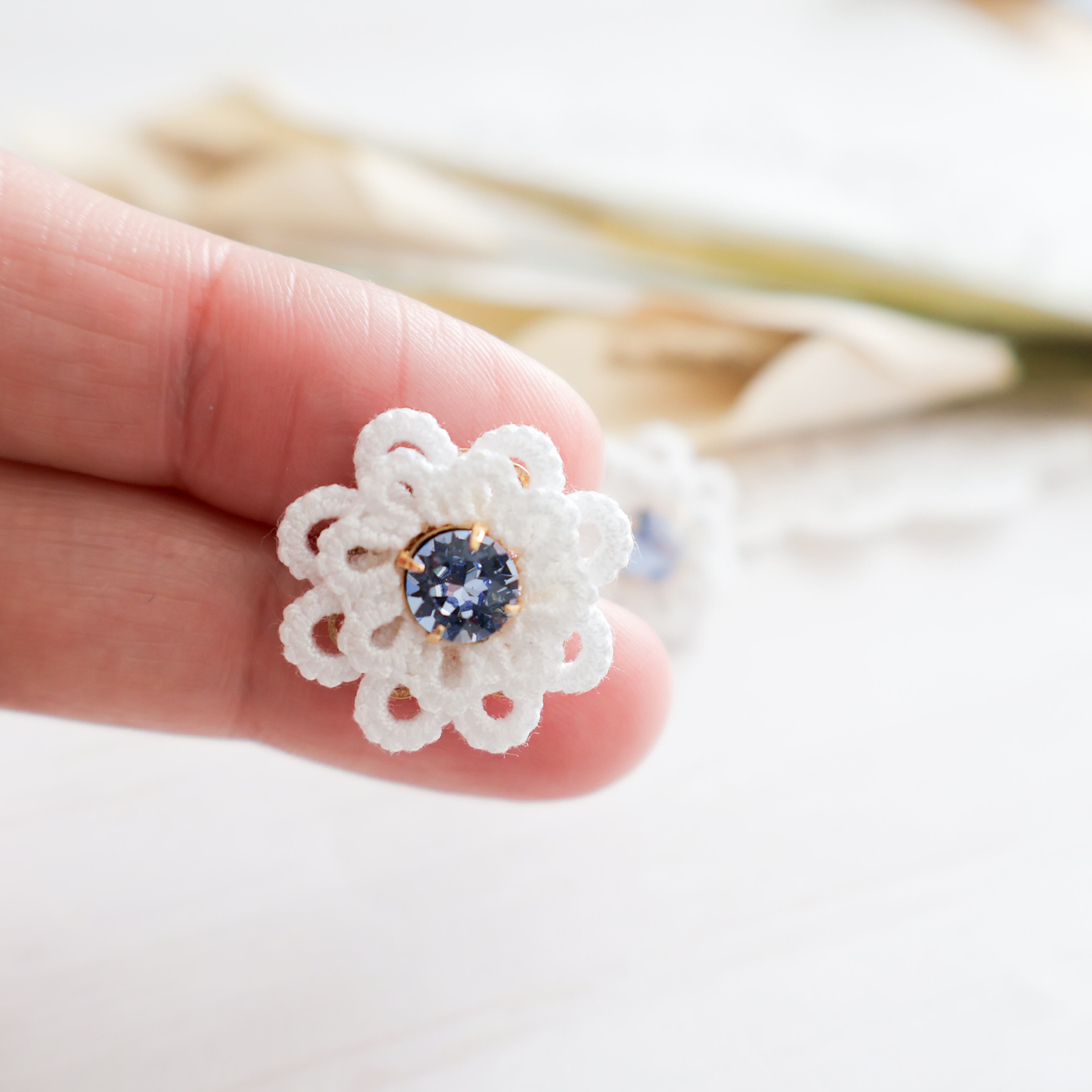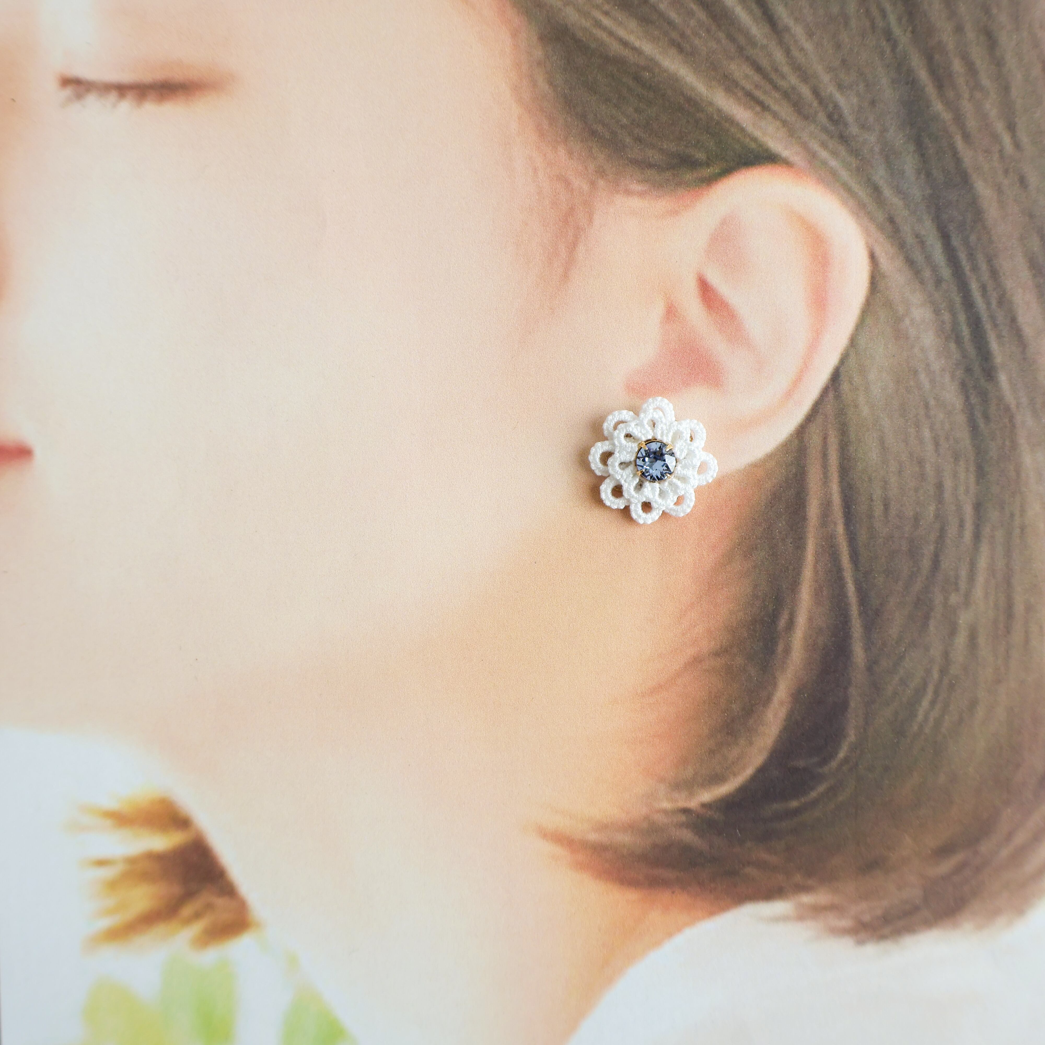 タティングレースのお花モチーフとキラキラ輝くビジュー