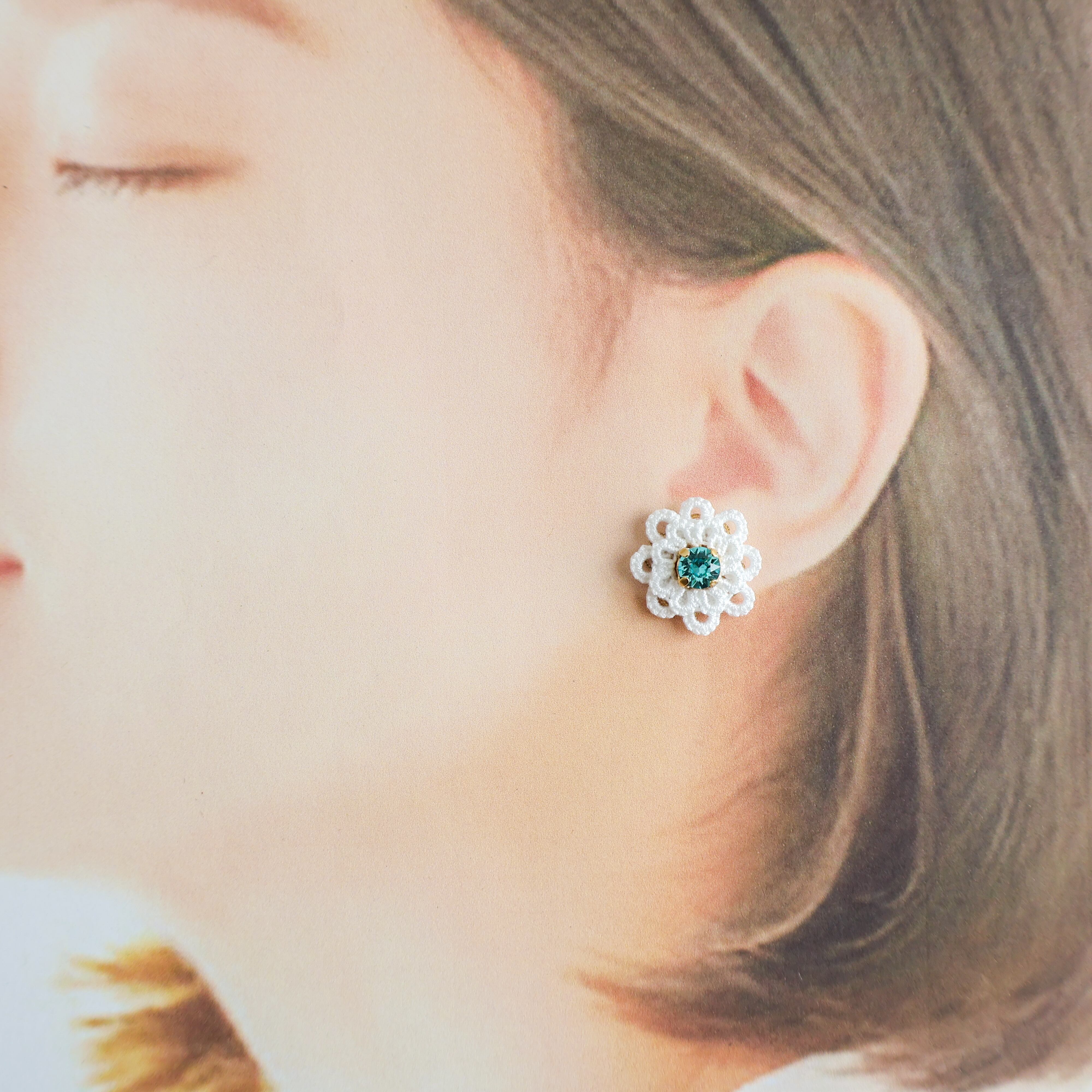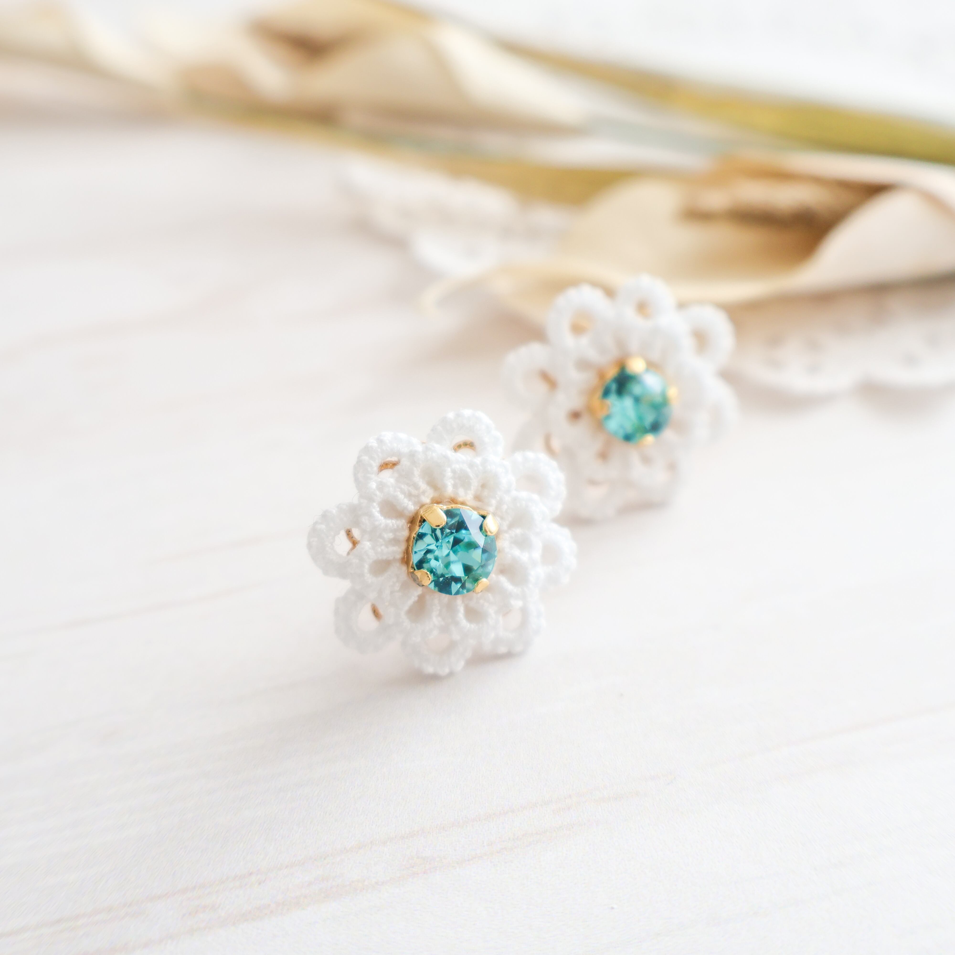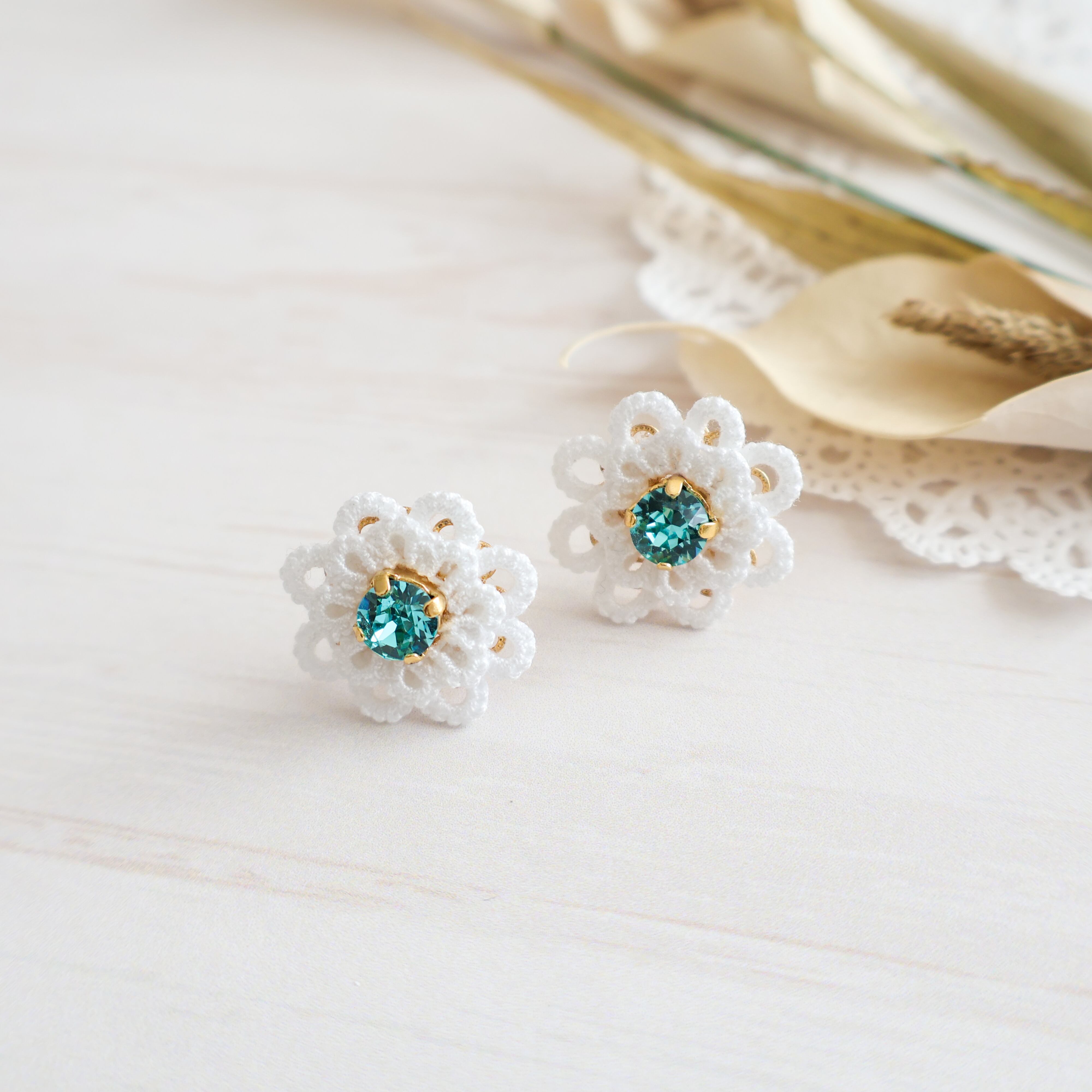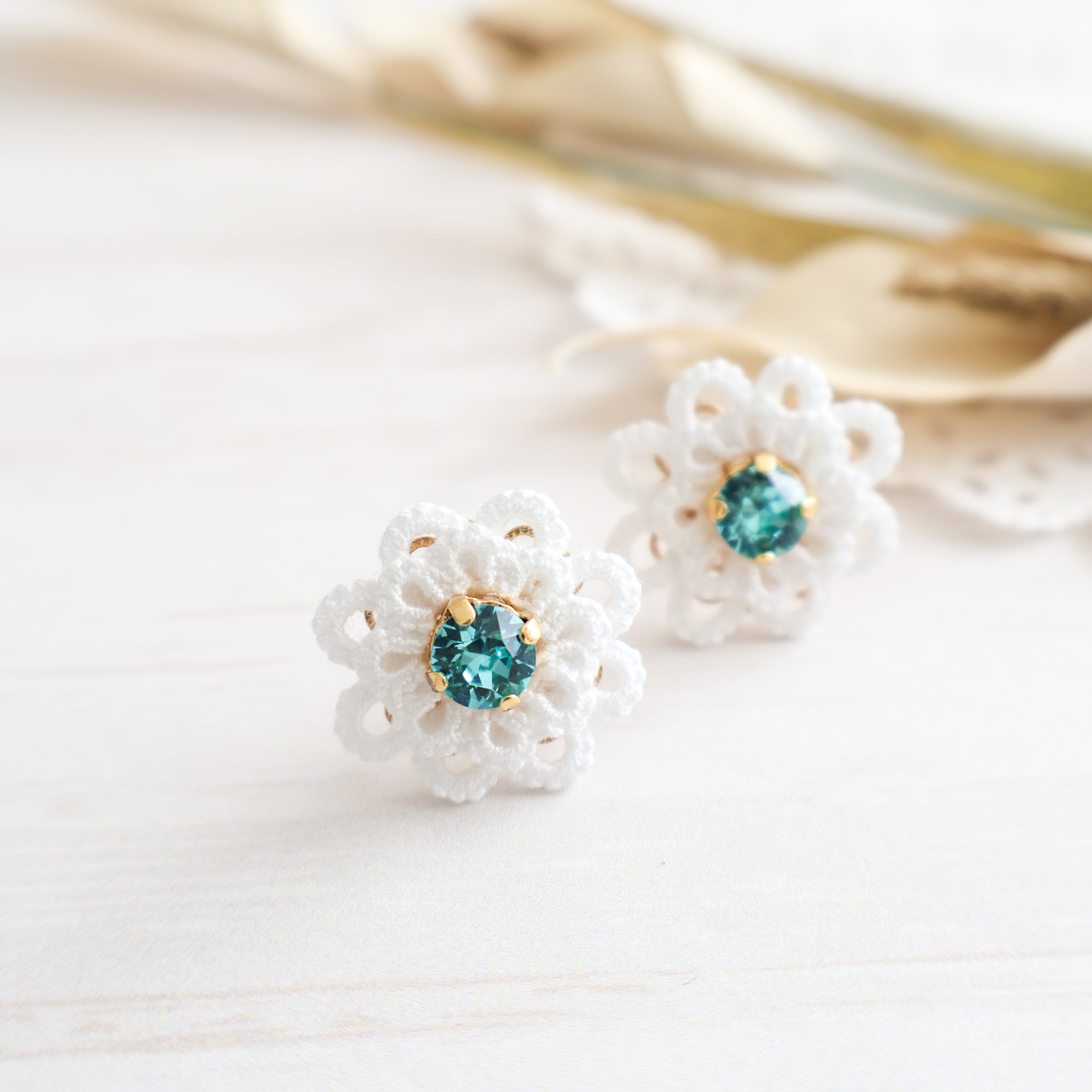タティングレースのお花モチーフとキラキラ輝くビジュー