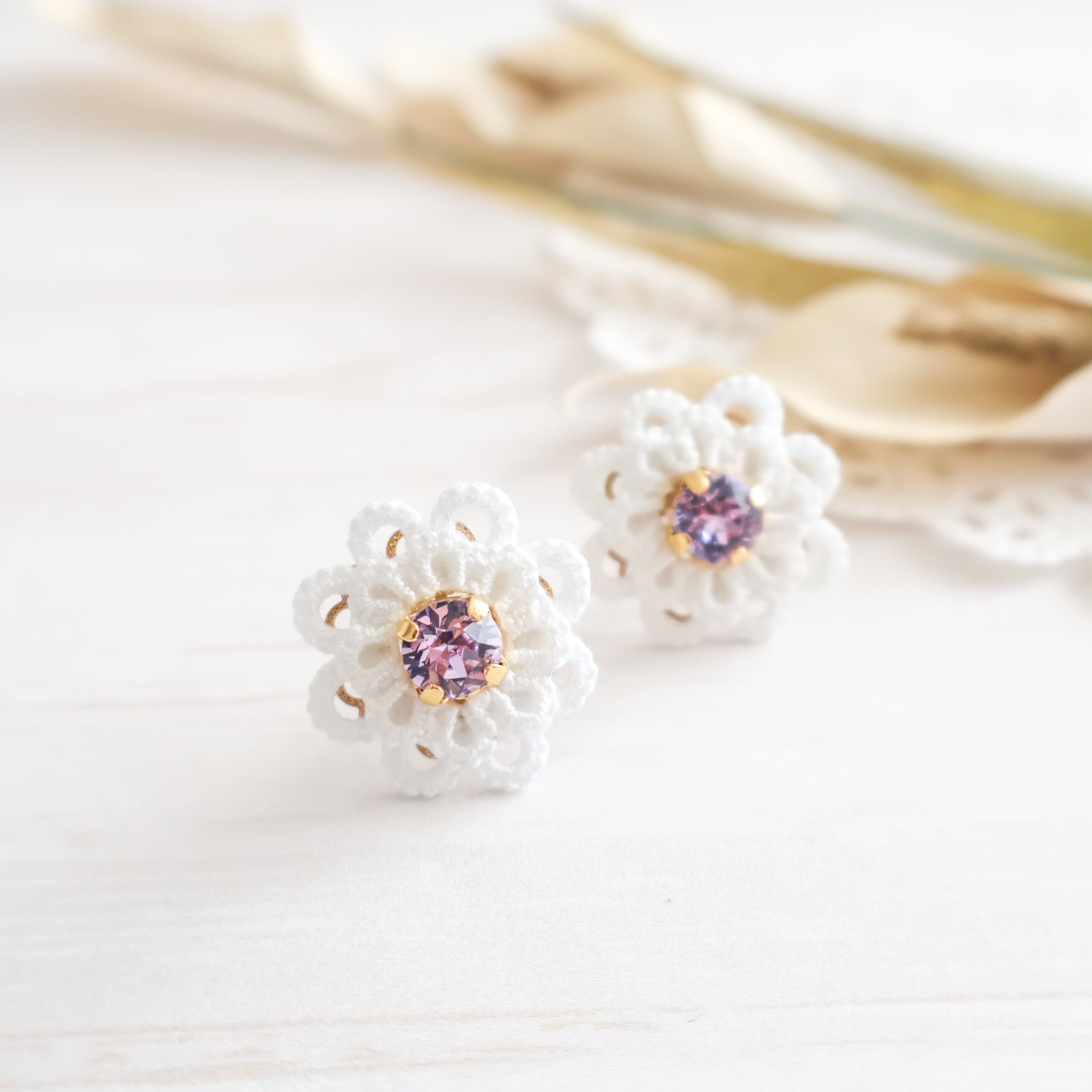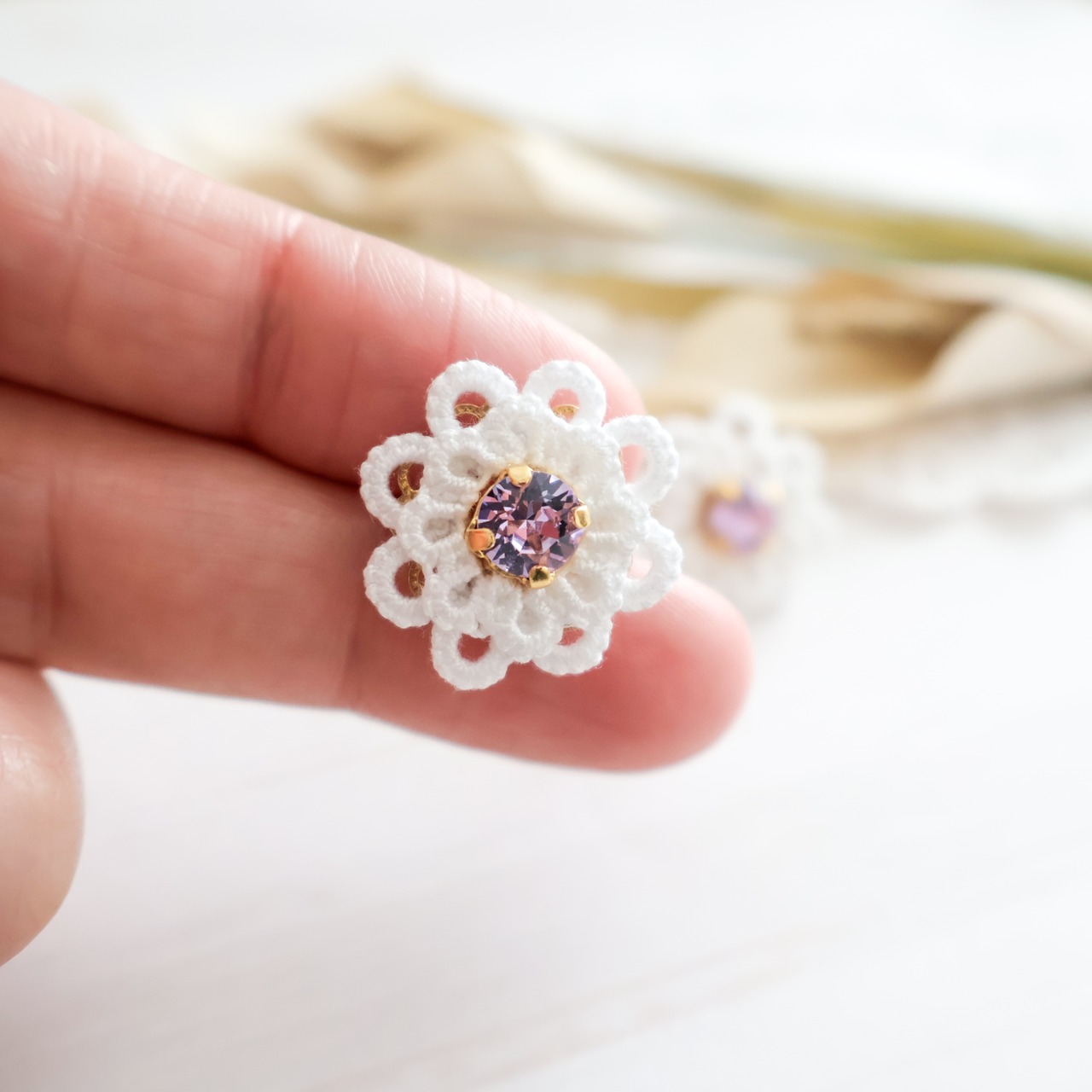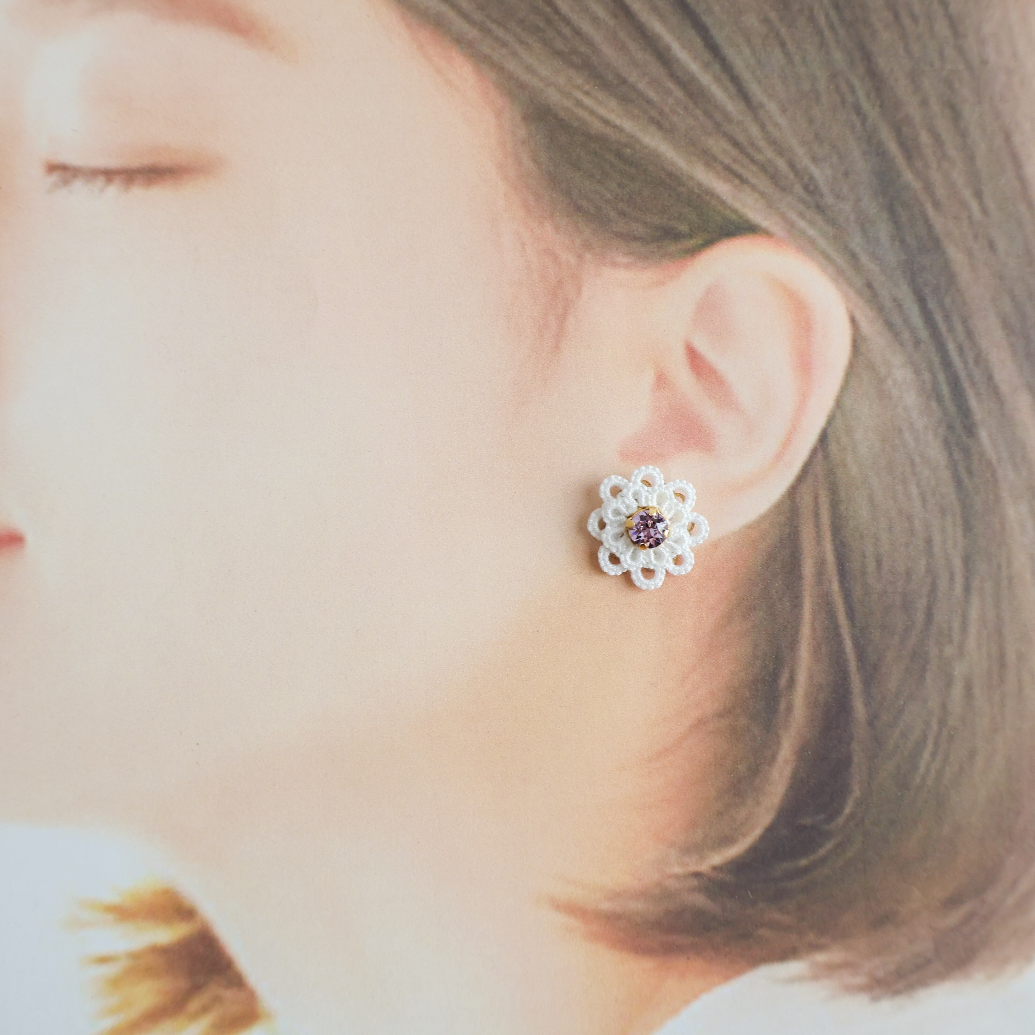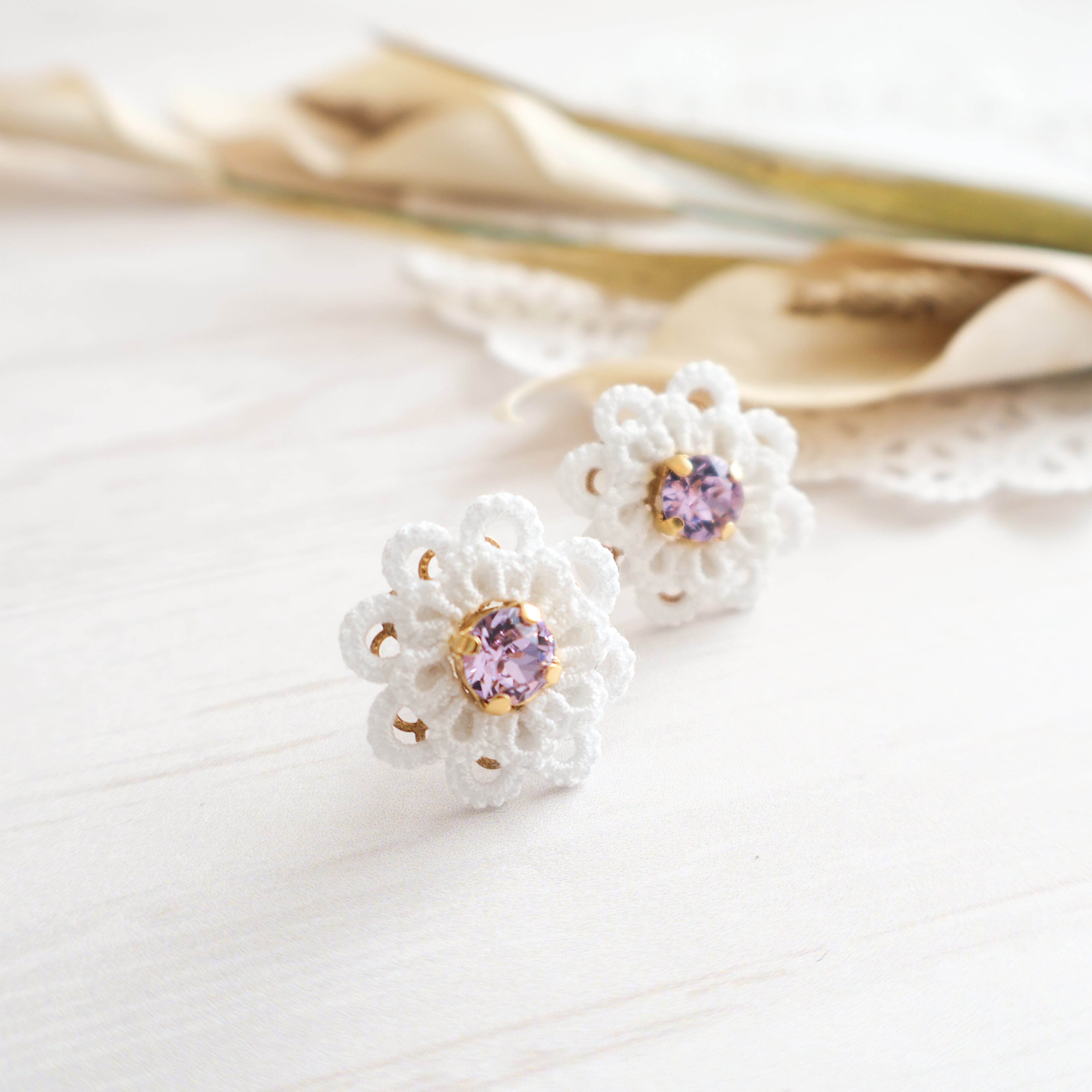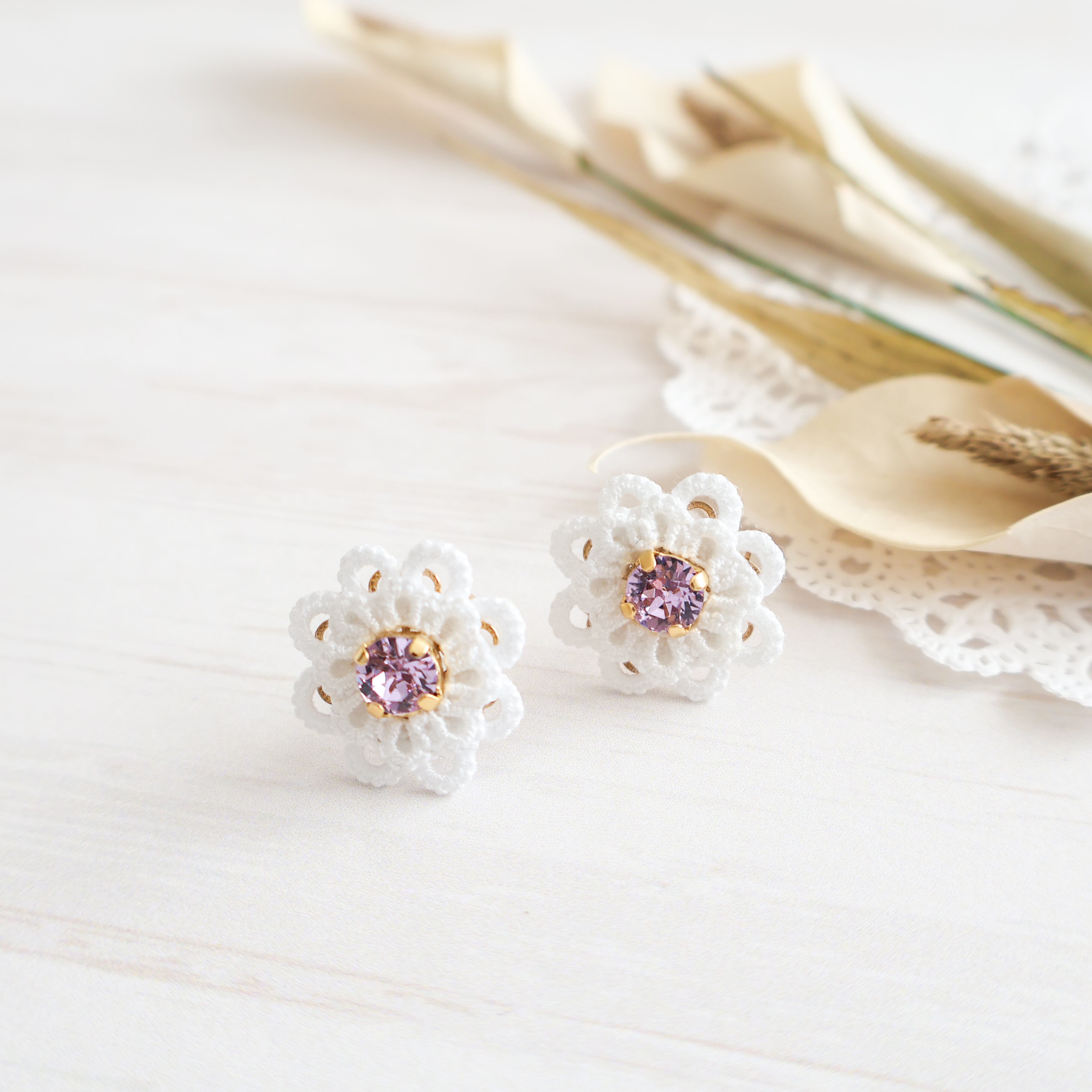 タティングレースのお花モチーフとキラキラ輝くビジュー
