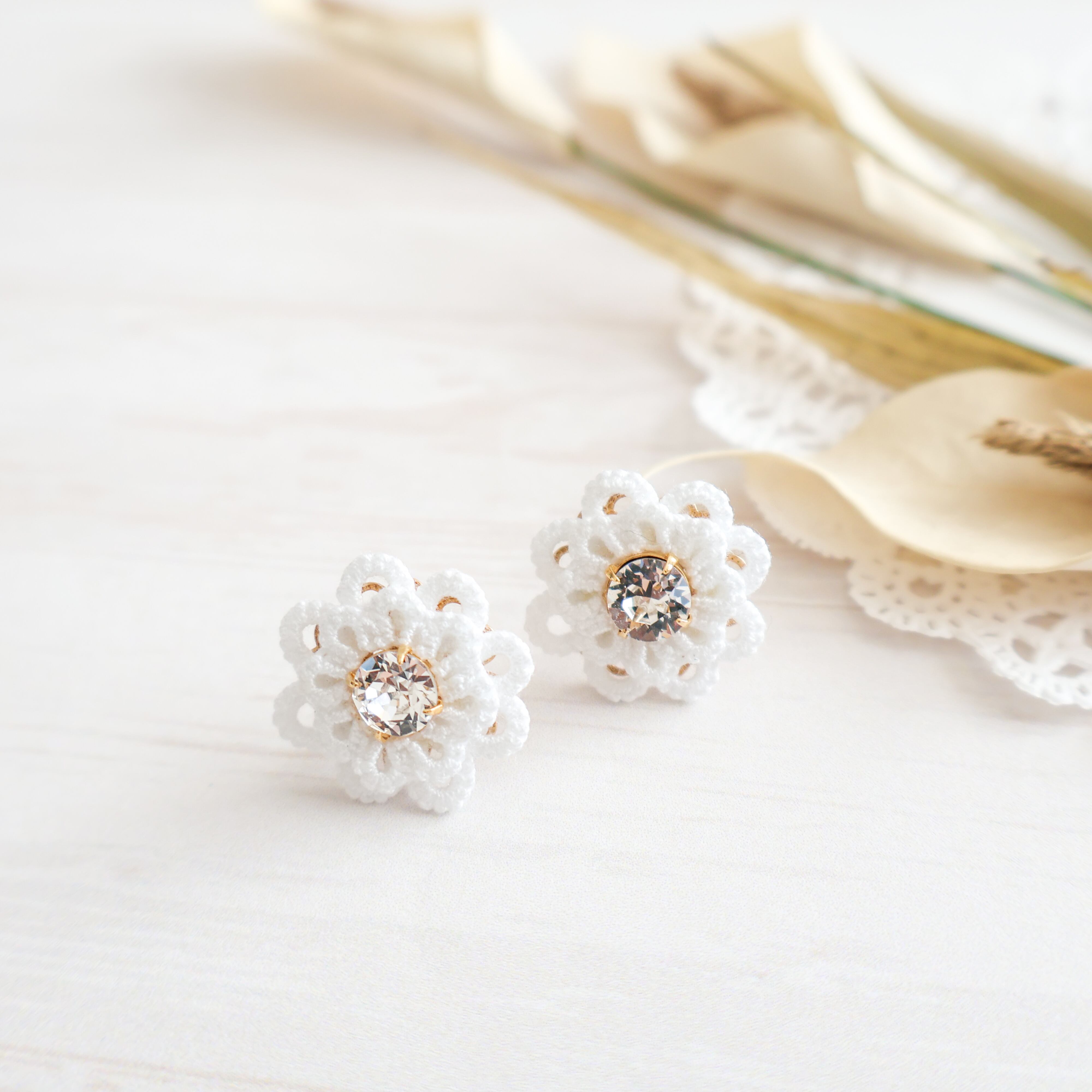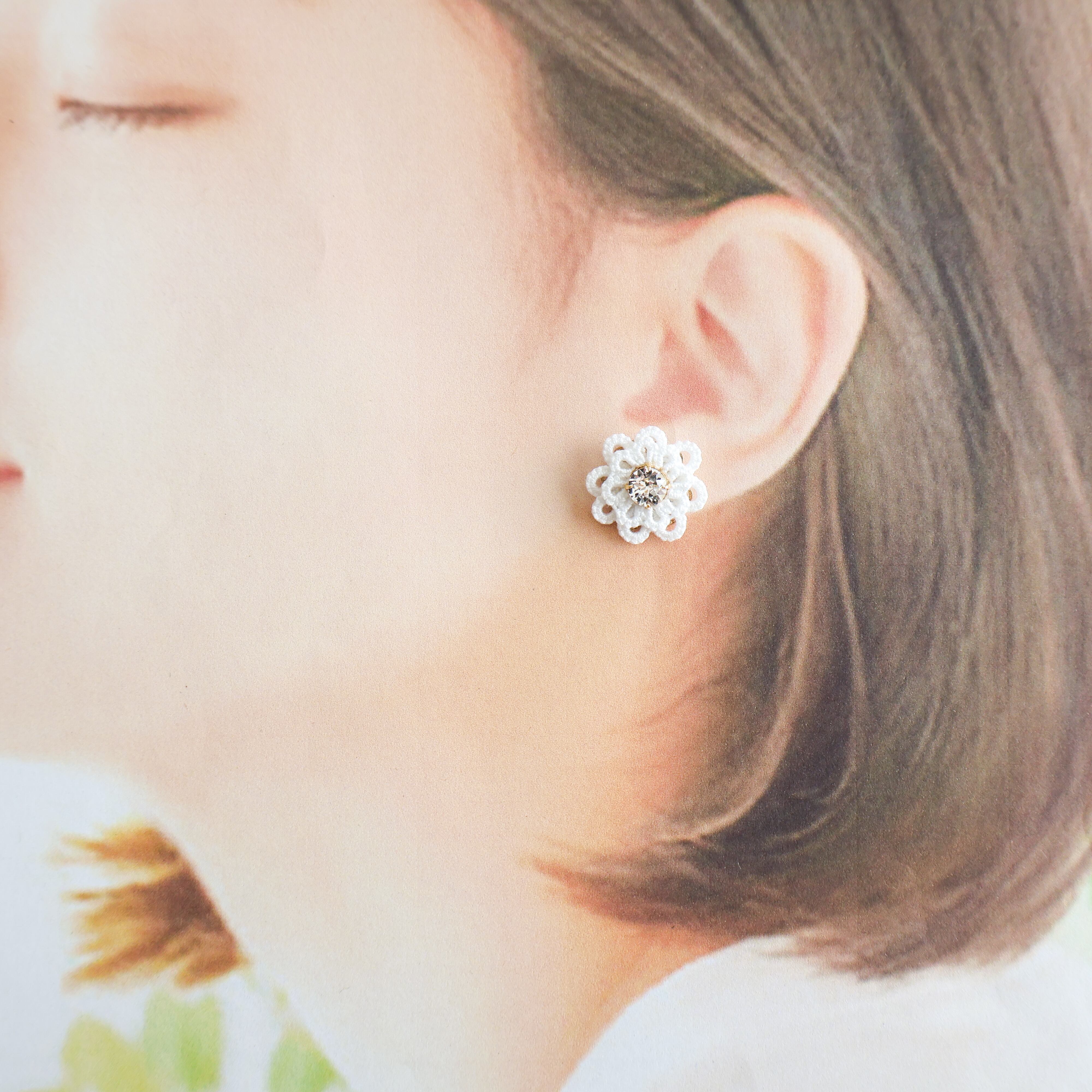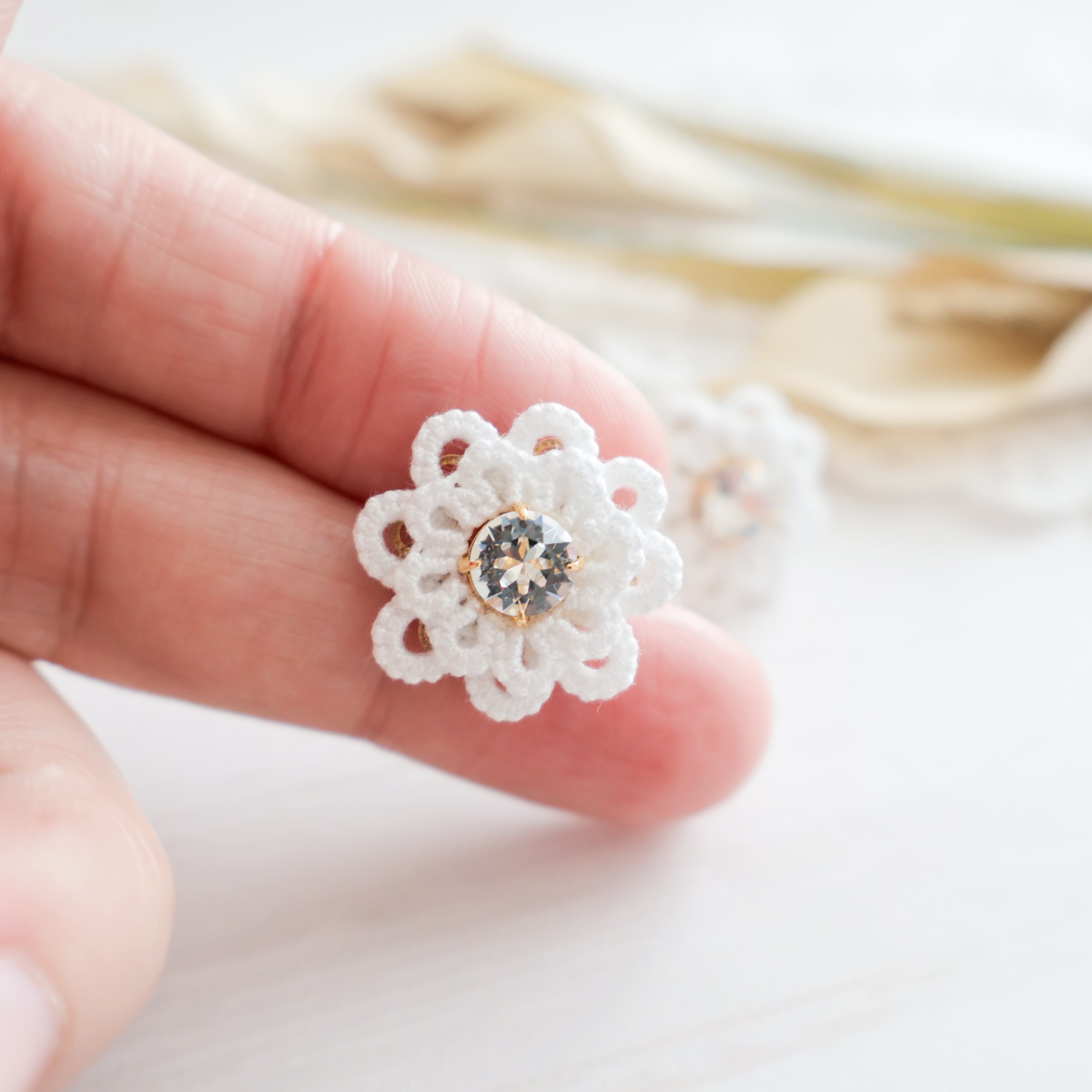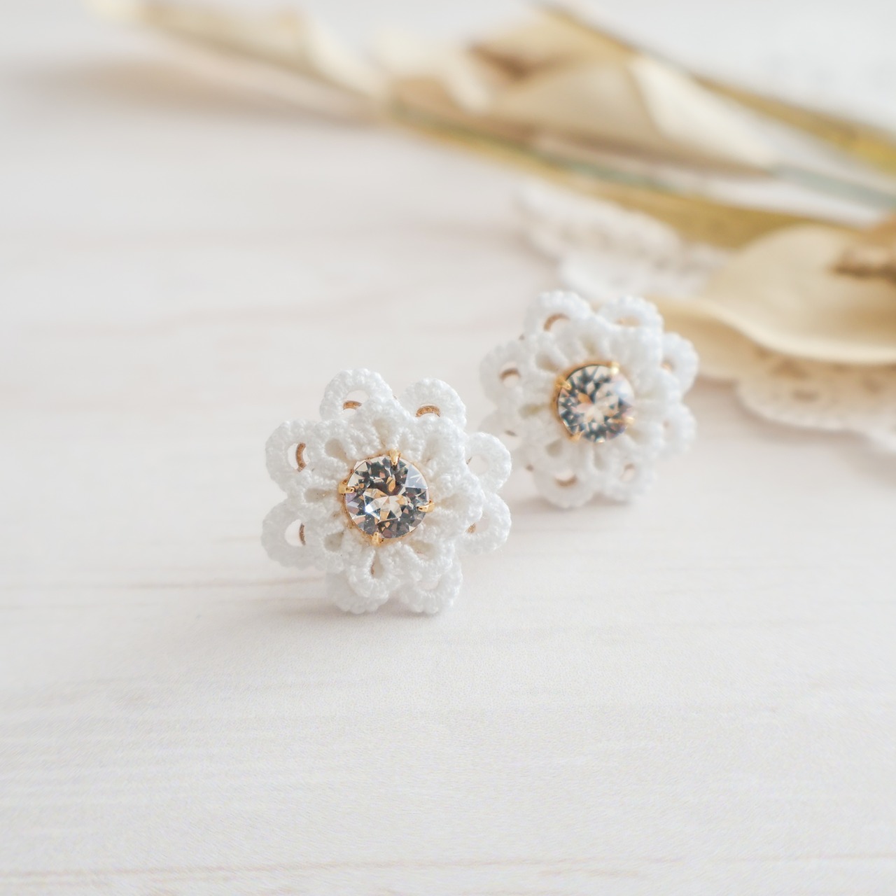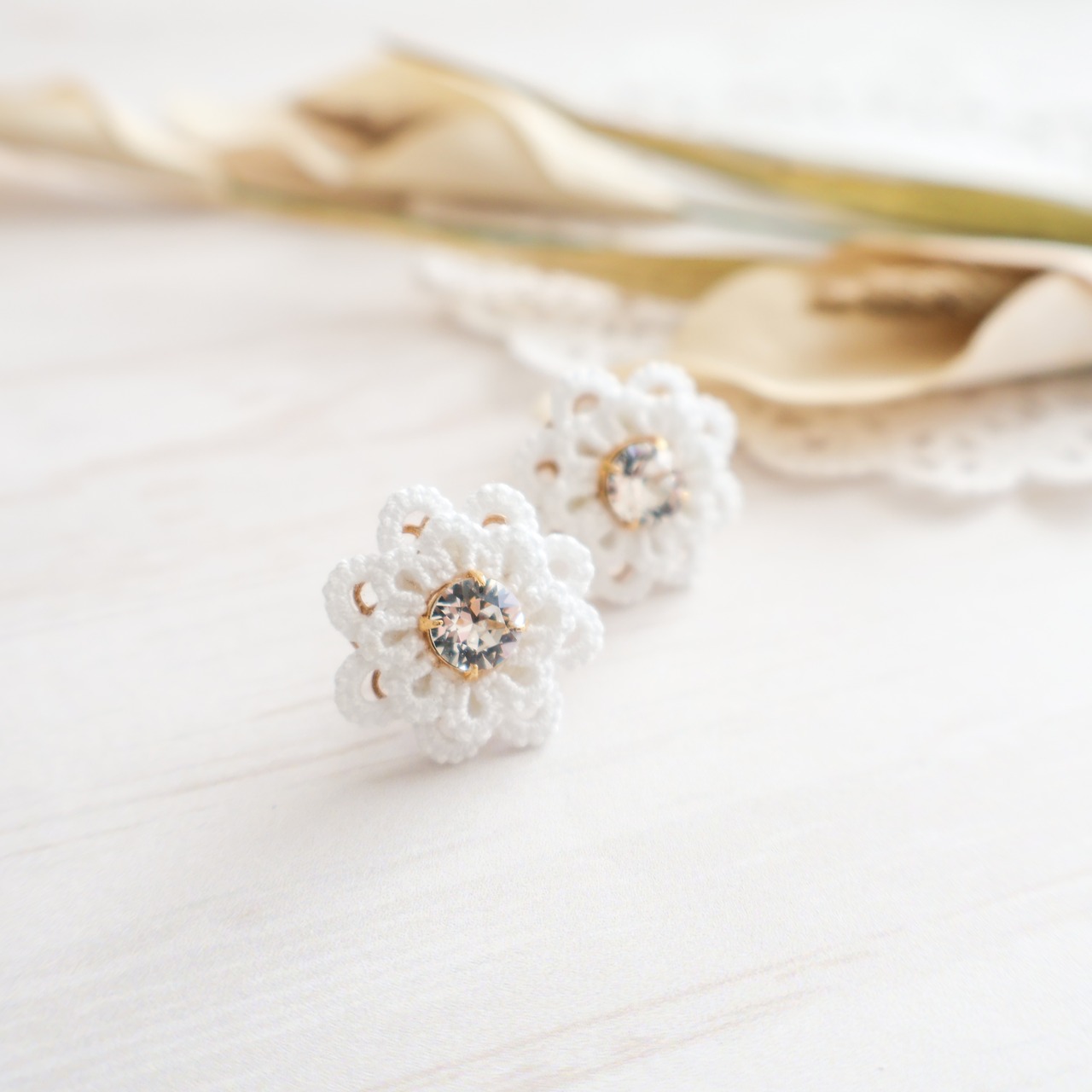 タティングレースのお花モチーフとキラキラ輝くビジュー
