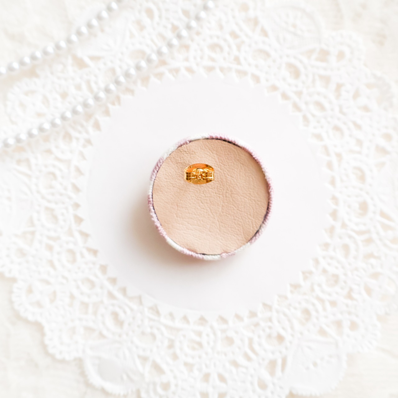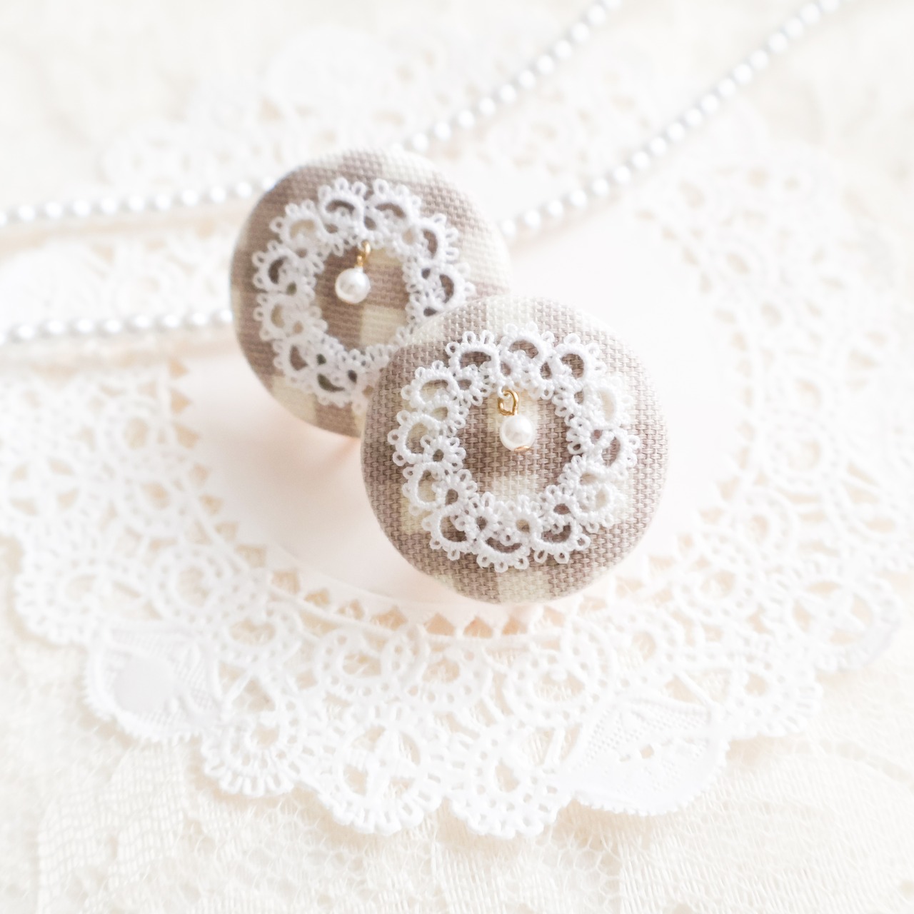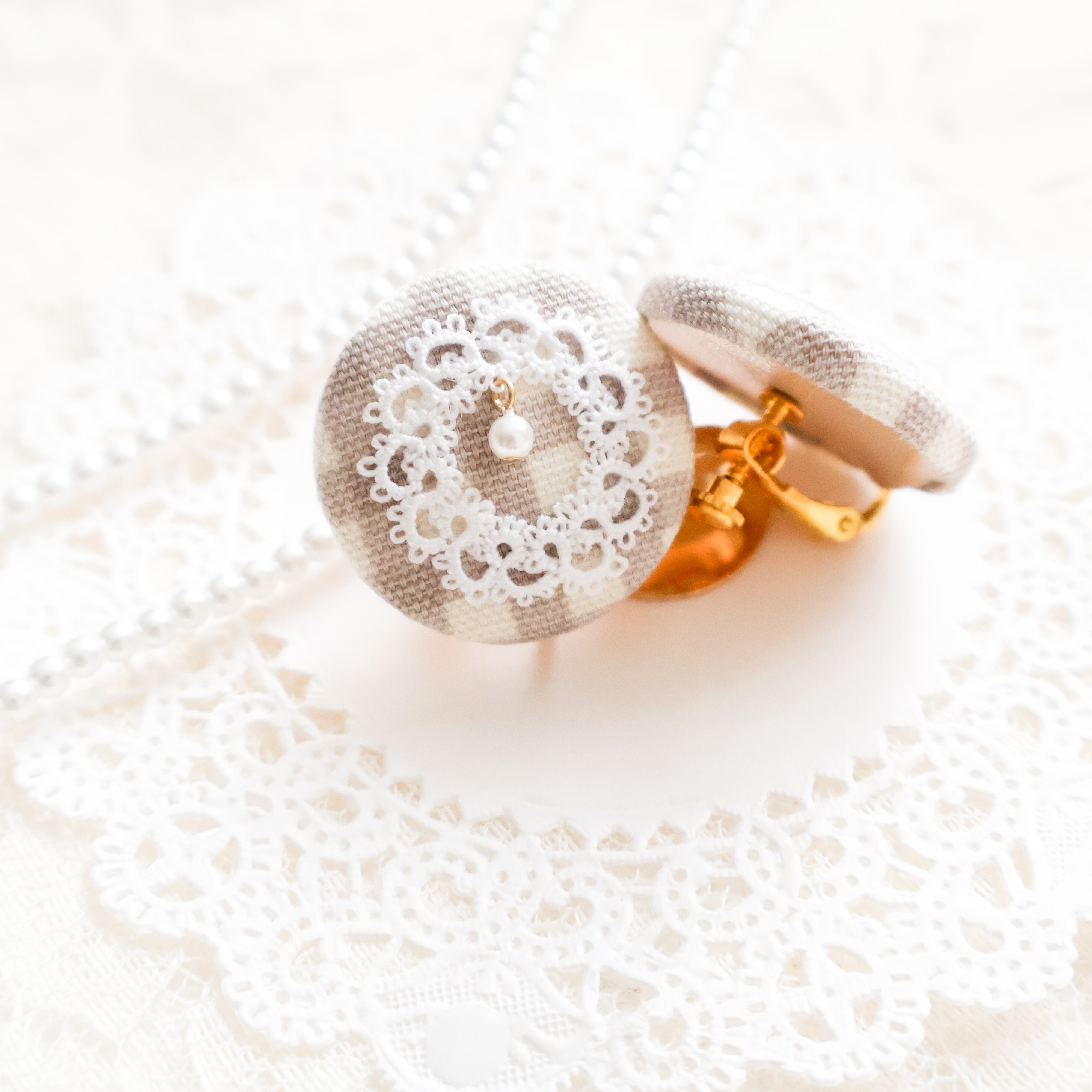 タティングレースの美しい模様が、ピアスの表面に施されています。