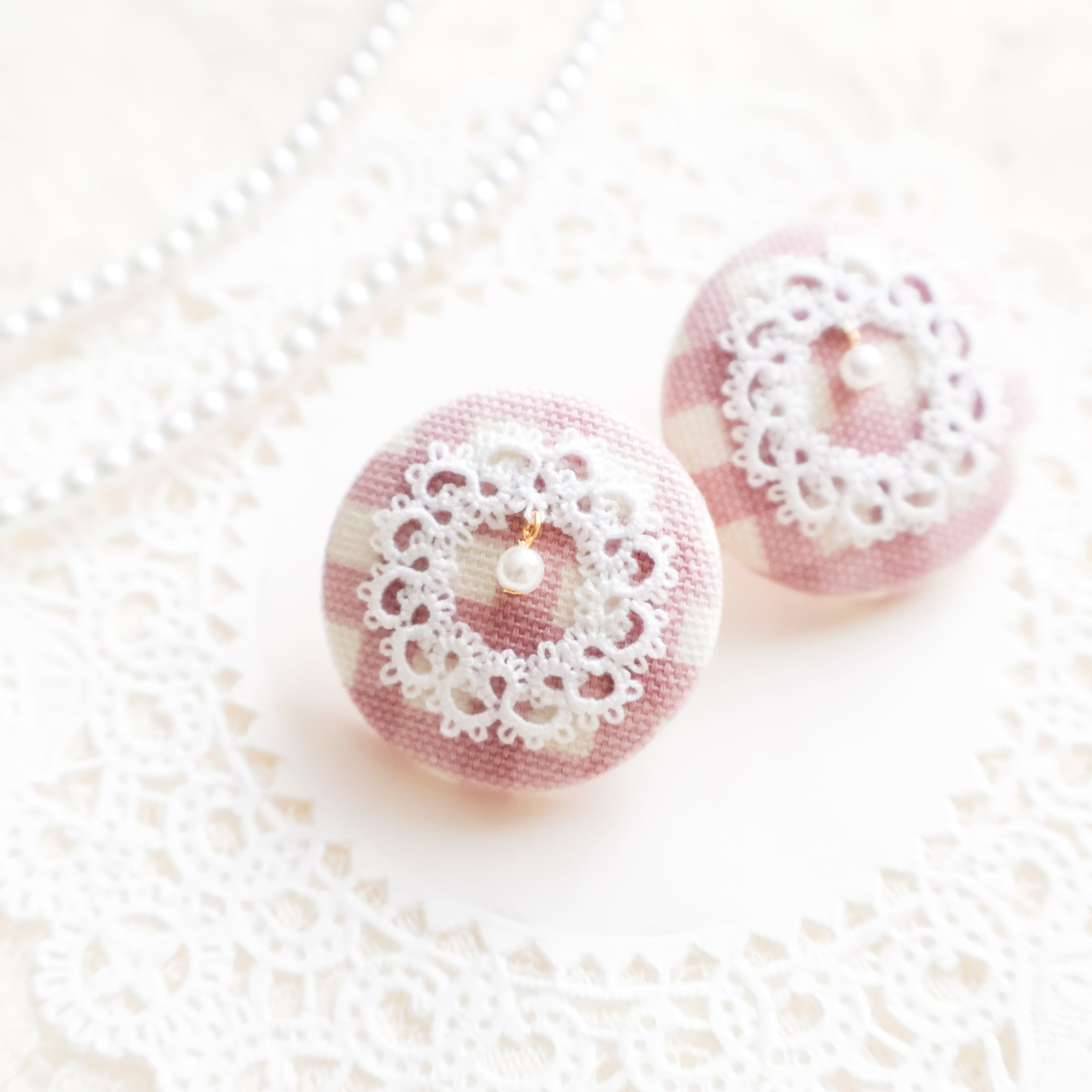 タティングレースの美しい模様が、ピアスの表面に施されています。