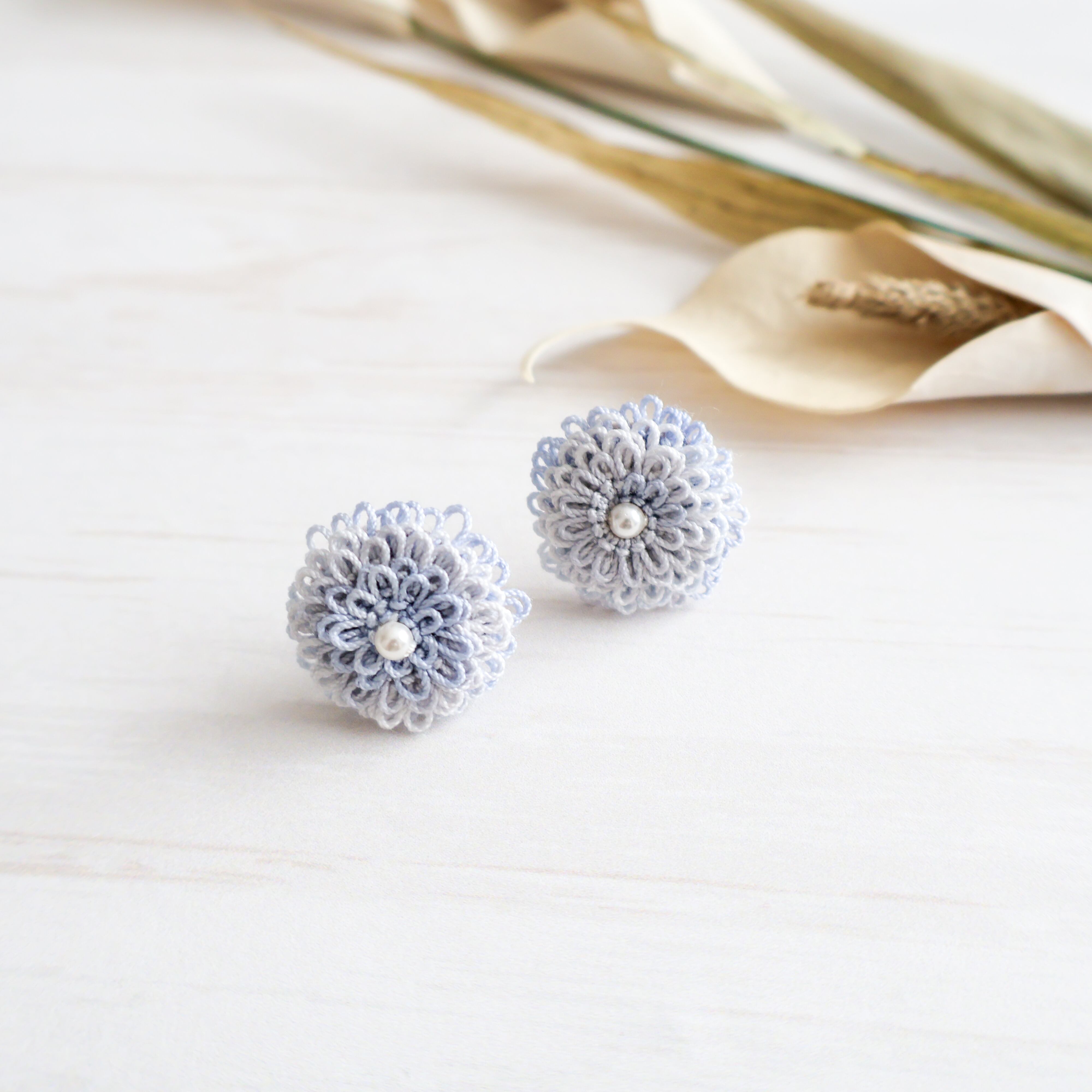 タティングレースの技法で作られたピコットと、美しいグラデーションの色合いのピアス/イヤリング。