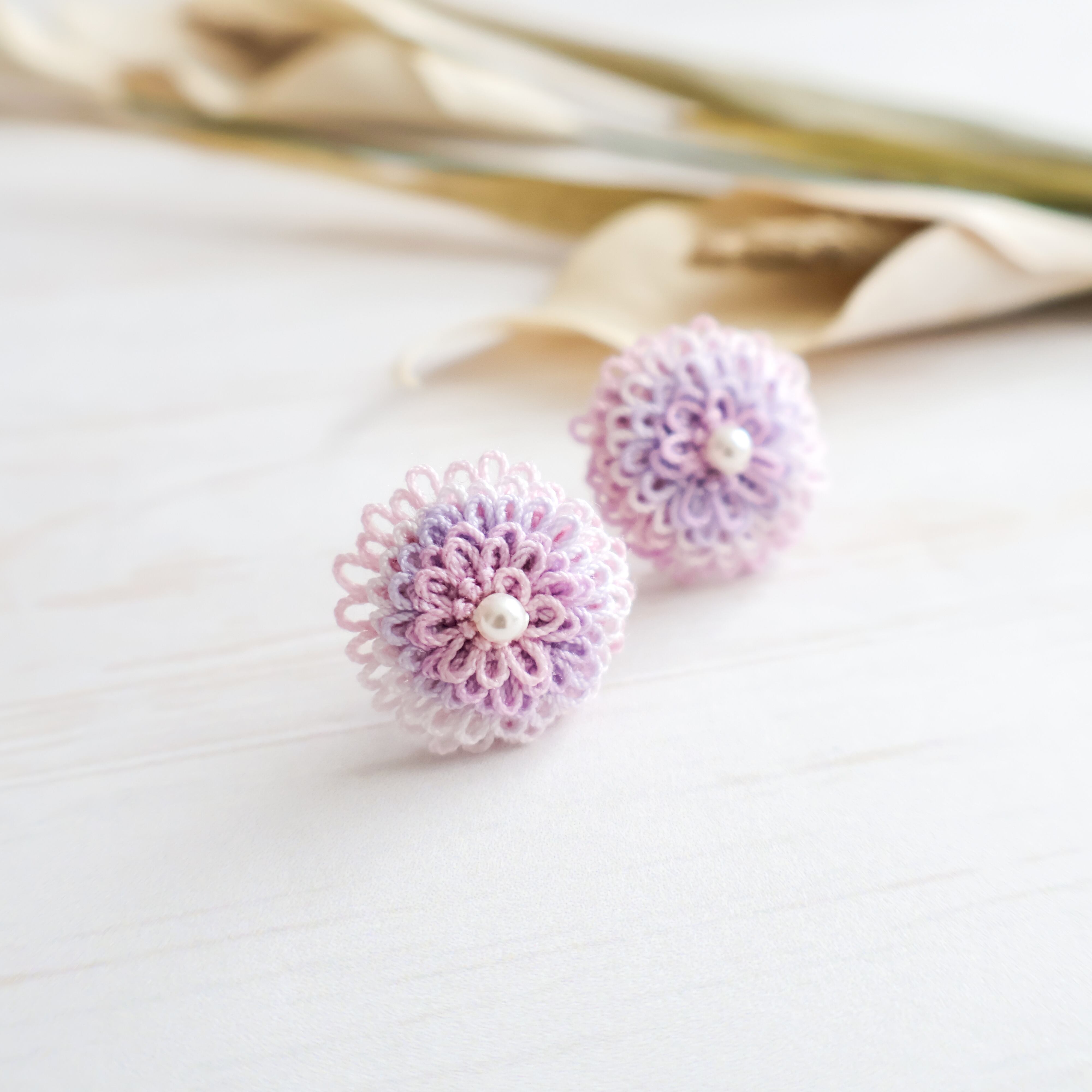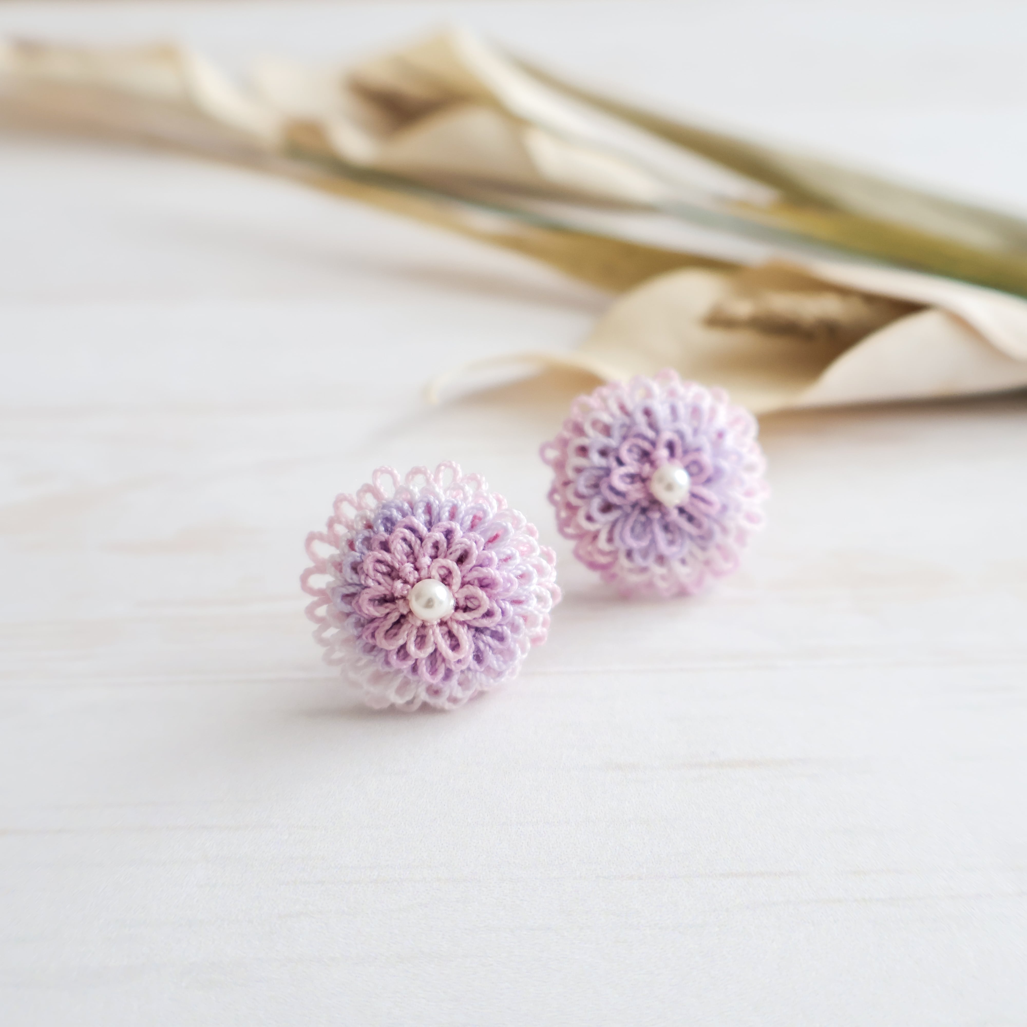 タティングレースの技法で作られたピコットと、美しいグラデーションの色合いのピアス/イヤリング。
