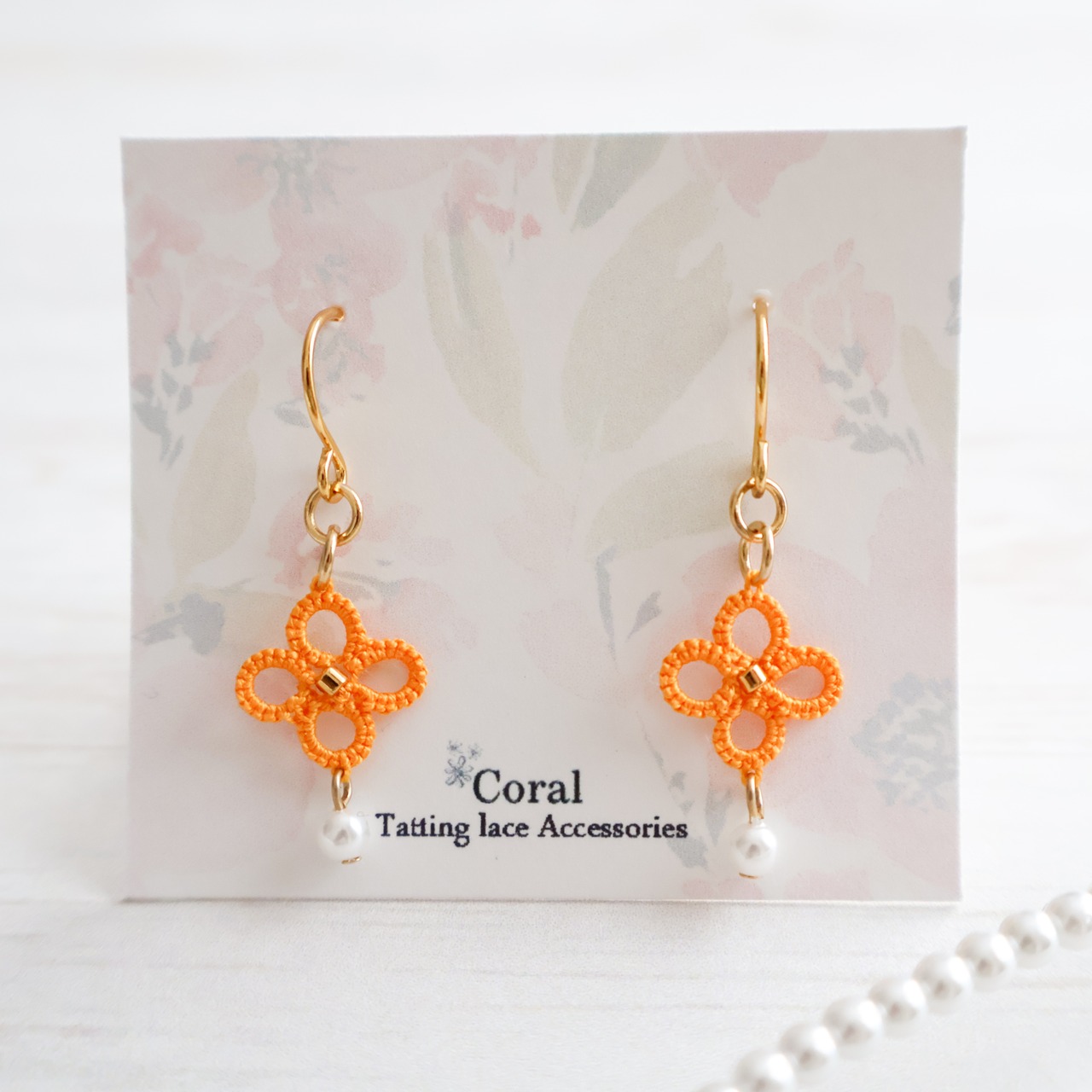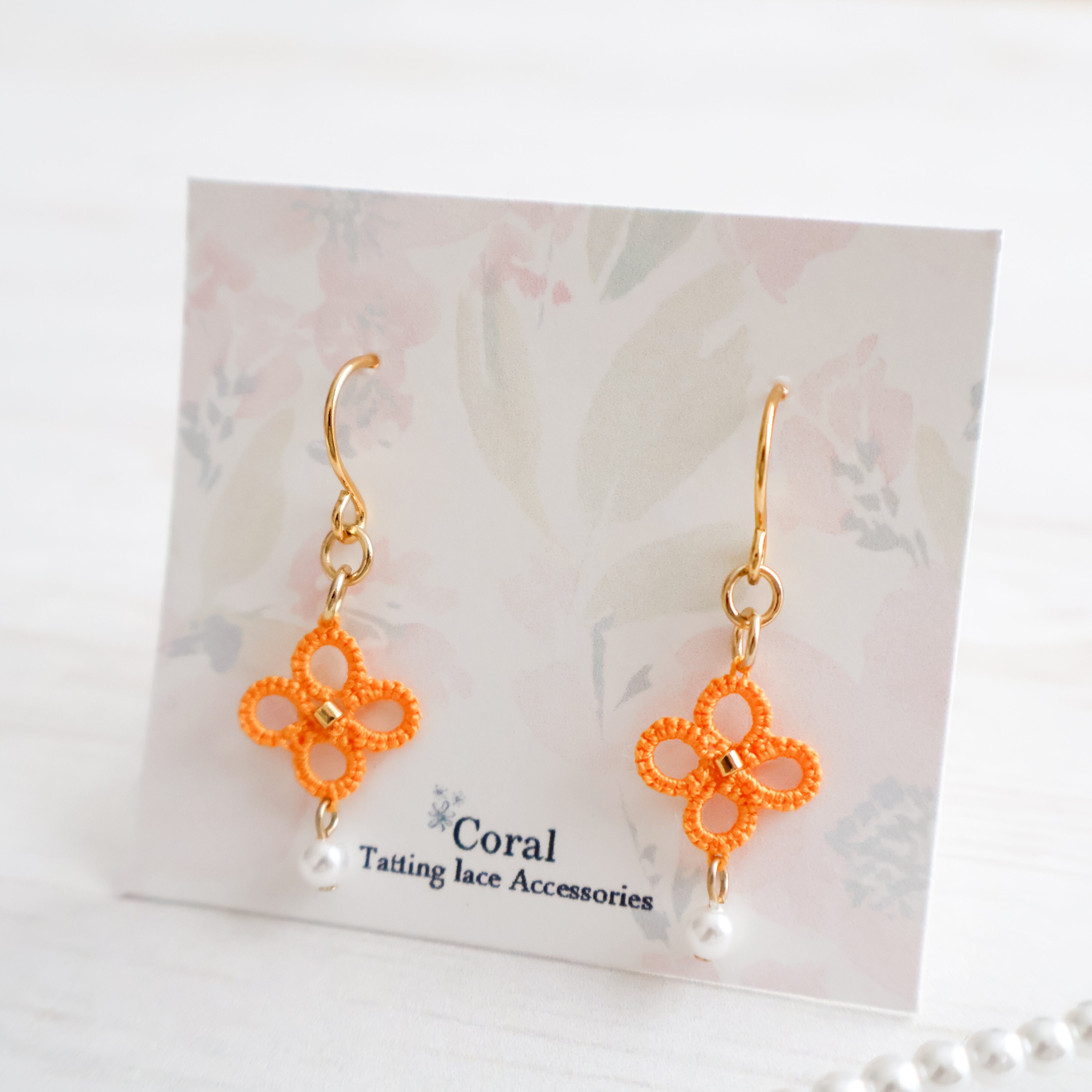 【ワンコイン】四つ葉モチーフ(オレンジ) アクセサリー レディース ピアス イヤリング 金属アレルギー対応 coralアクセサリー