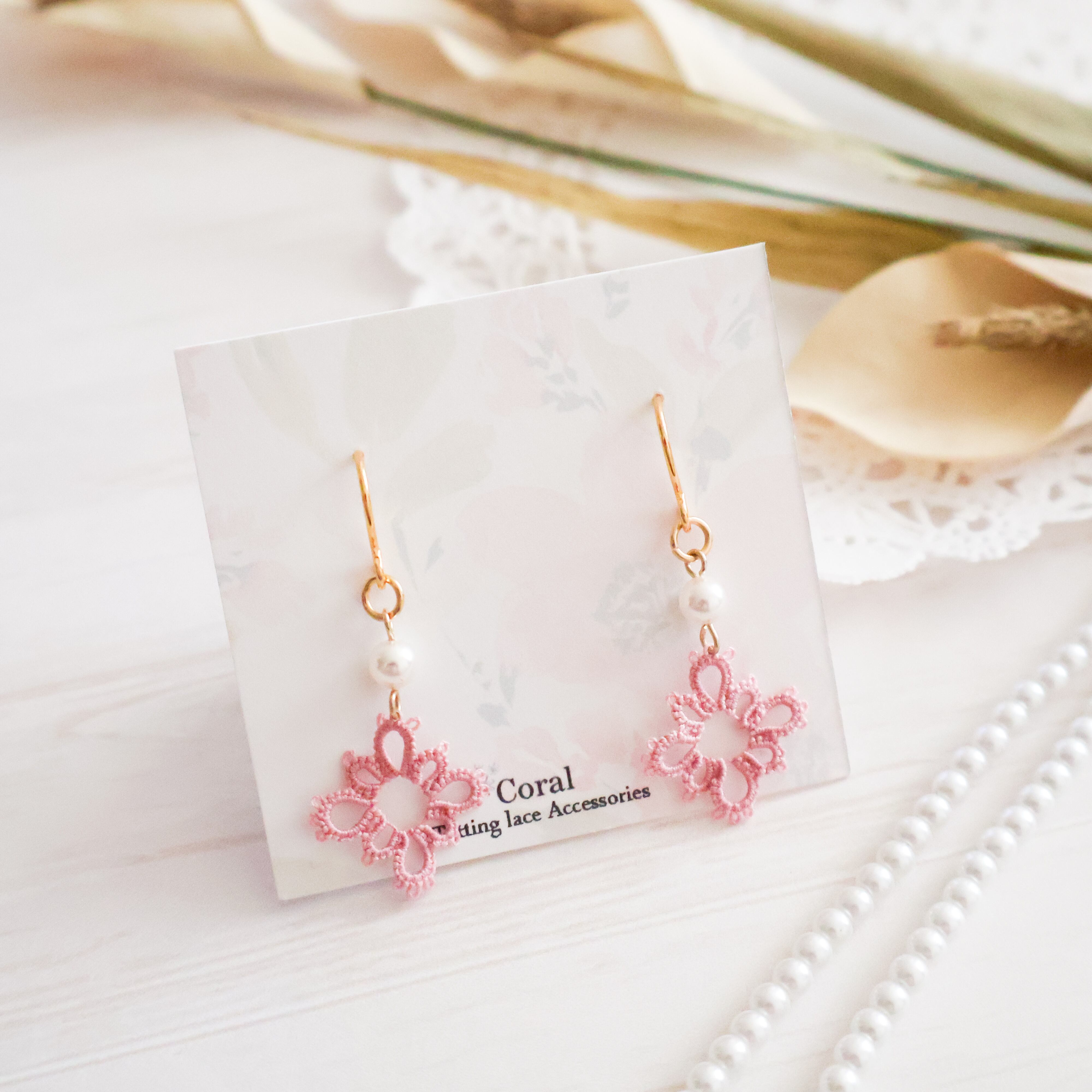 レース編みアクセサリーの特徴として、とても軽く付けているのを忘れてしまう、そんなアクセサリーをぜひお試しください
