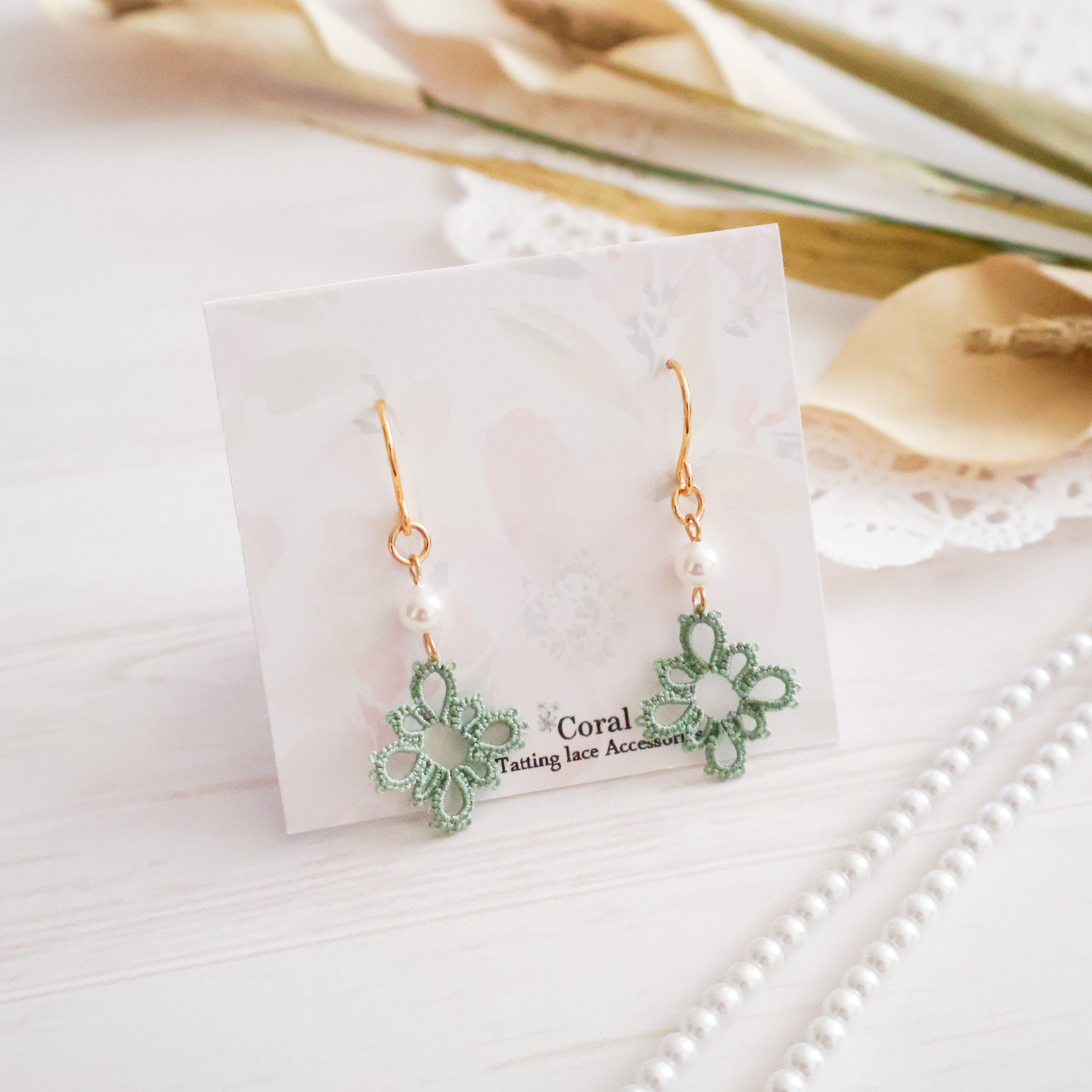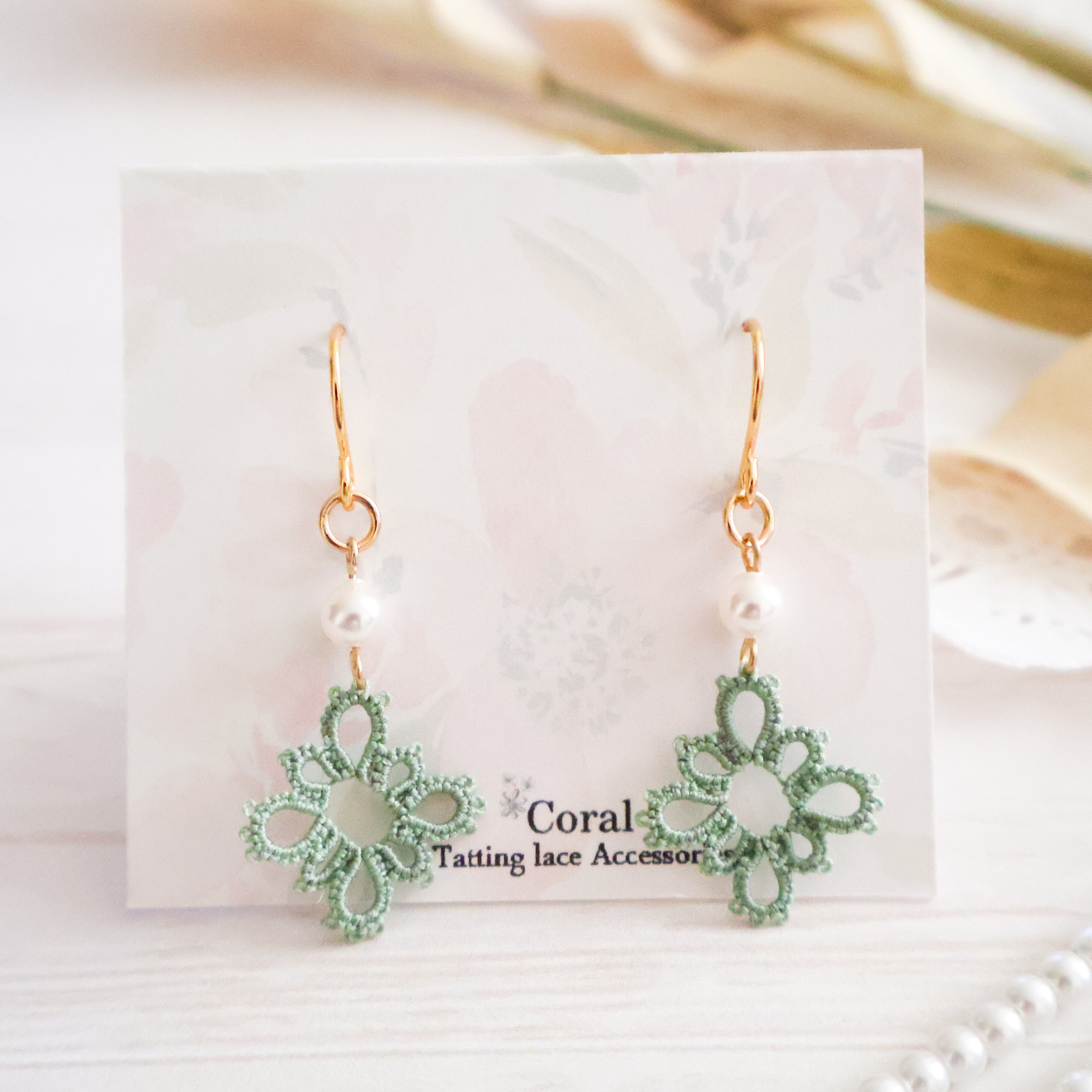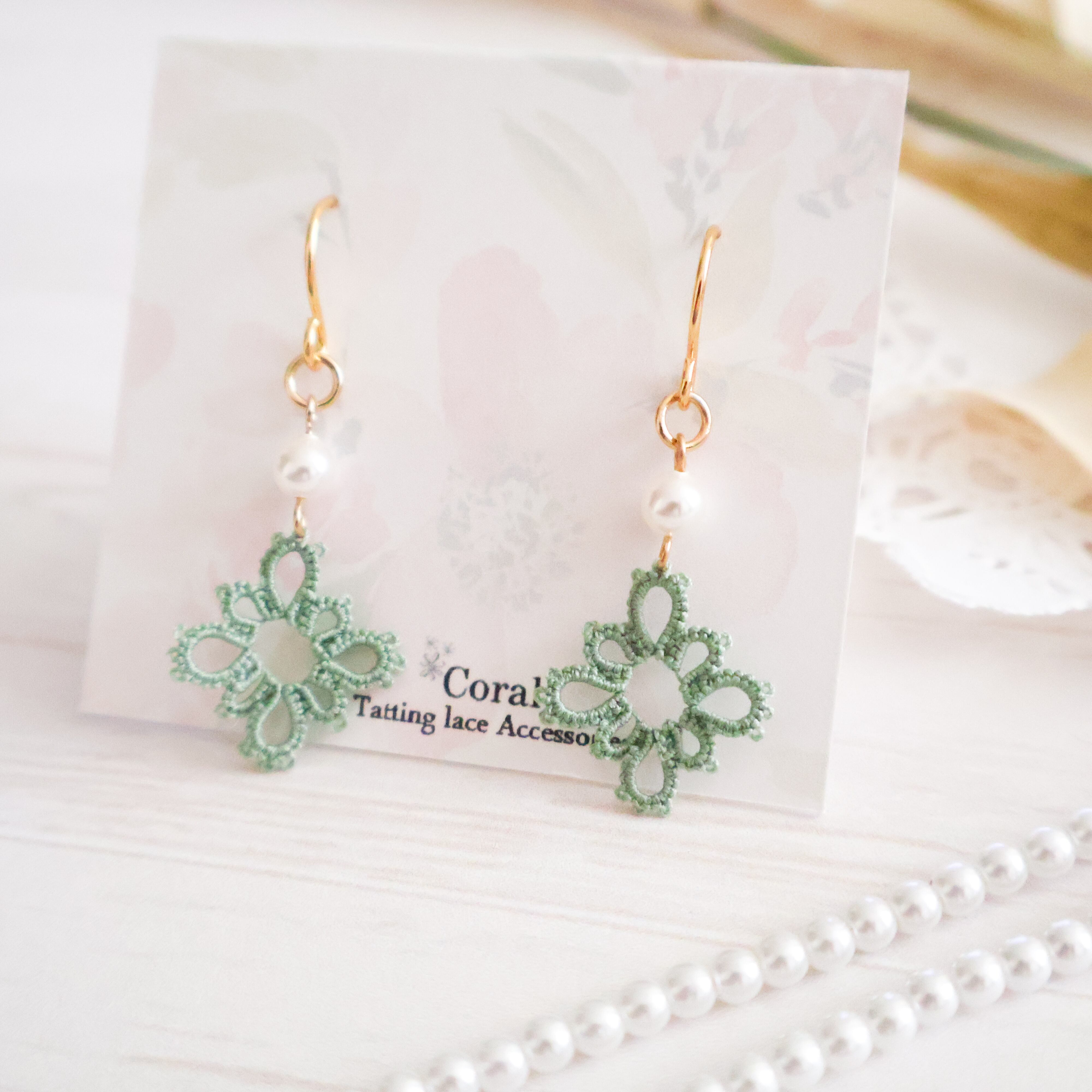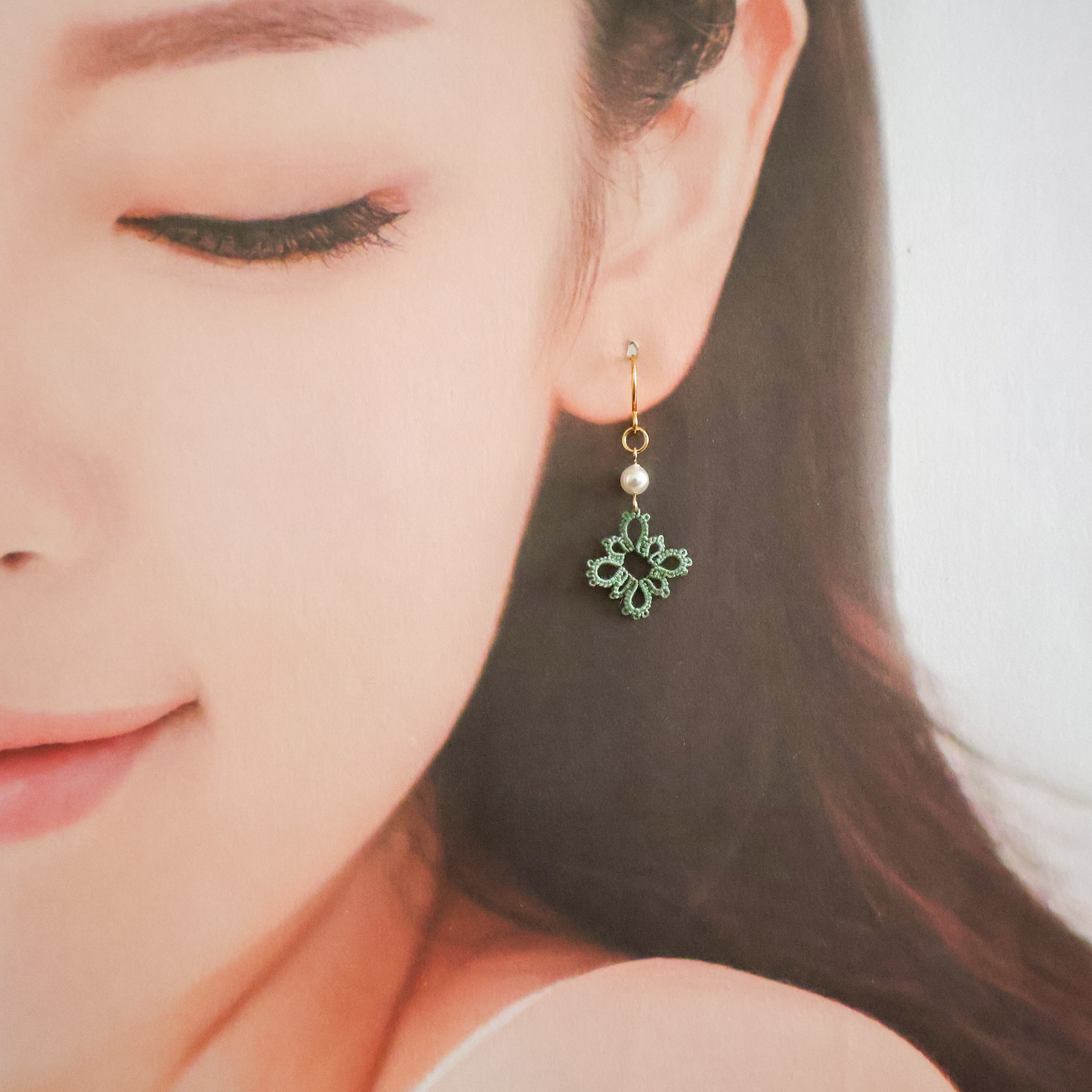 タティングレースのひし形のデザインが目を引くピアス/イヤリング。