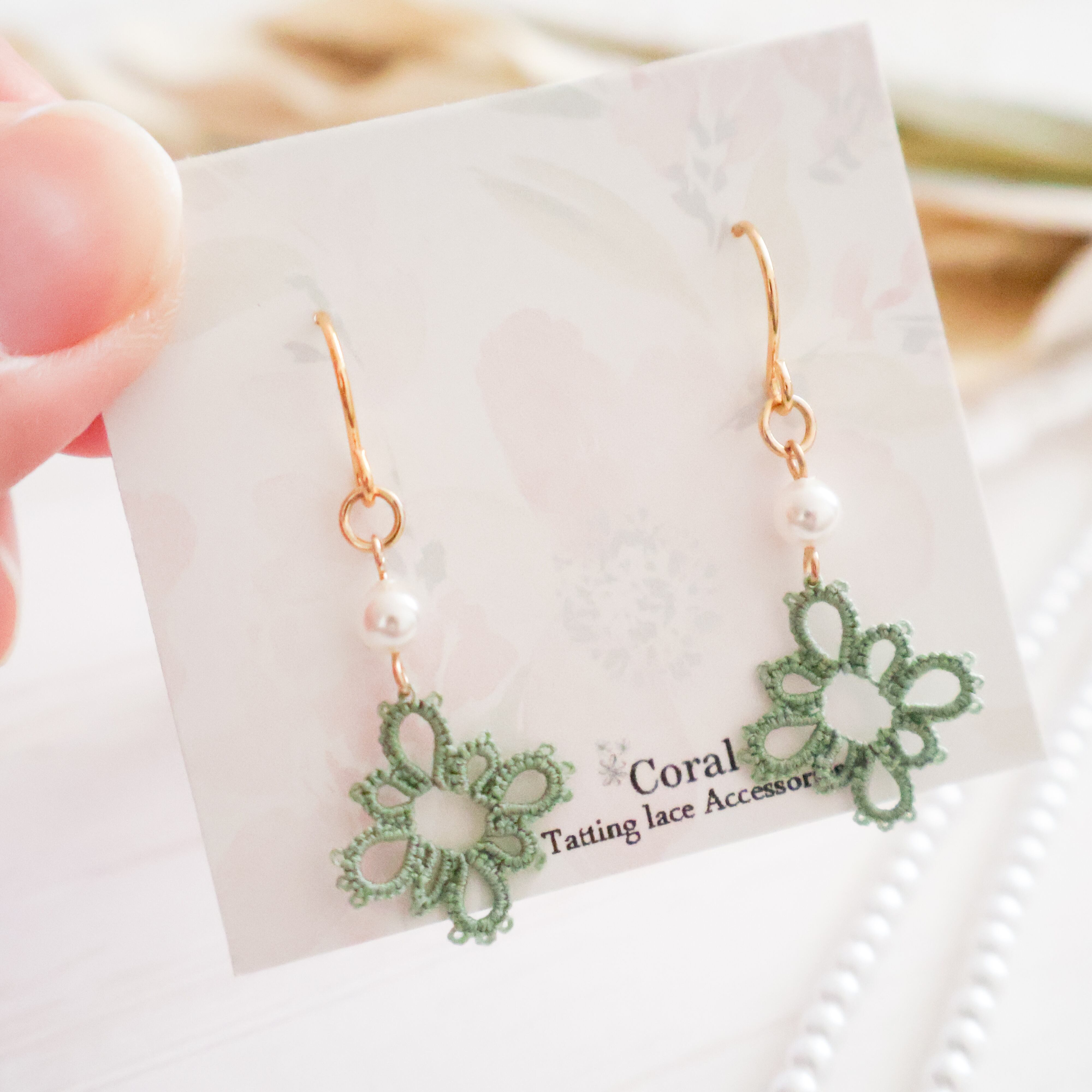レース編みアクセサリーの特徴として、とても軽く付けているのを忘れてしまう、そんなアクセサリーをぜひお試しください