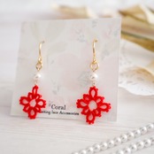 【rhombus】レッド ひし形 パール アクセサリー ピアス イヤリング 金属アレルギー対応 coralアクセサリー