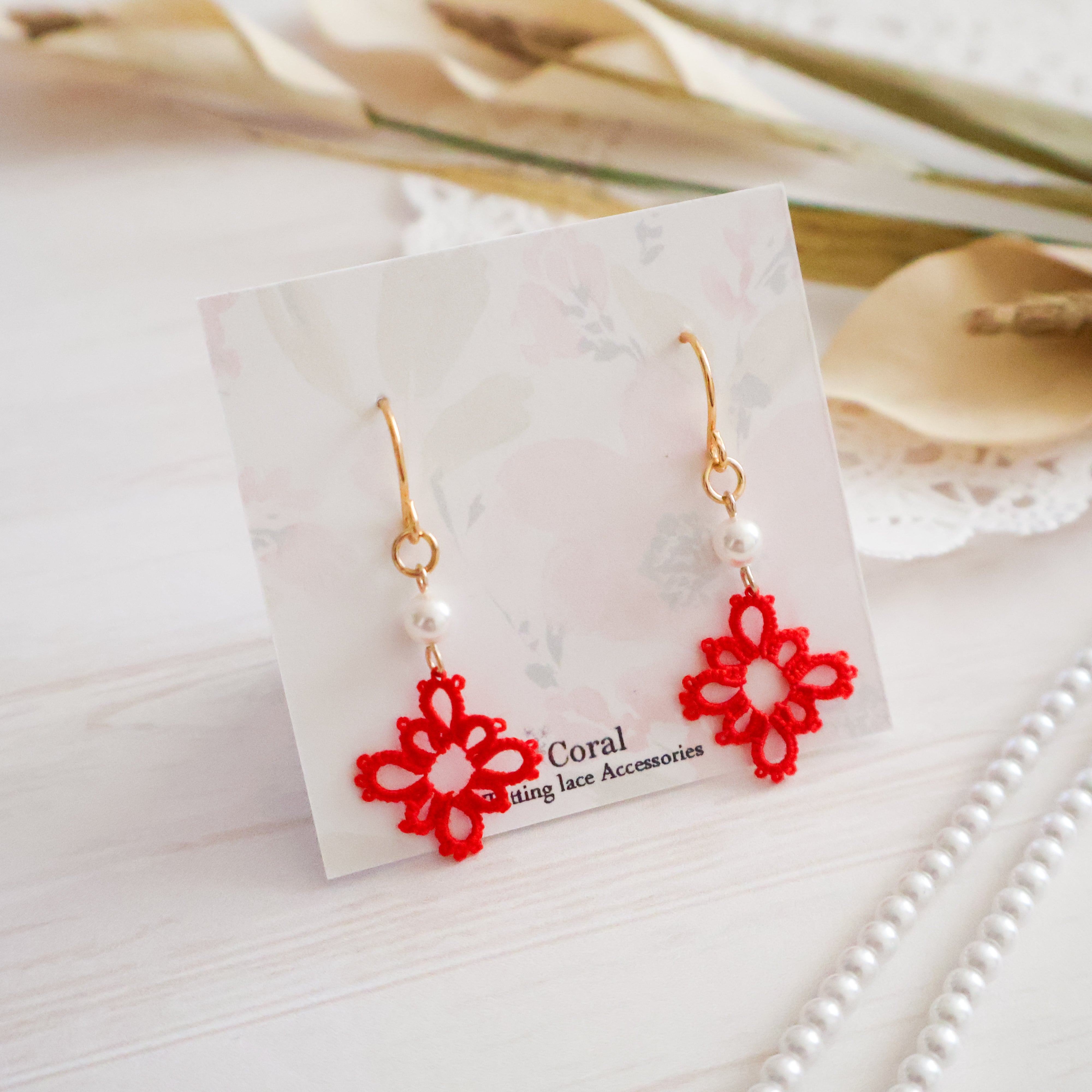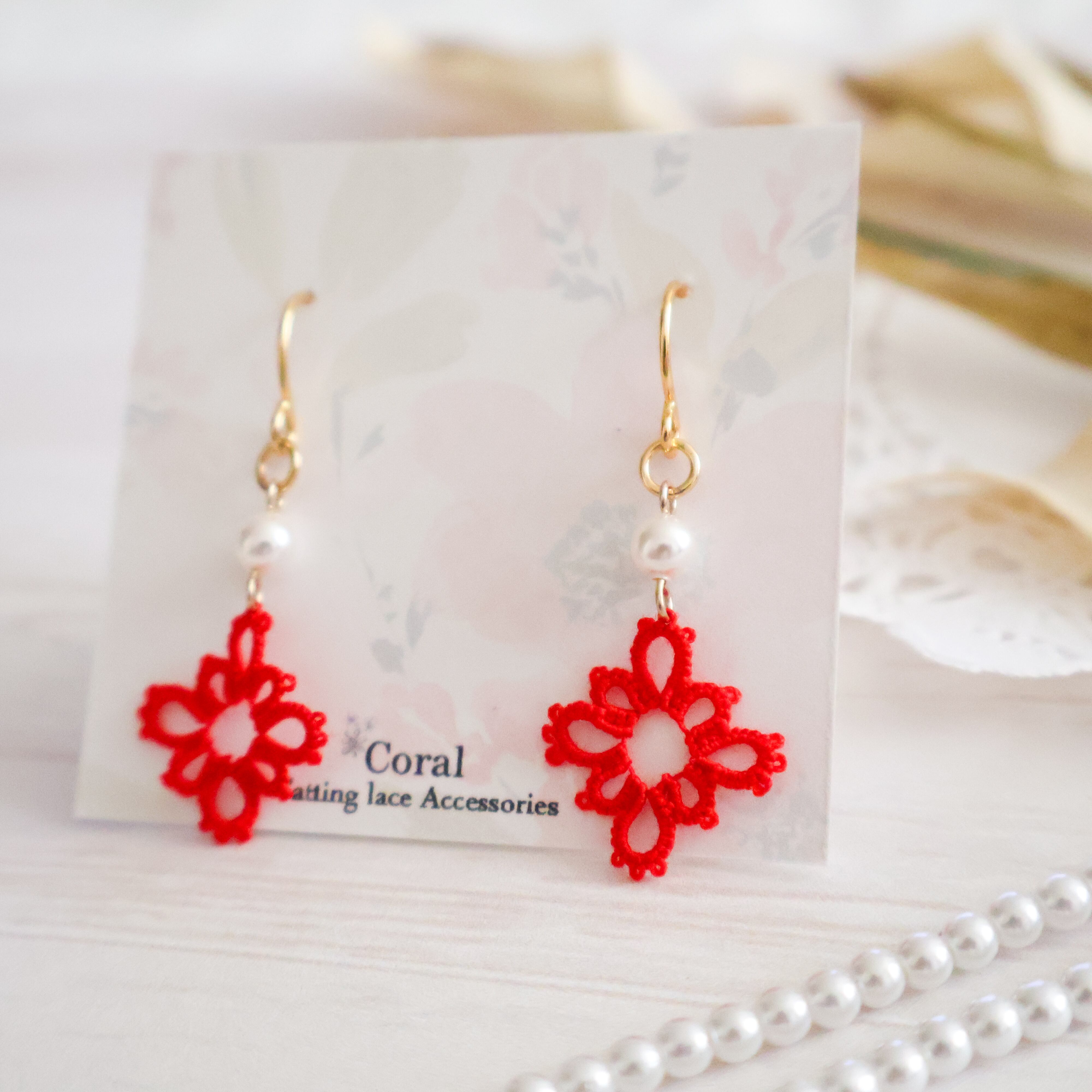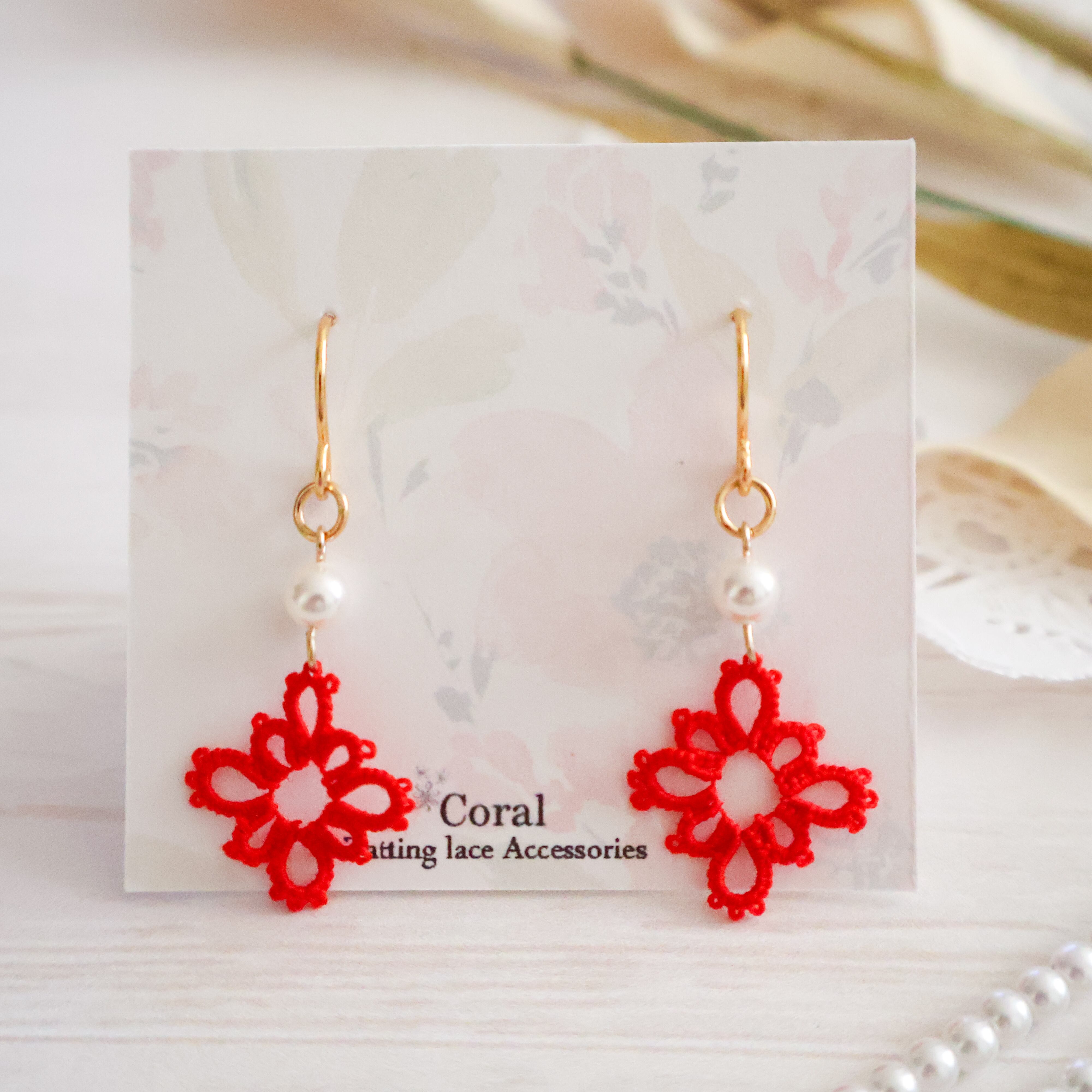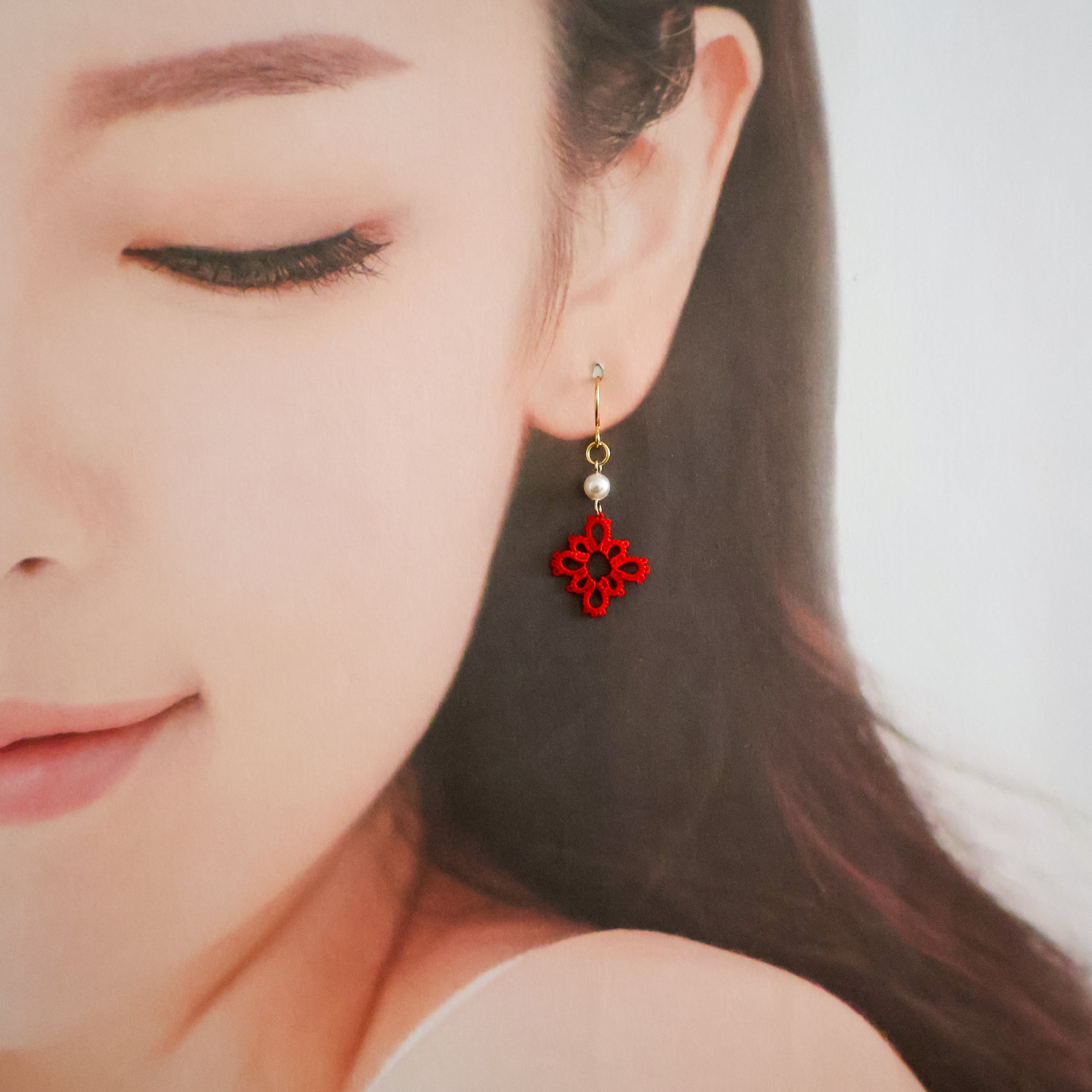 タティングレースのひし形のデザインが目を引くピアス/イヤリング。