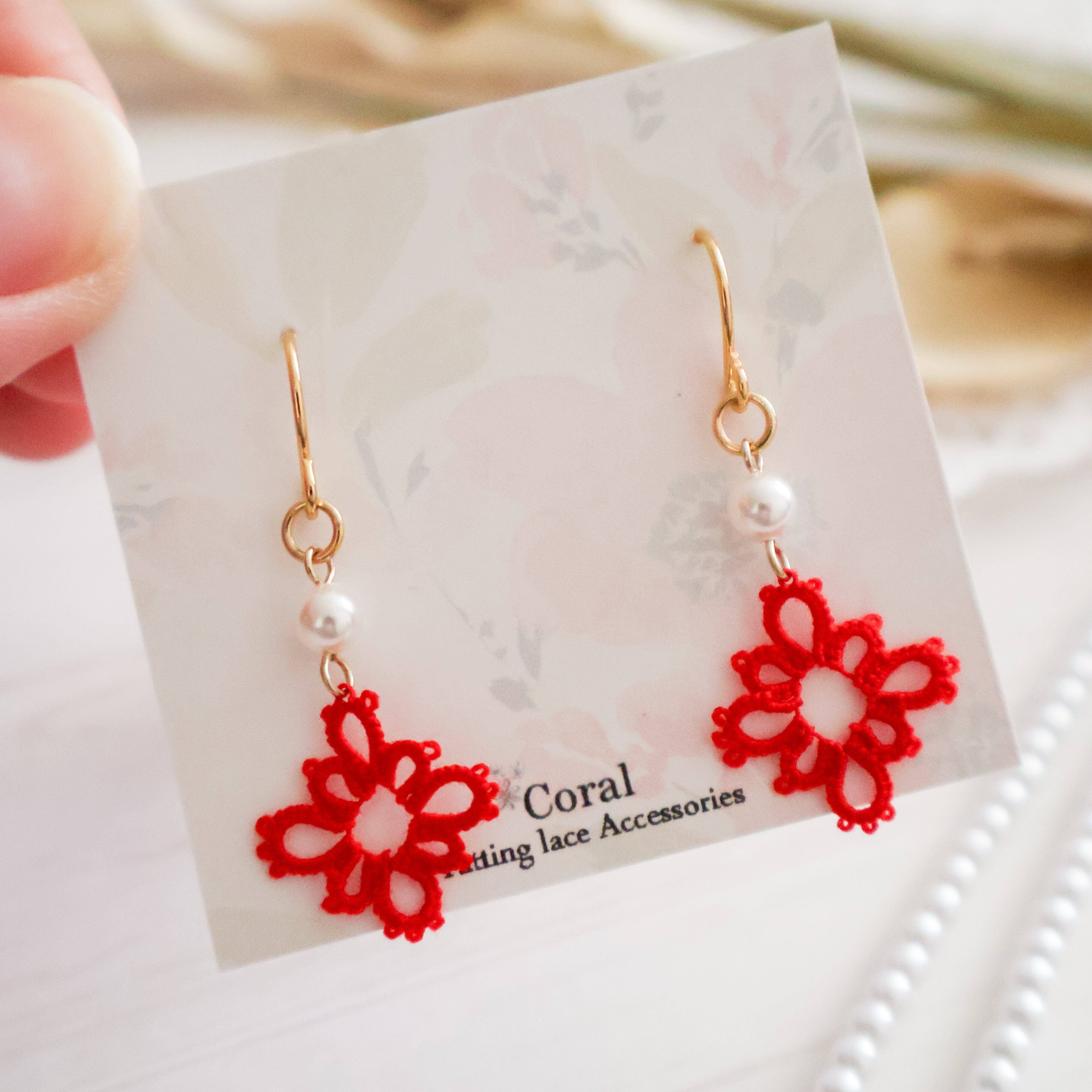 レース編みアクセサリーの特徴として、とても軽く付けているのを忘れてしまう、そんなアクセサリーをぜひお試しください