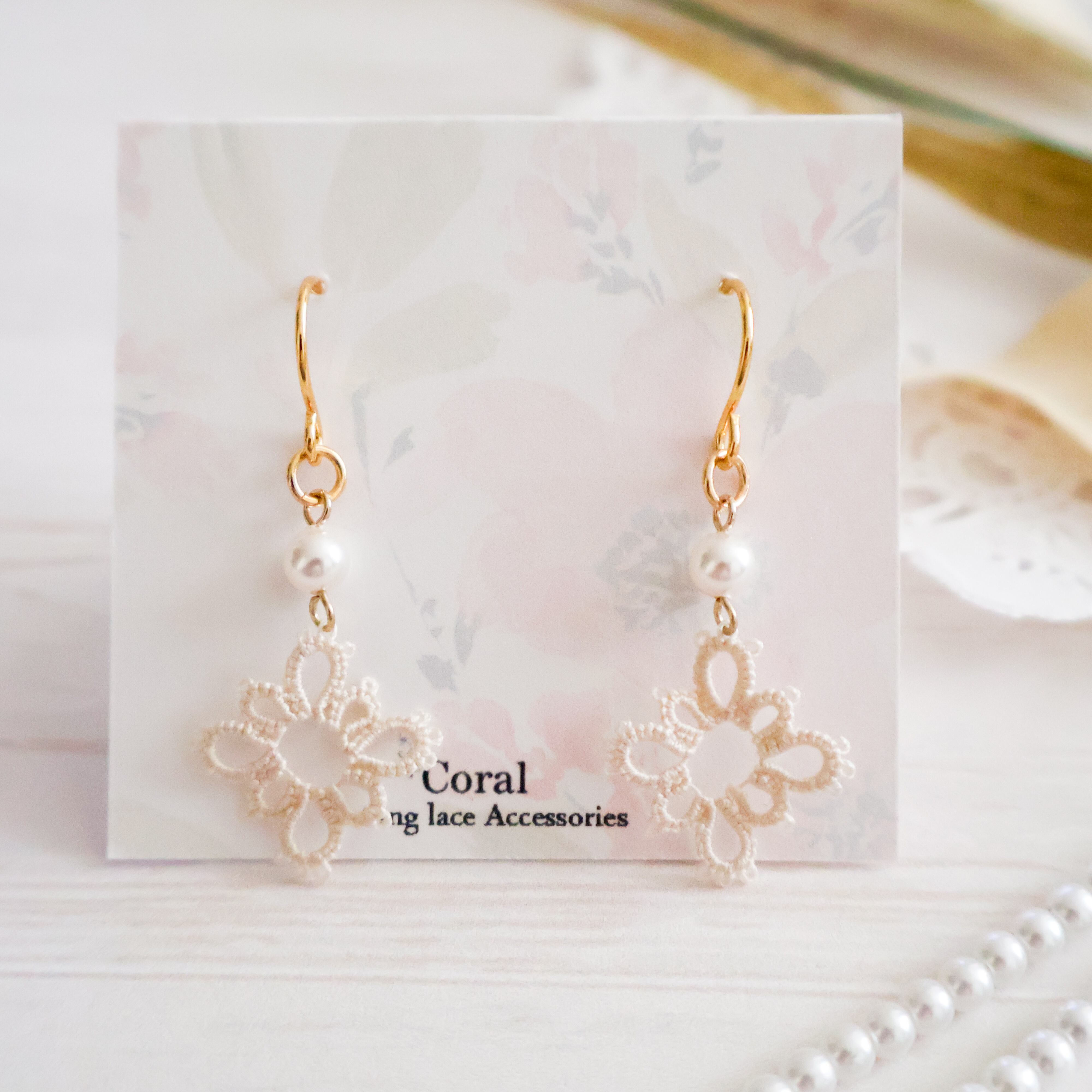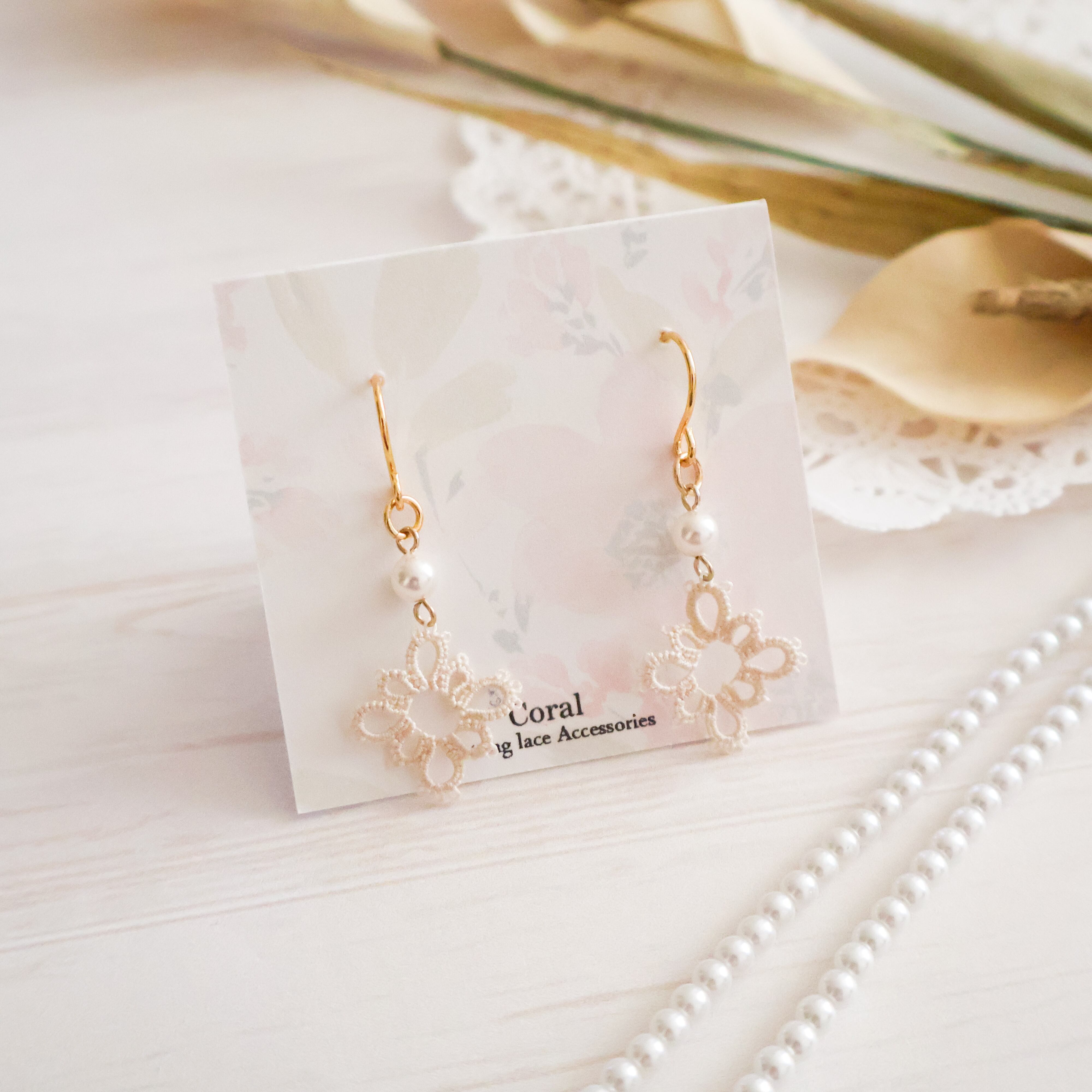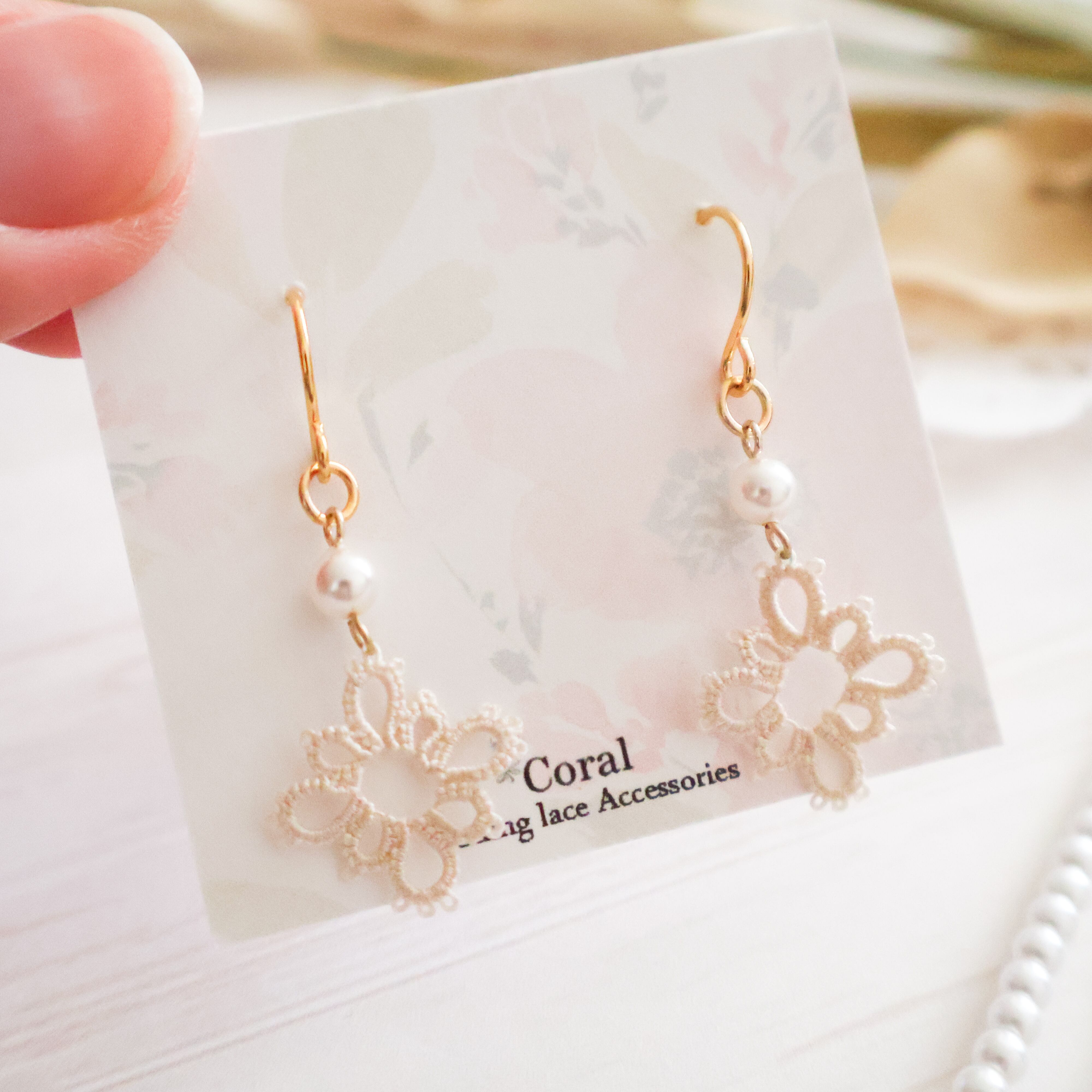 レース編みアクセサリーの特徴として、とても軽く付けているのを忘れてしまう、そんなアクセサリーをぜひお試しください
