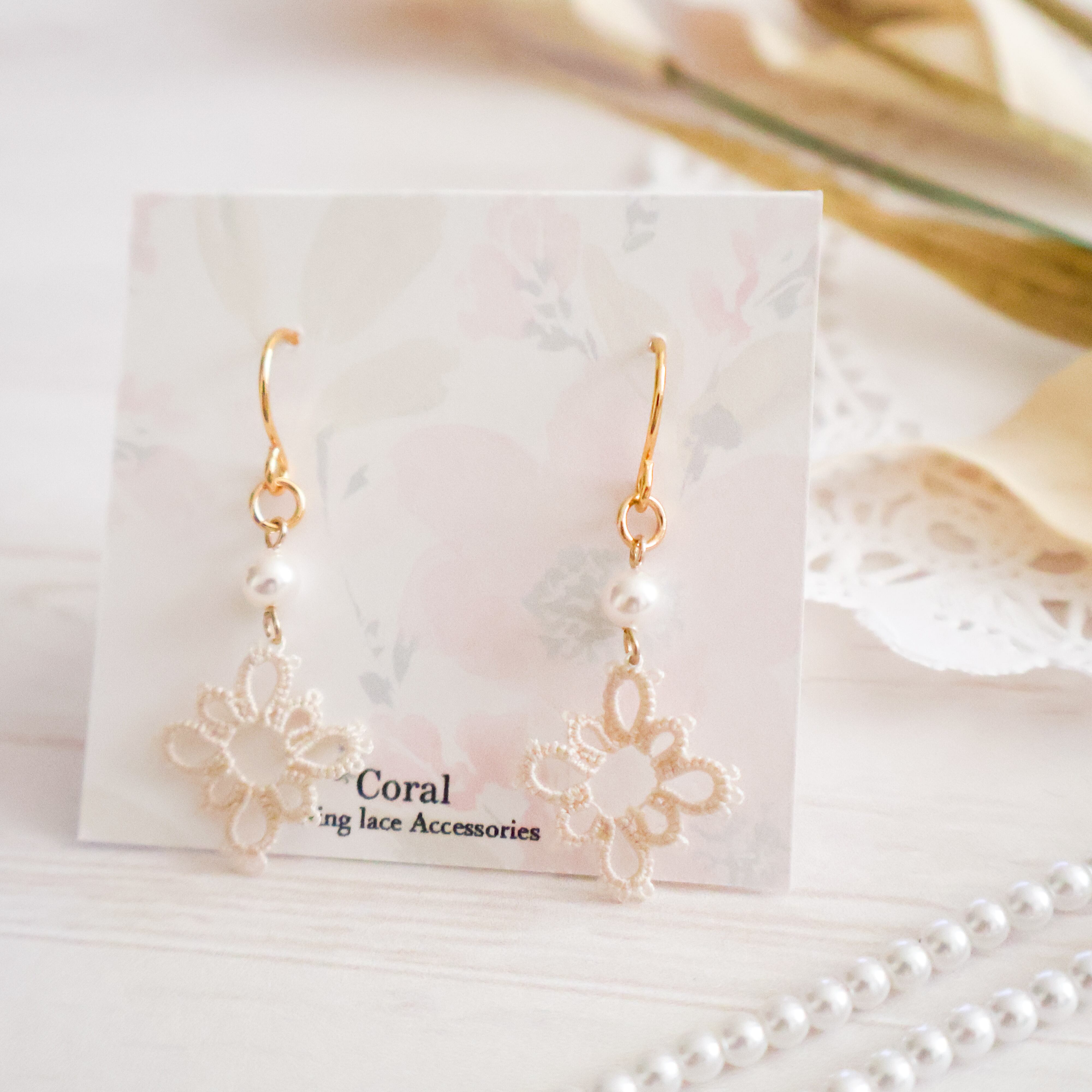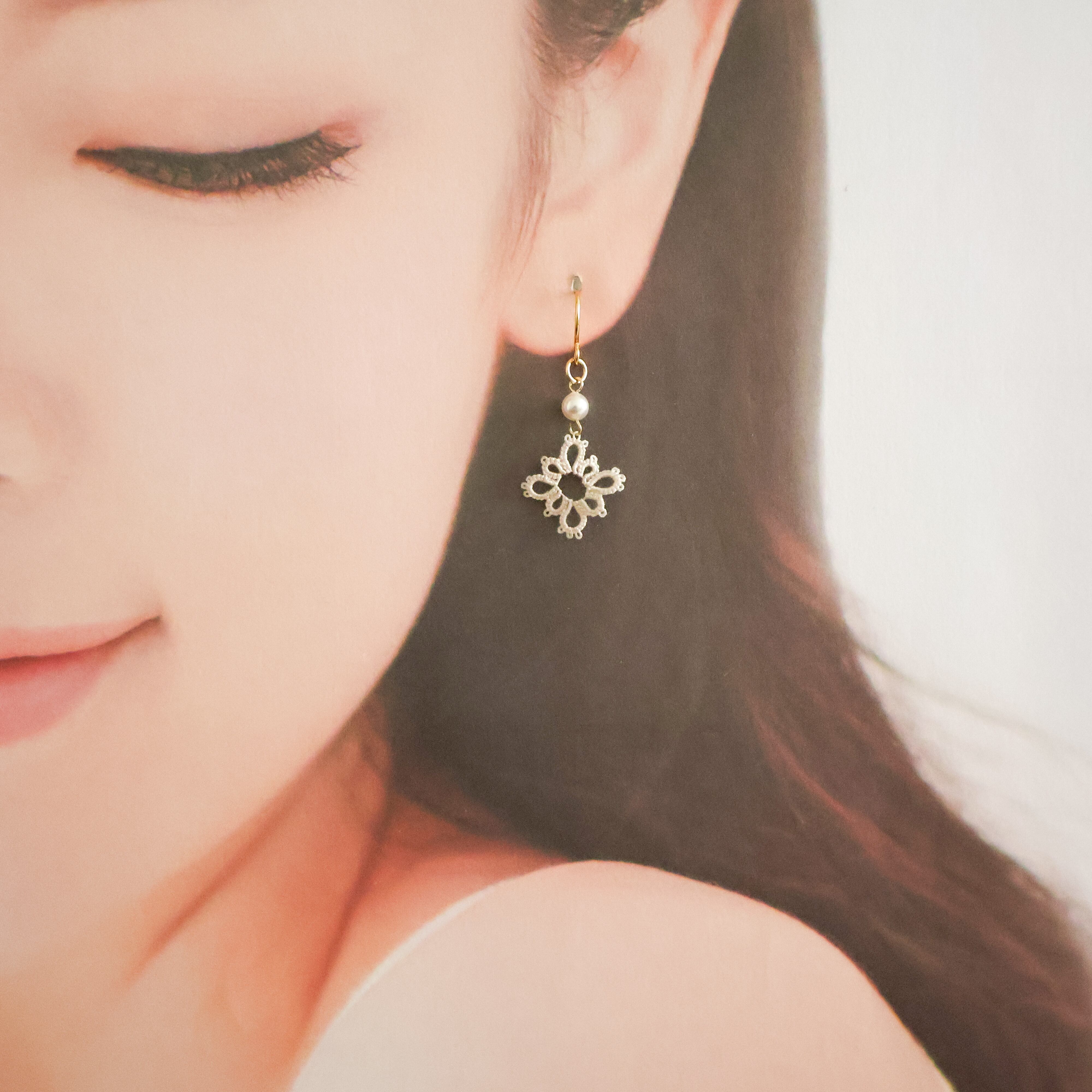 タティングレースのひし形のデザインが目を引くピアス/イヤリング。
