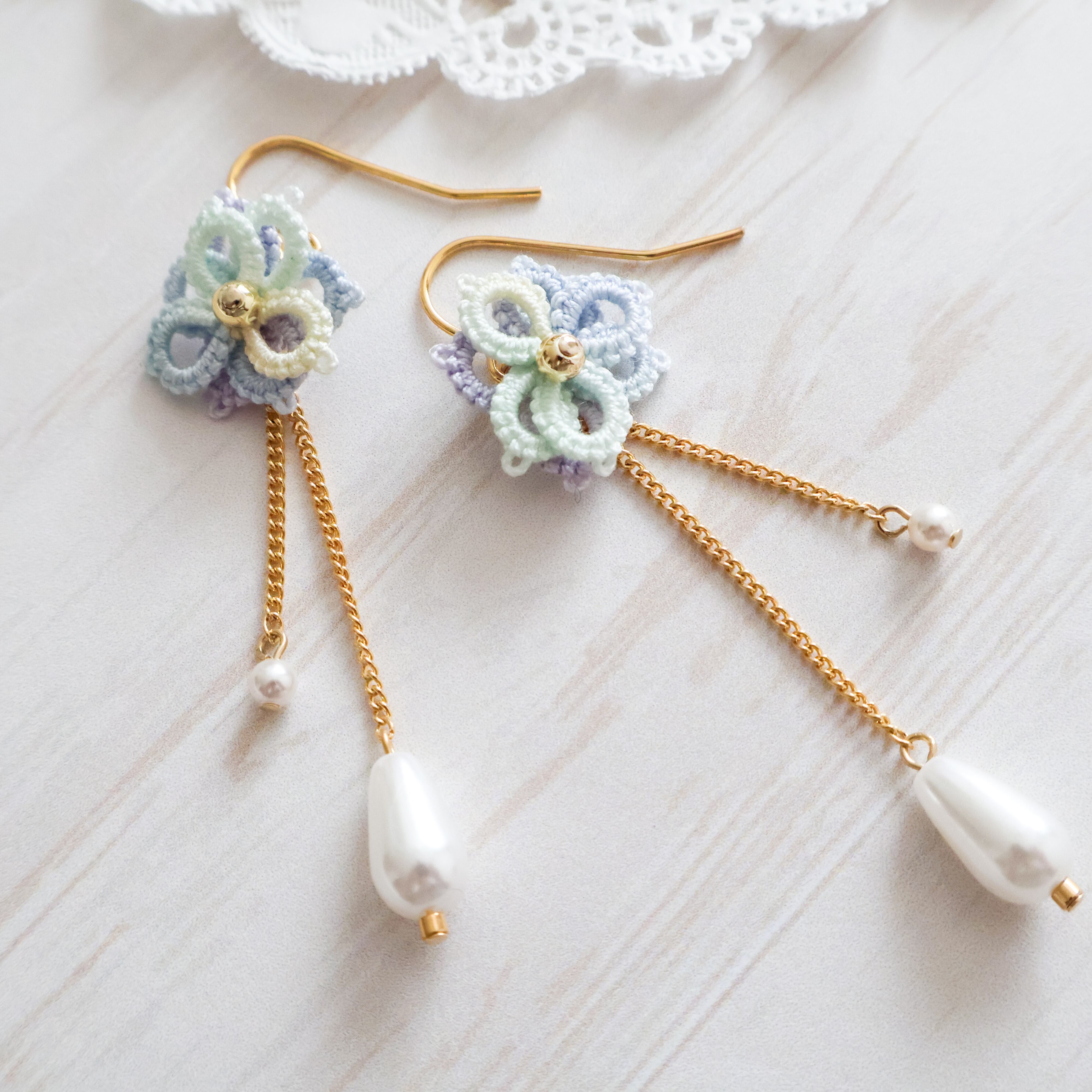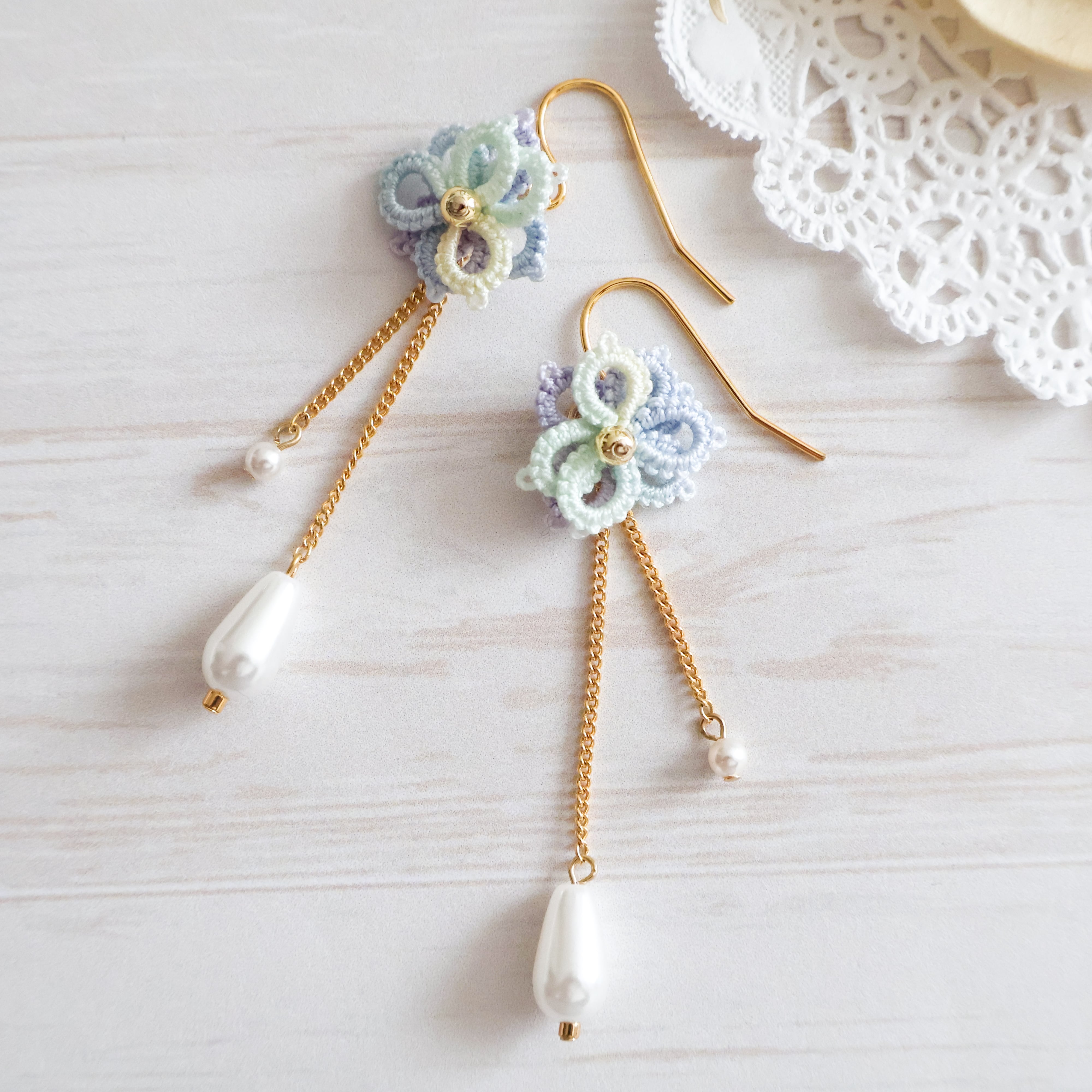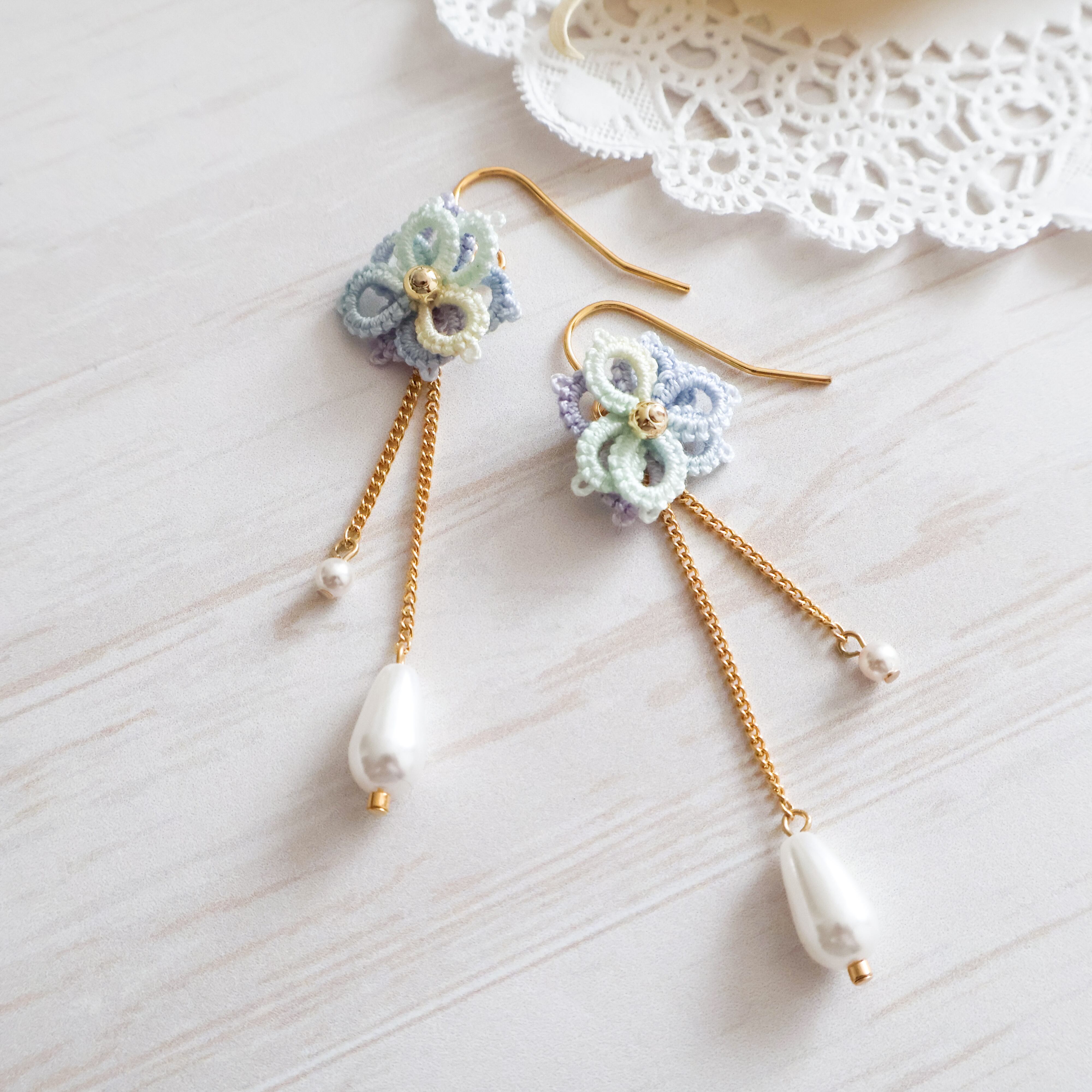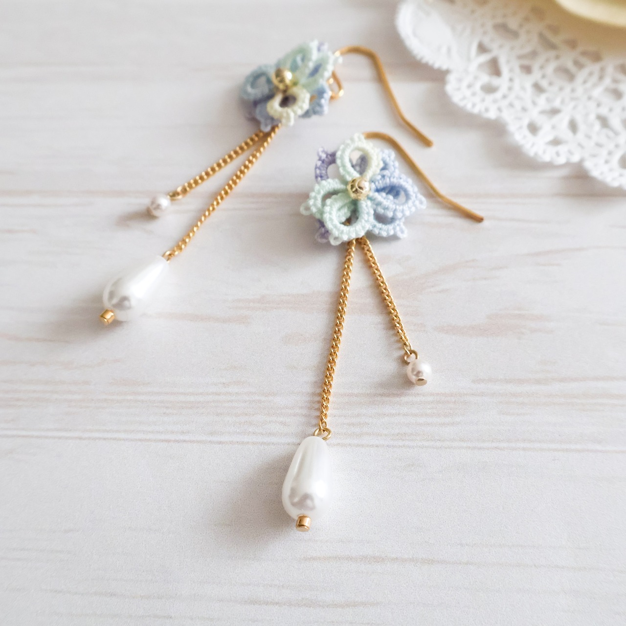 【colors】揺れるパール ブルー・グリーン アクセサリー ピアス イヤリング 金属アレルギー対応 coralアクセサリー