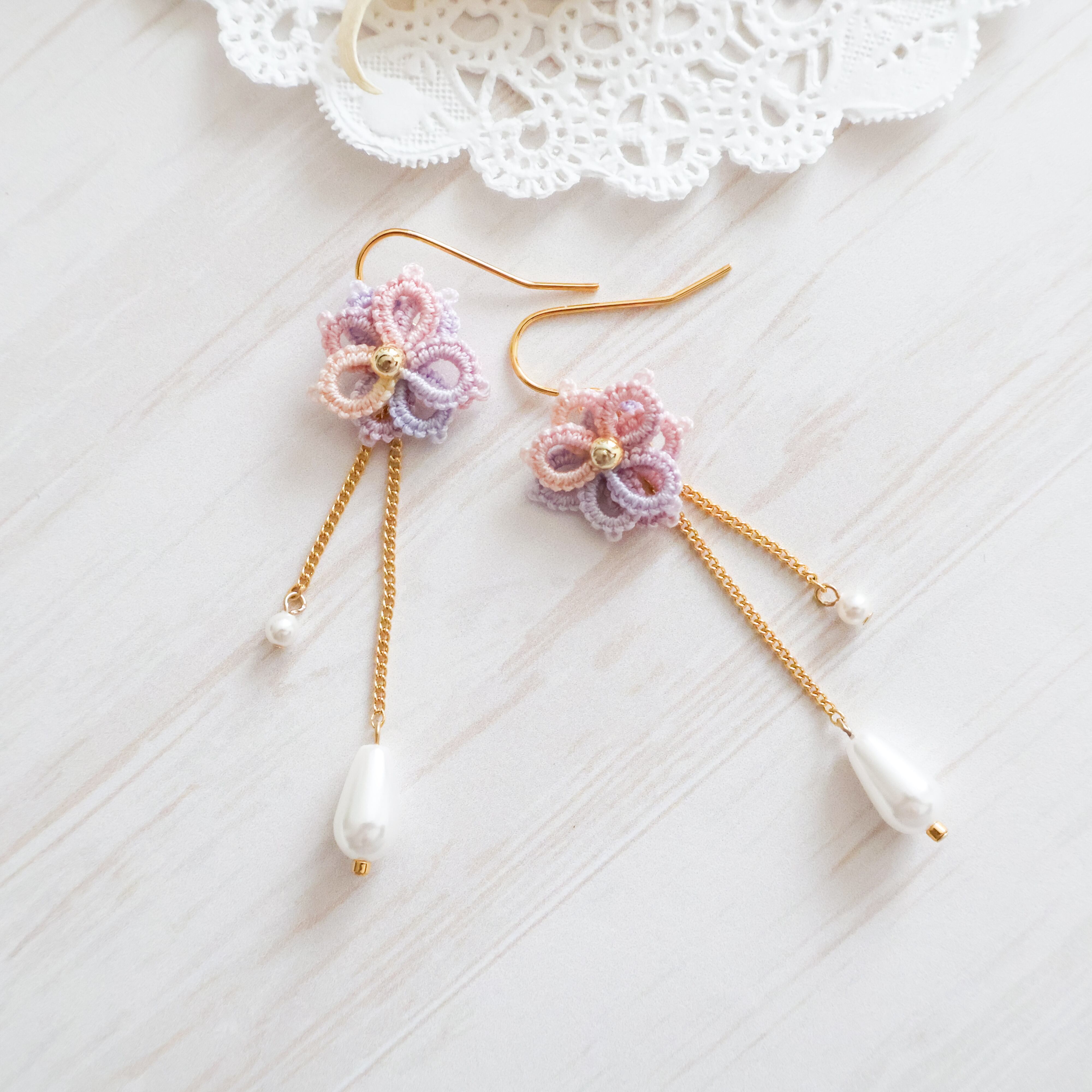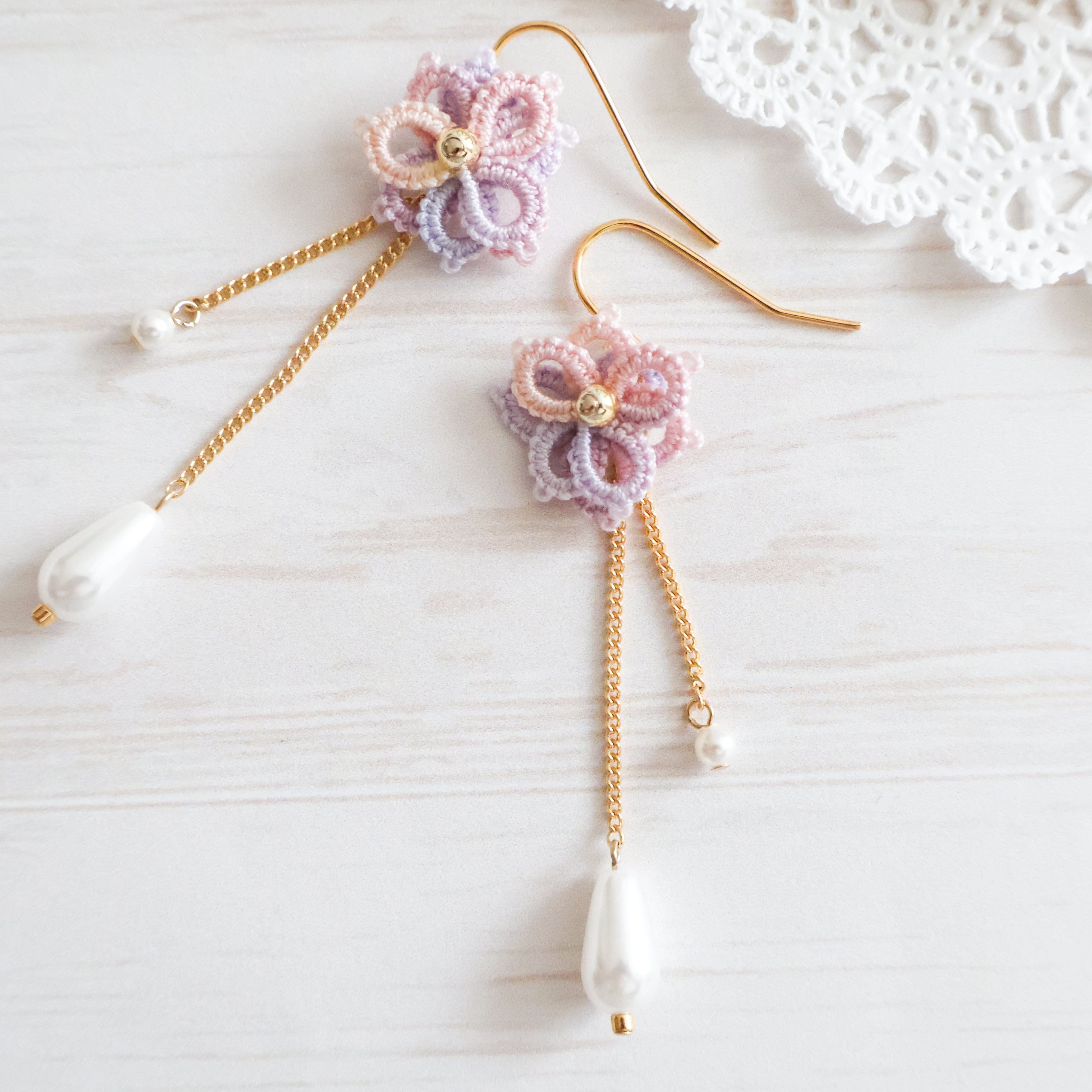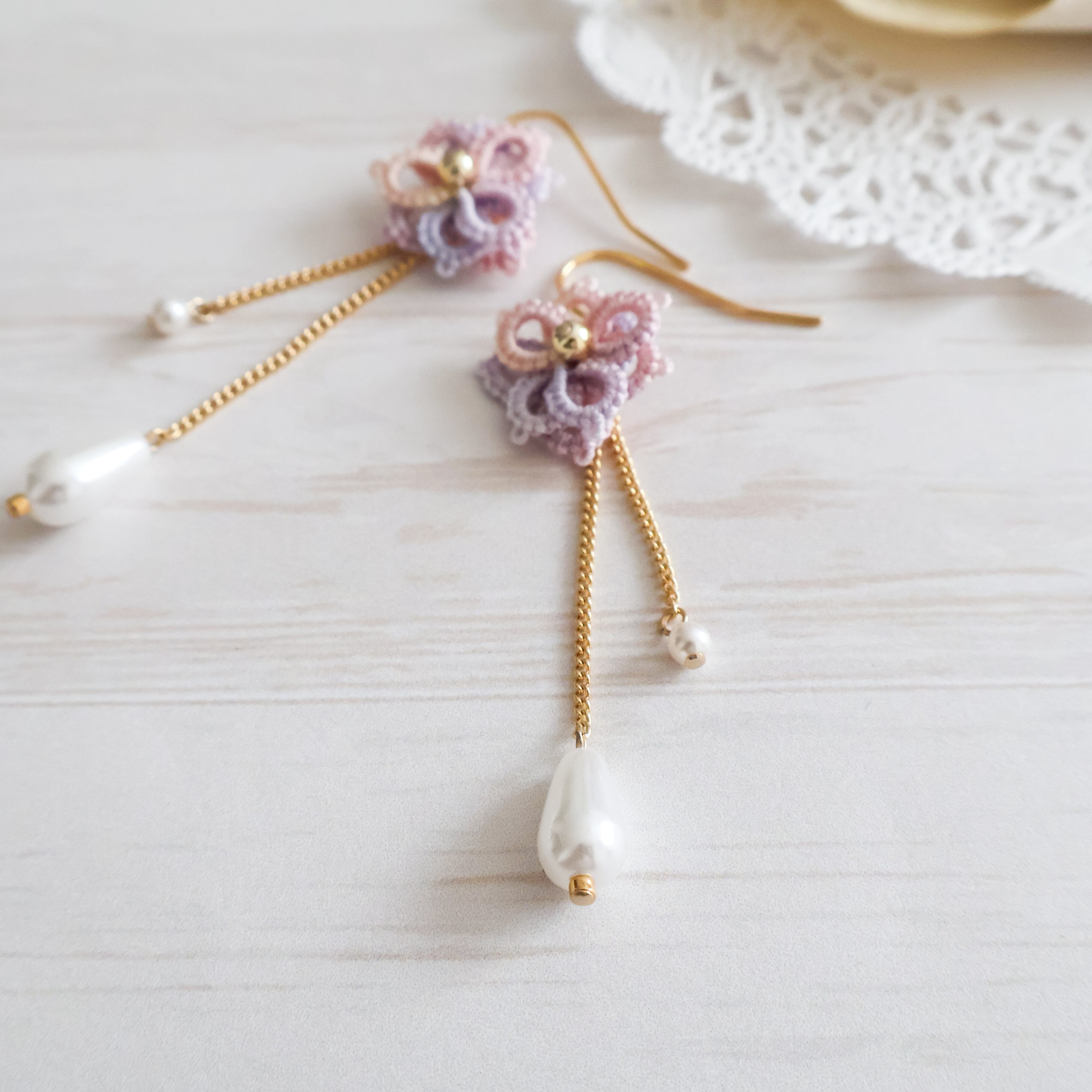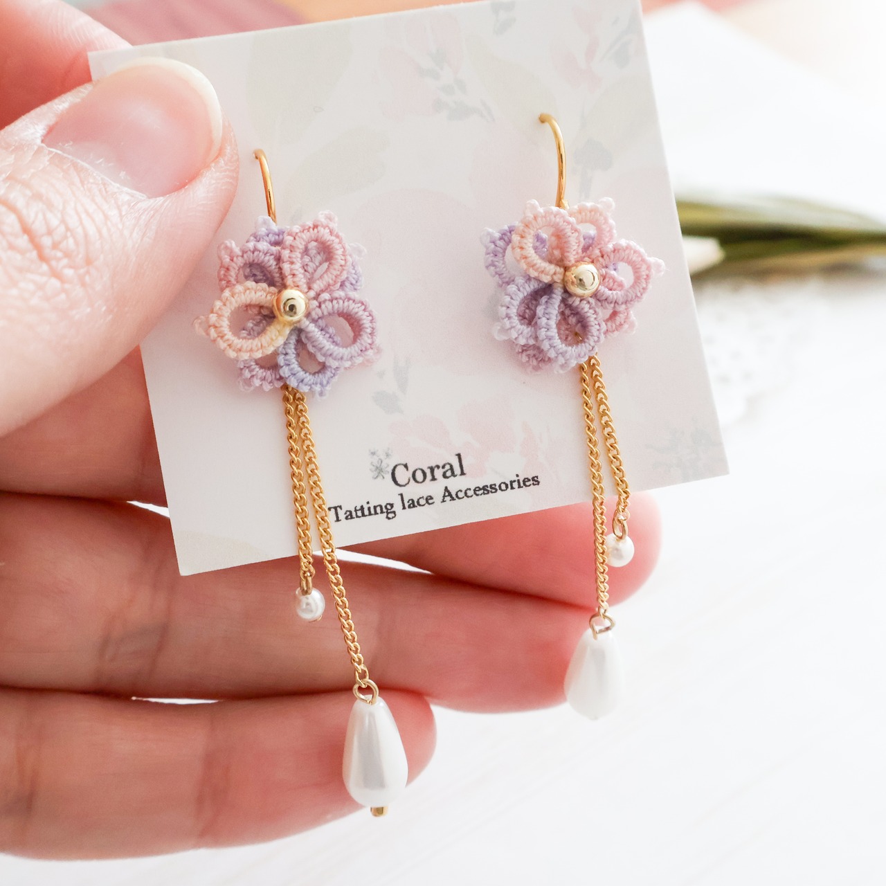 【colors】揺れるパール パープル・ピンク アクセサリー ピアス イヤリング 金属アレルギー対応 coralアクセサリー