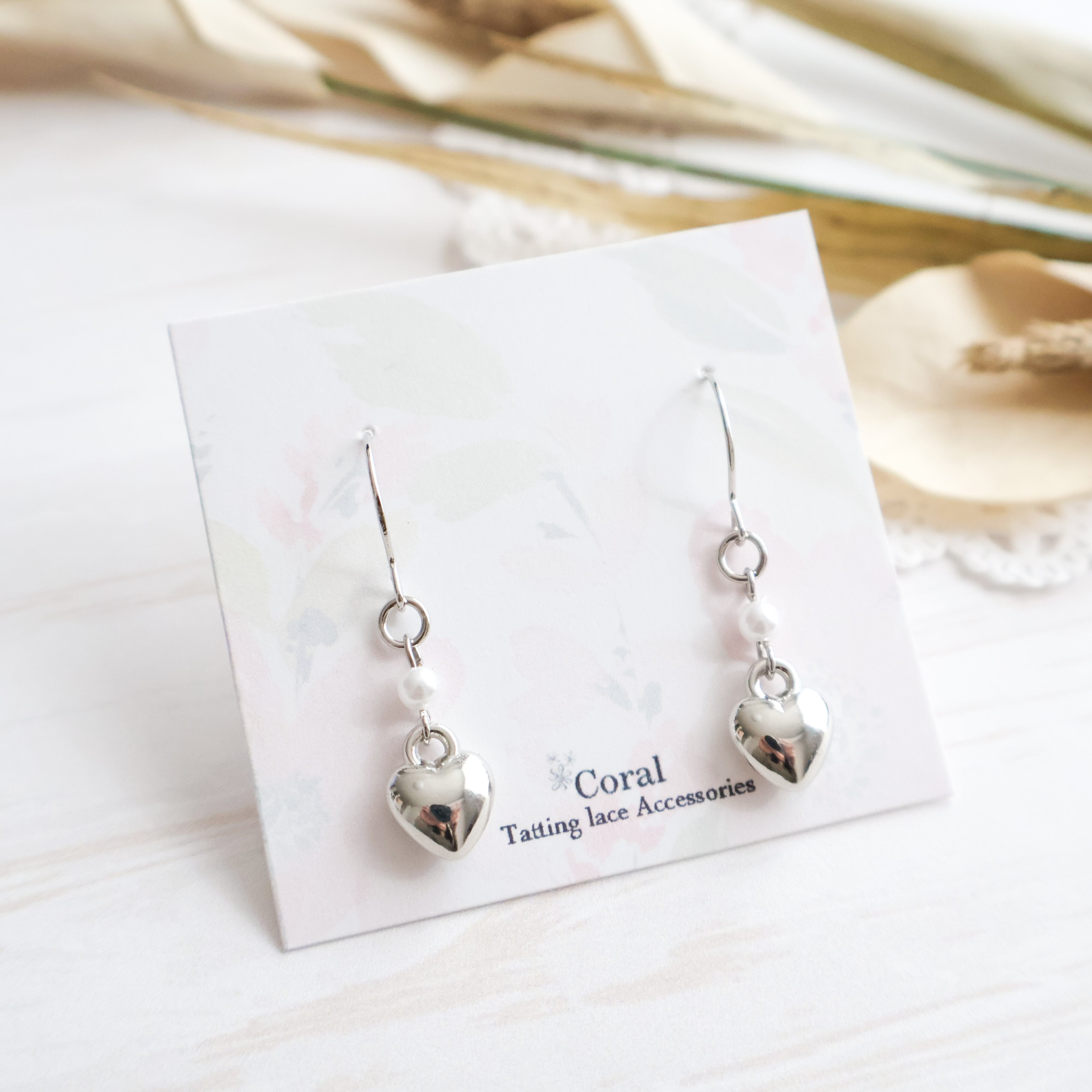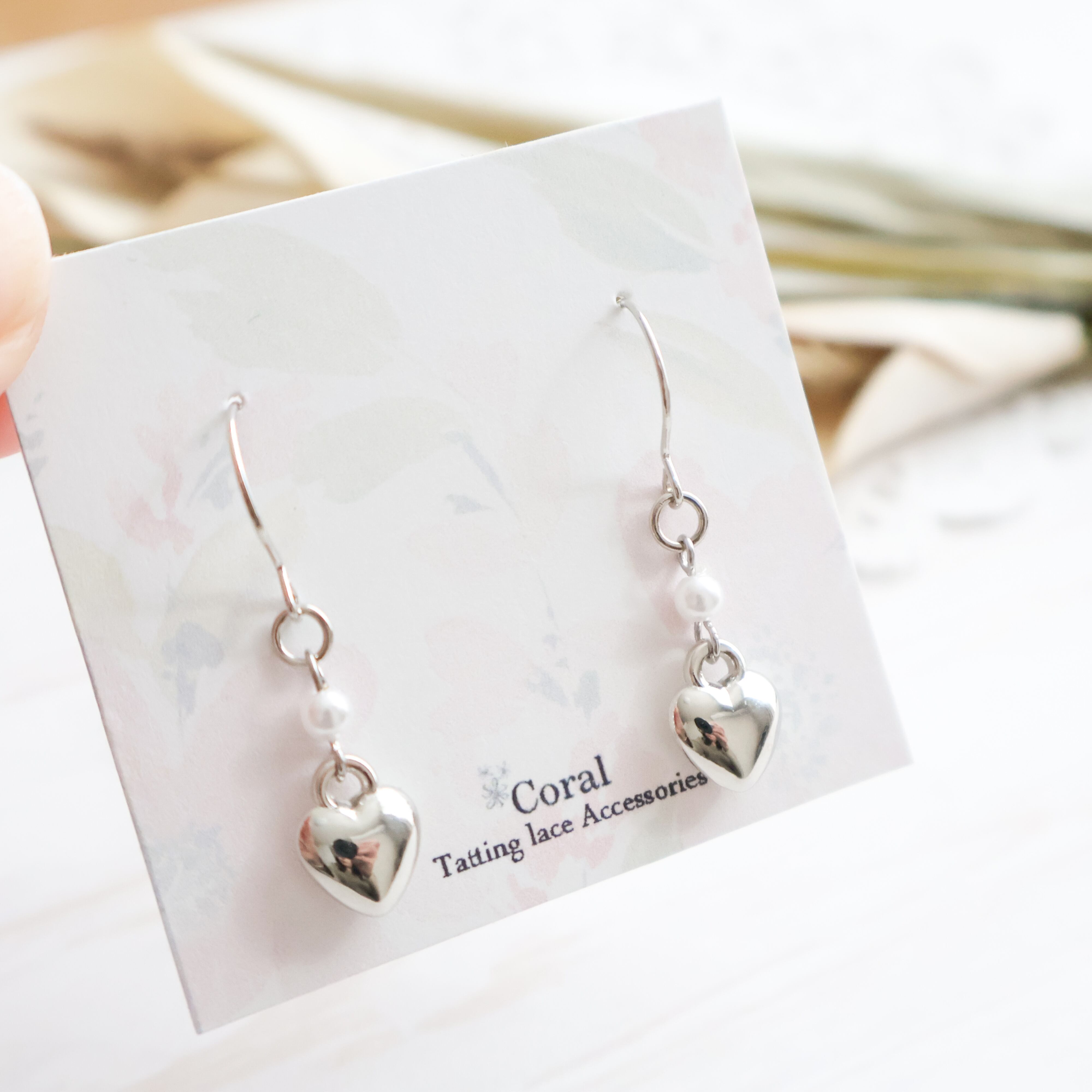 約1cmの小さいハートチャームに小粒のパールを合わせシンプルな中に上品な可愛さをプラスしたデザインにしました。
