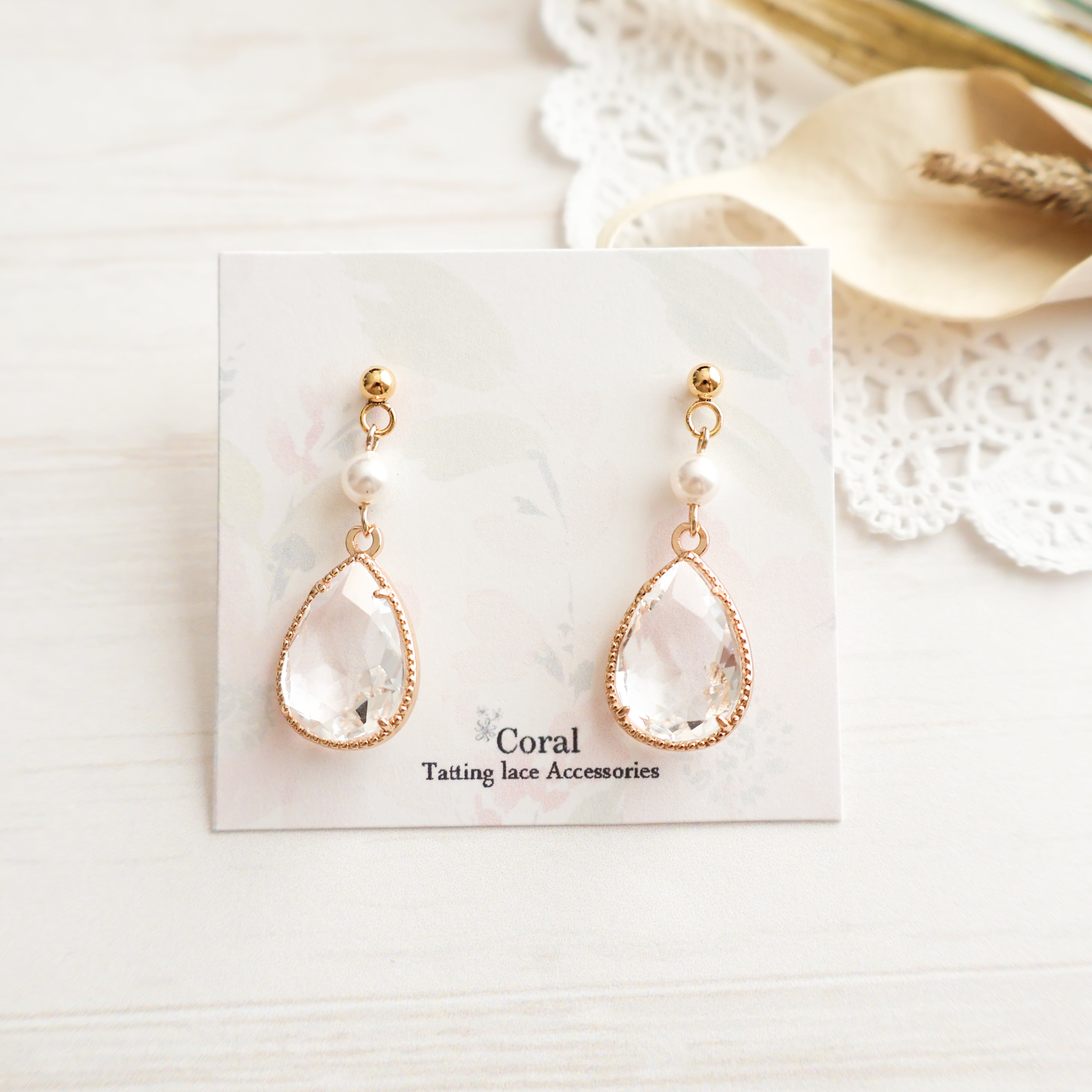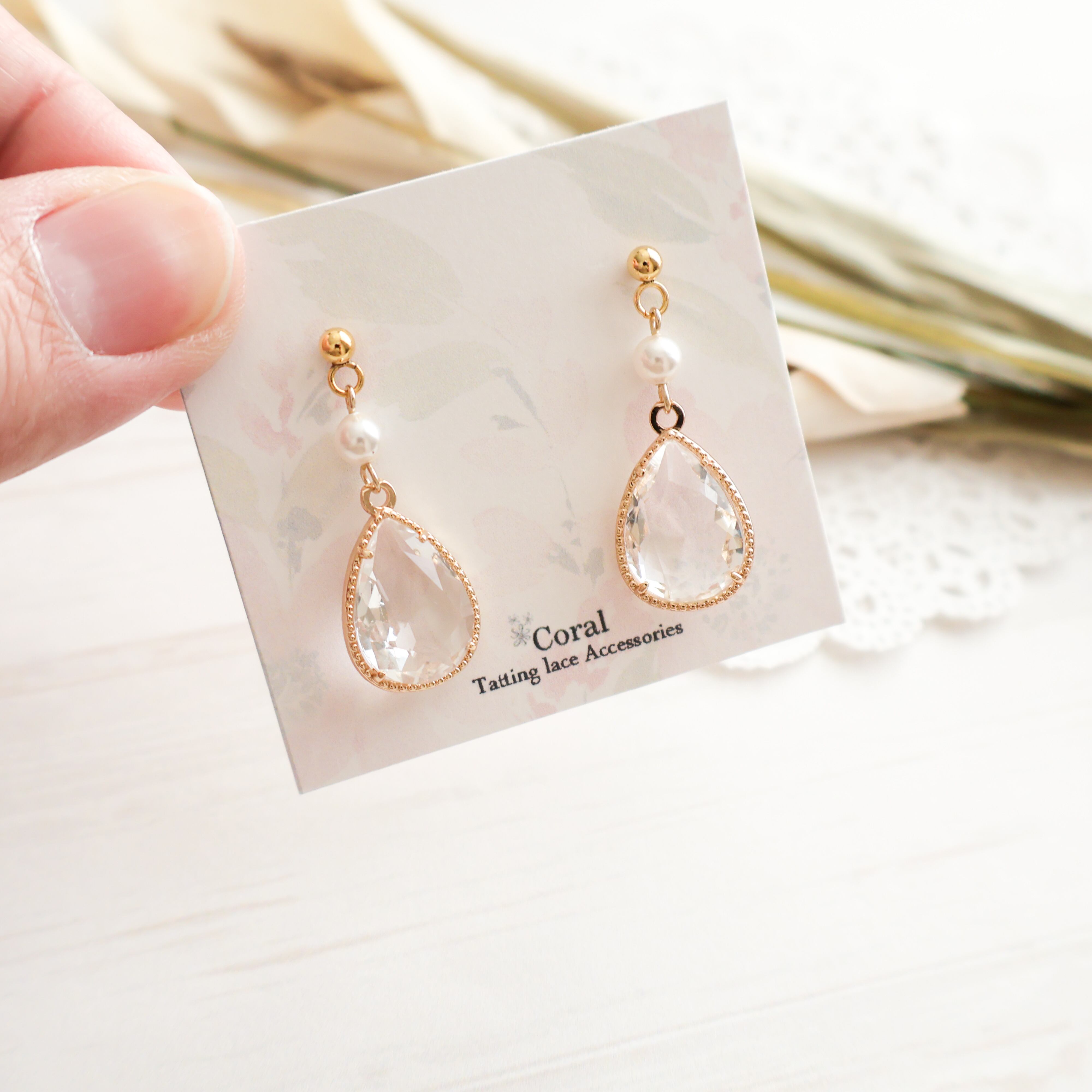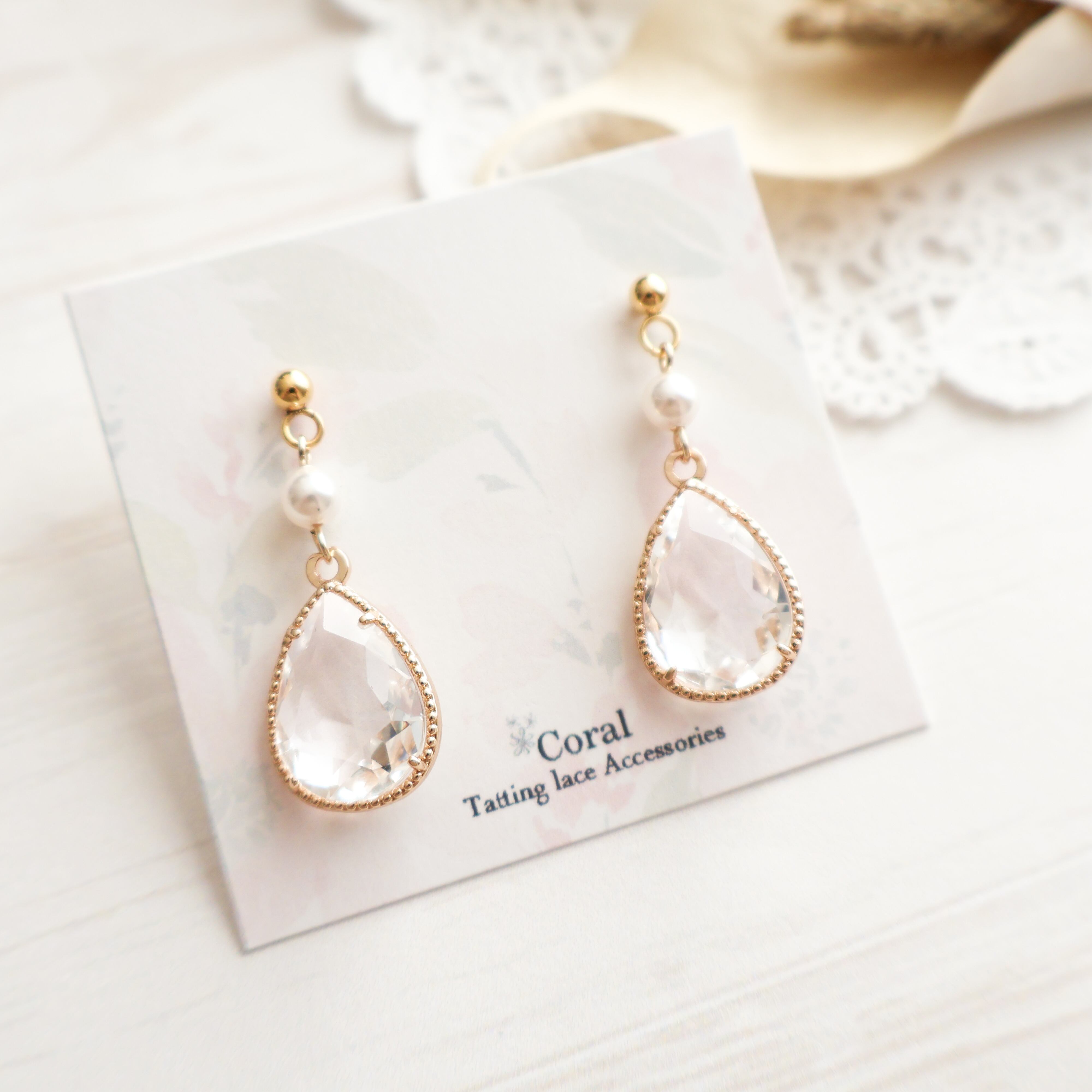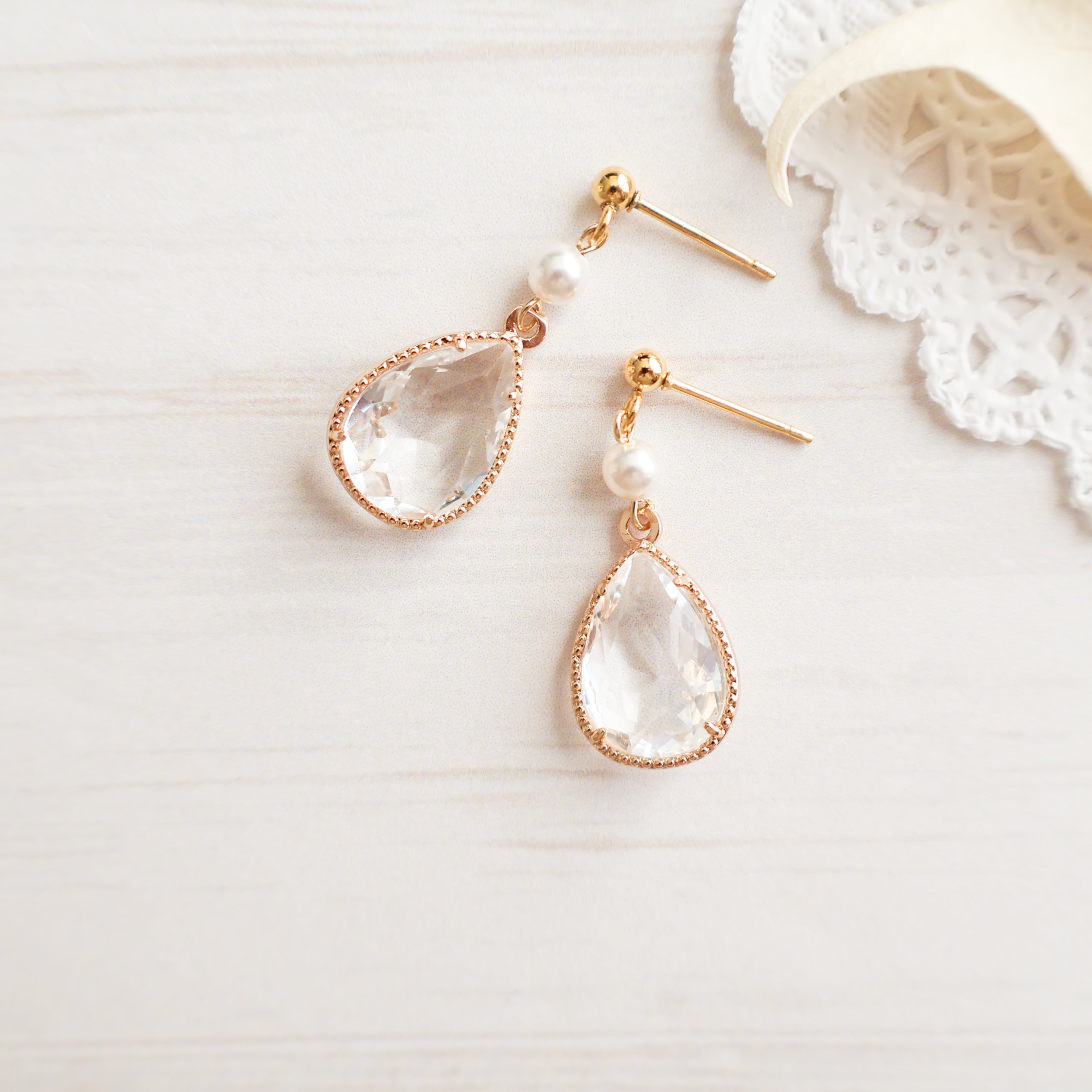輝くガラスドロップが耳元で揺れる、華やかさ溢れるピアス/イヤリングです。