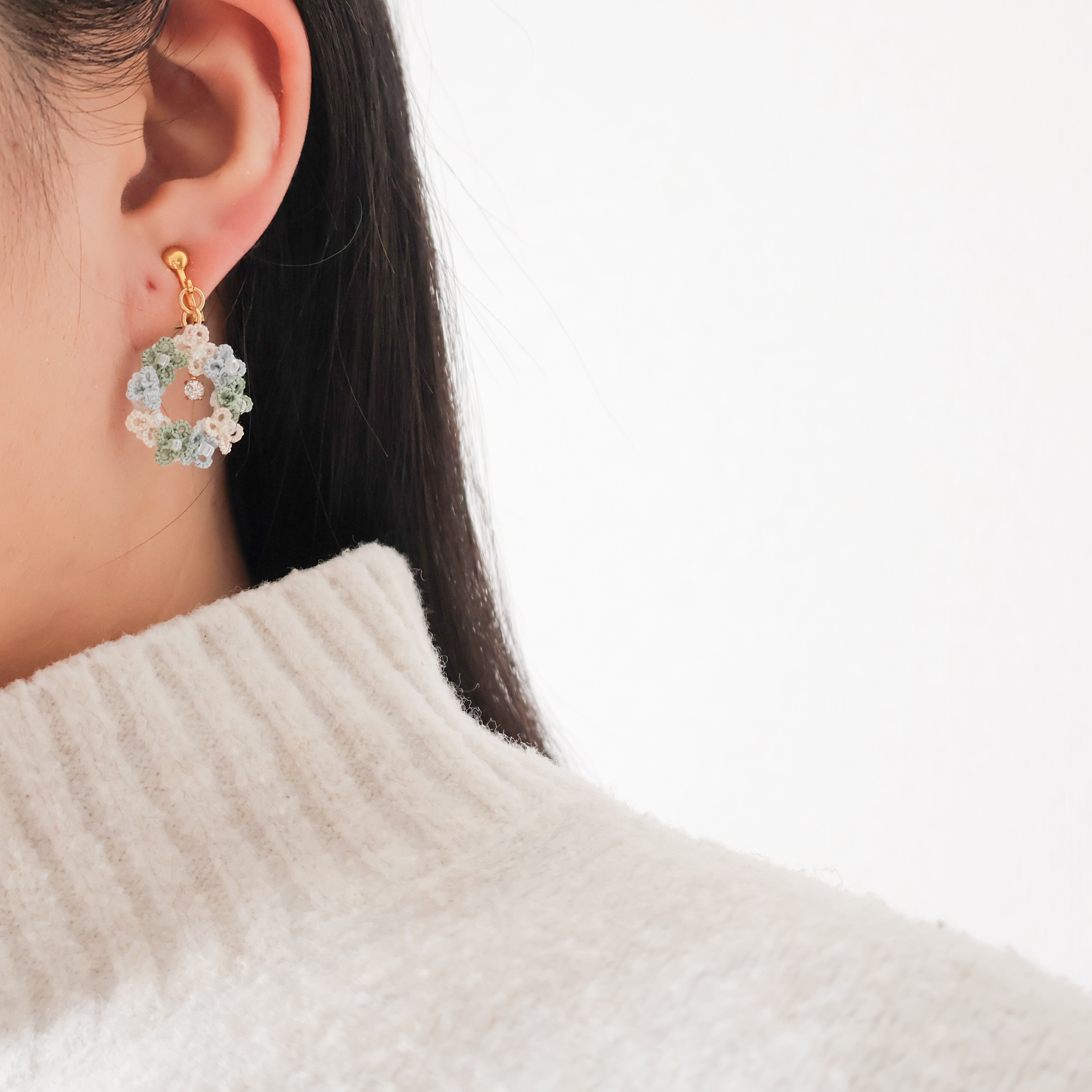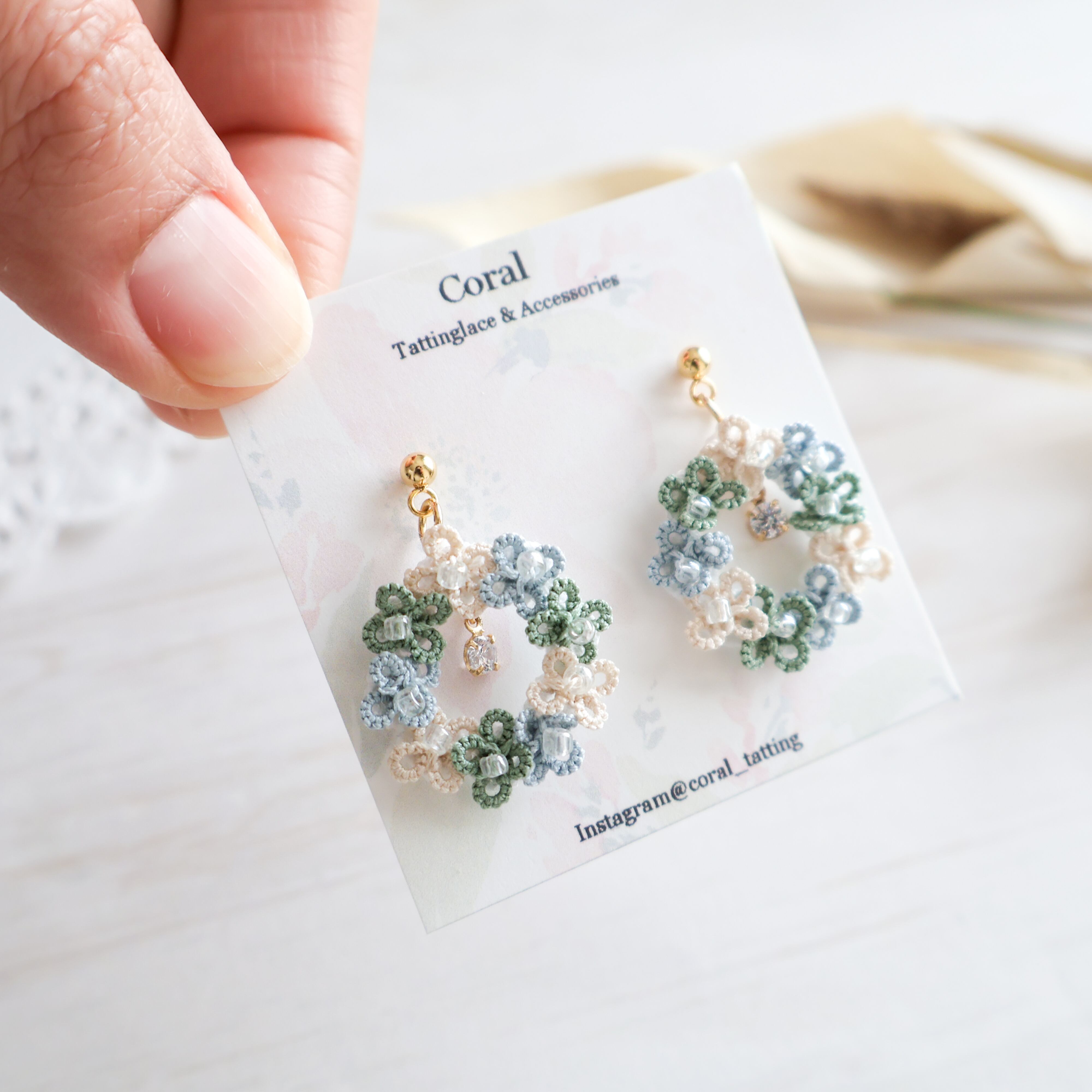 繊細な糸で一つ一つ手作業で編まれた約5mmの小さな花々が色とりどりに咲いていて、日々の日常に華やかさを添えてくれます。