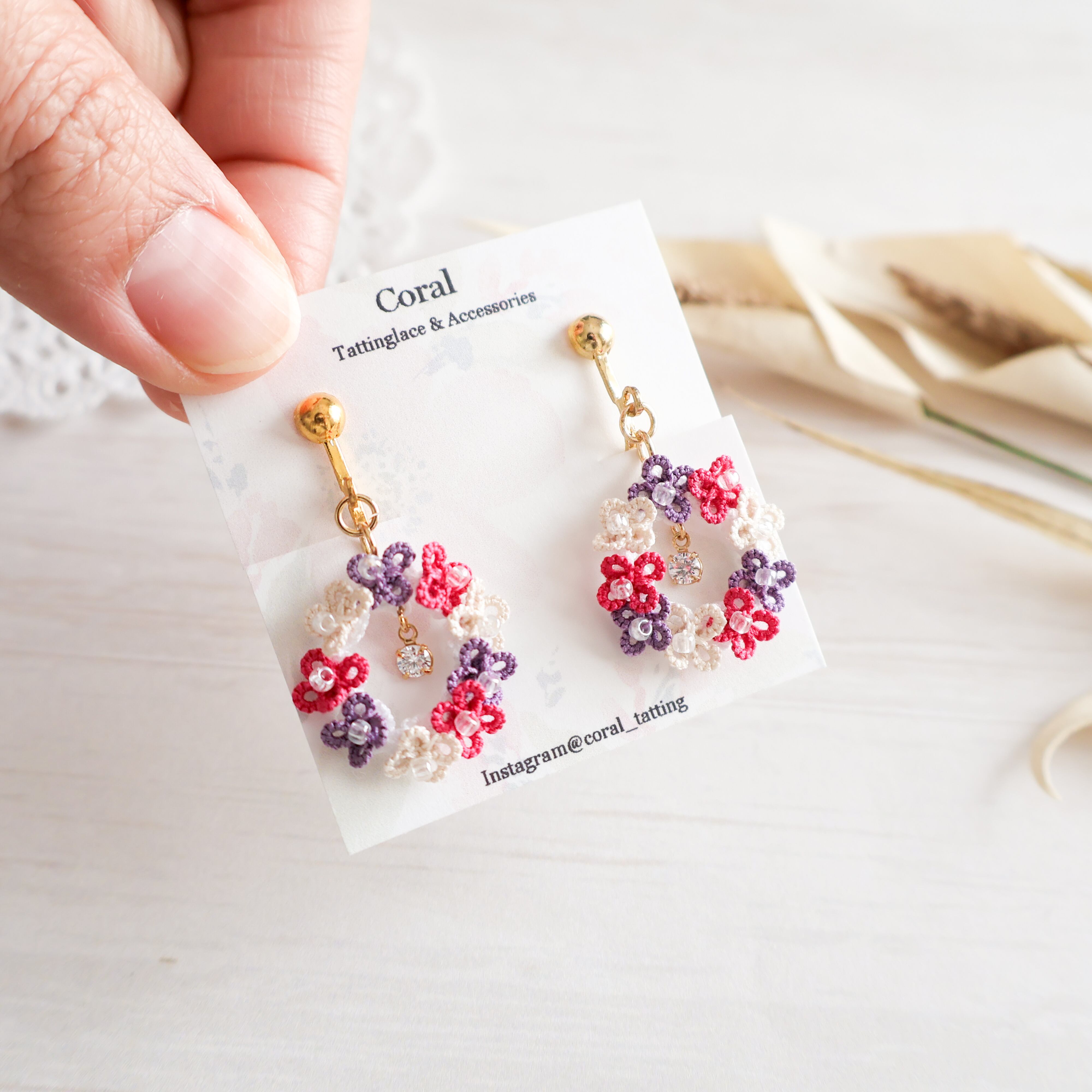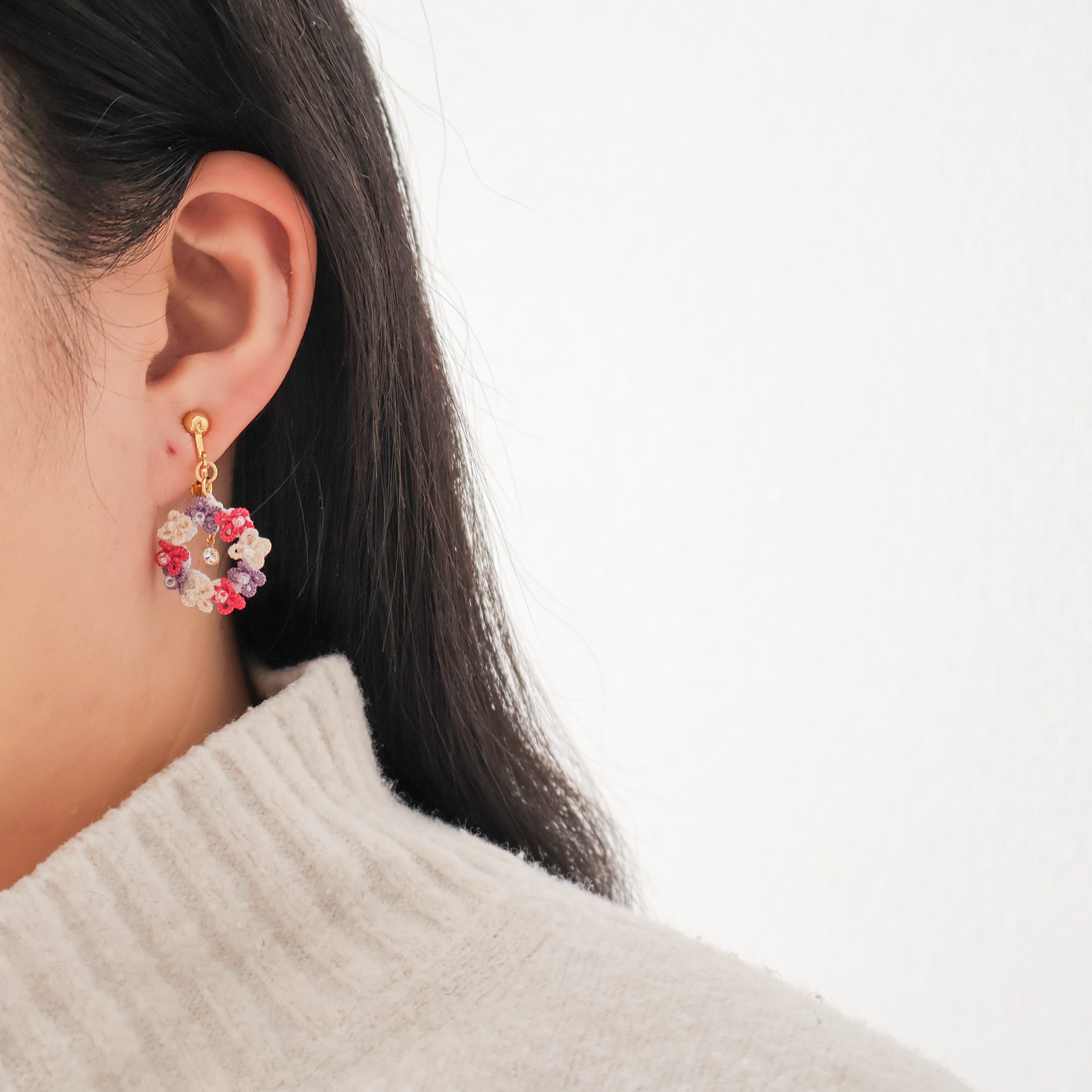 繊細な糸で一つ一つ手作業で編まれた約5mmの小さな花々が色とりどりに咲いていて、日々の日常に華やかさを添えてくれます。