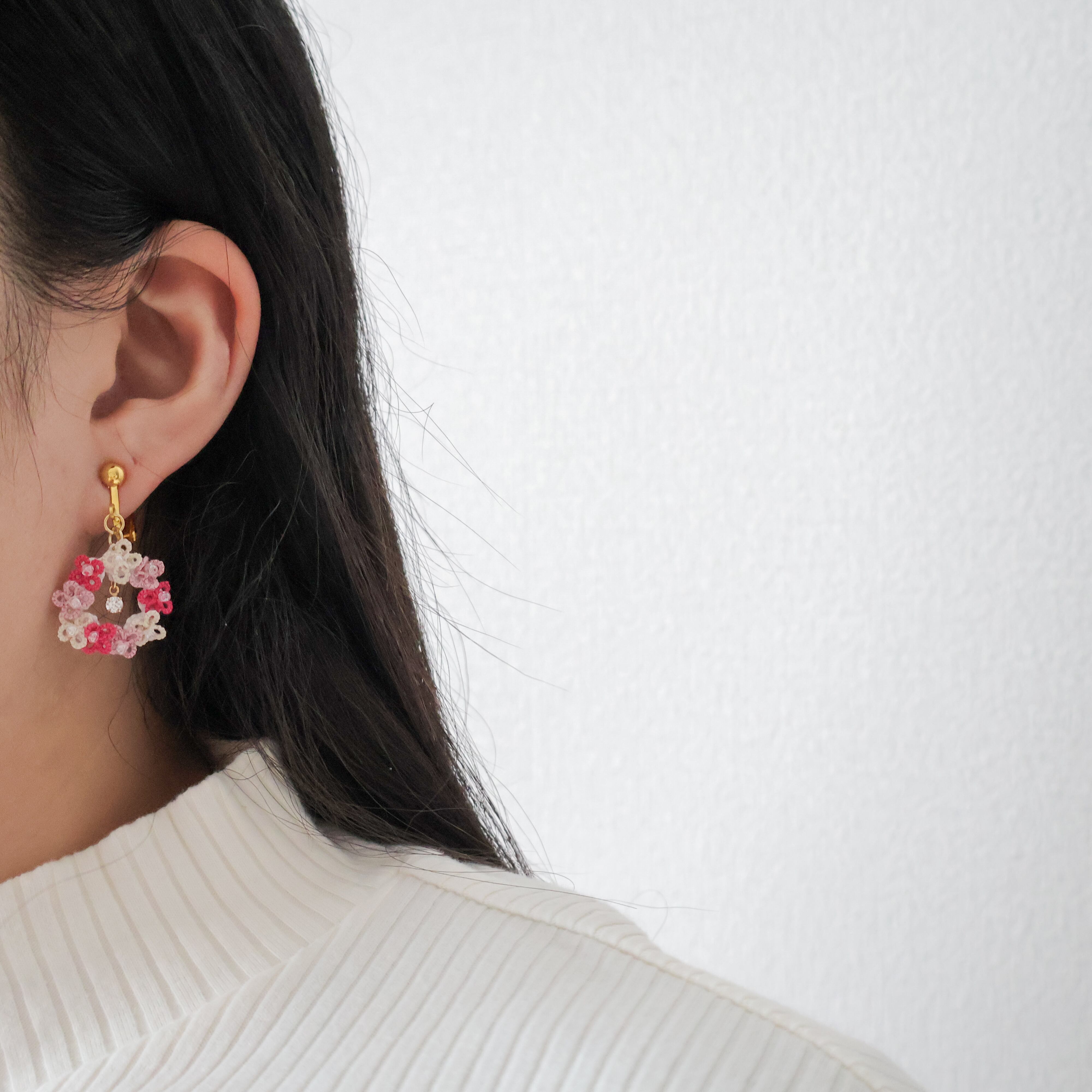 繊細な糸で一つ一つ手作業で編まれた約5mmの小さな花々が色とりどりに咲いていて、日々の日常に華やかさを添えてくれます。