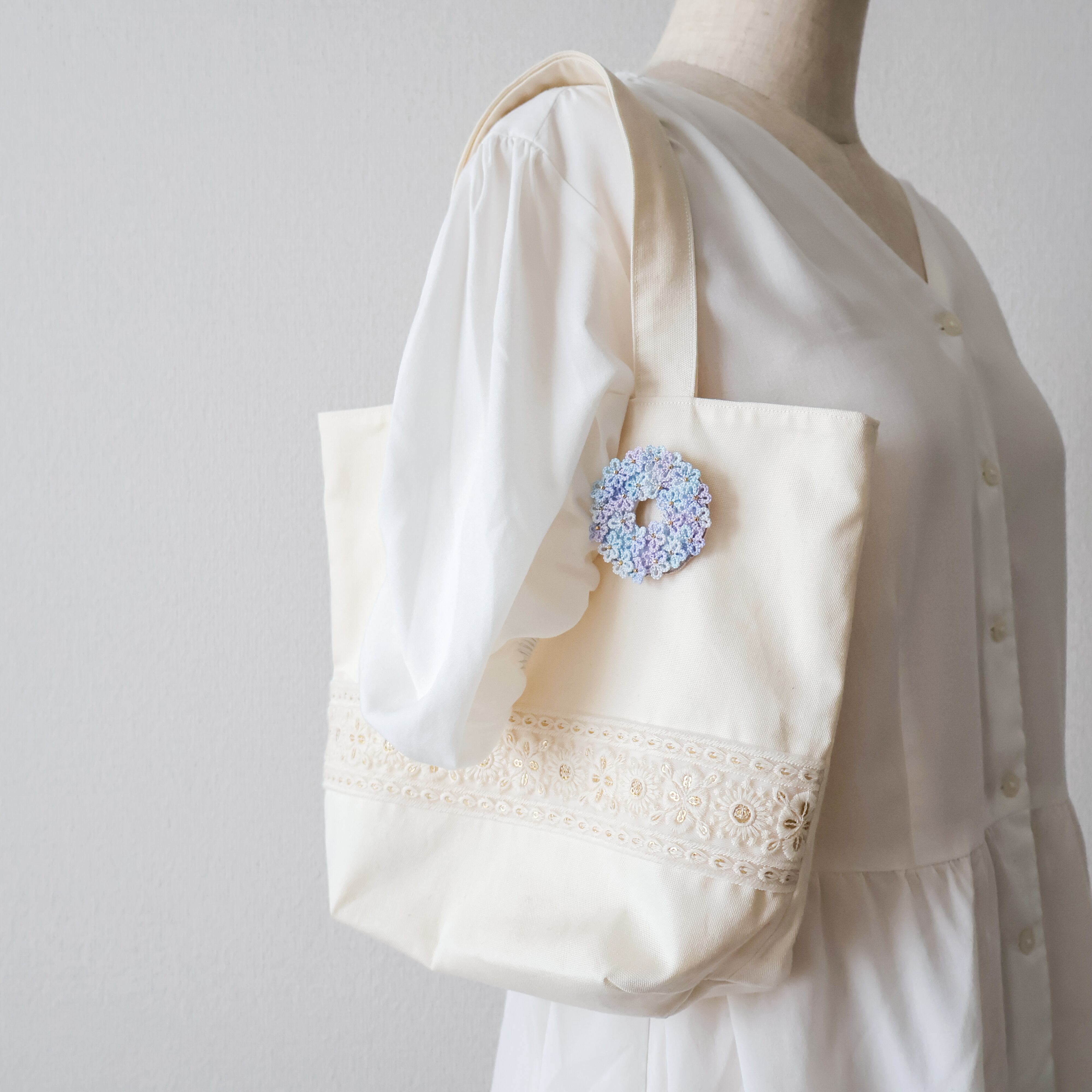 一つ一つ手編みしたお花モチーフを使用することにより、レース編み特有のぬくもり感を与えてくれます。