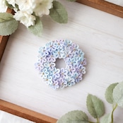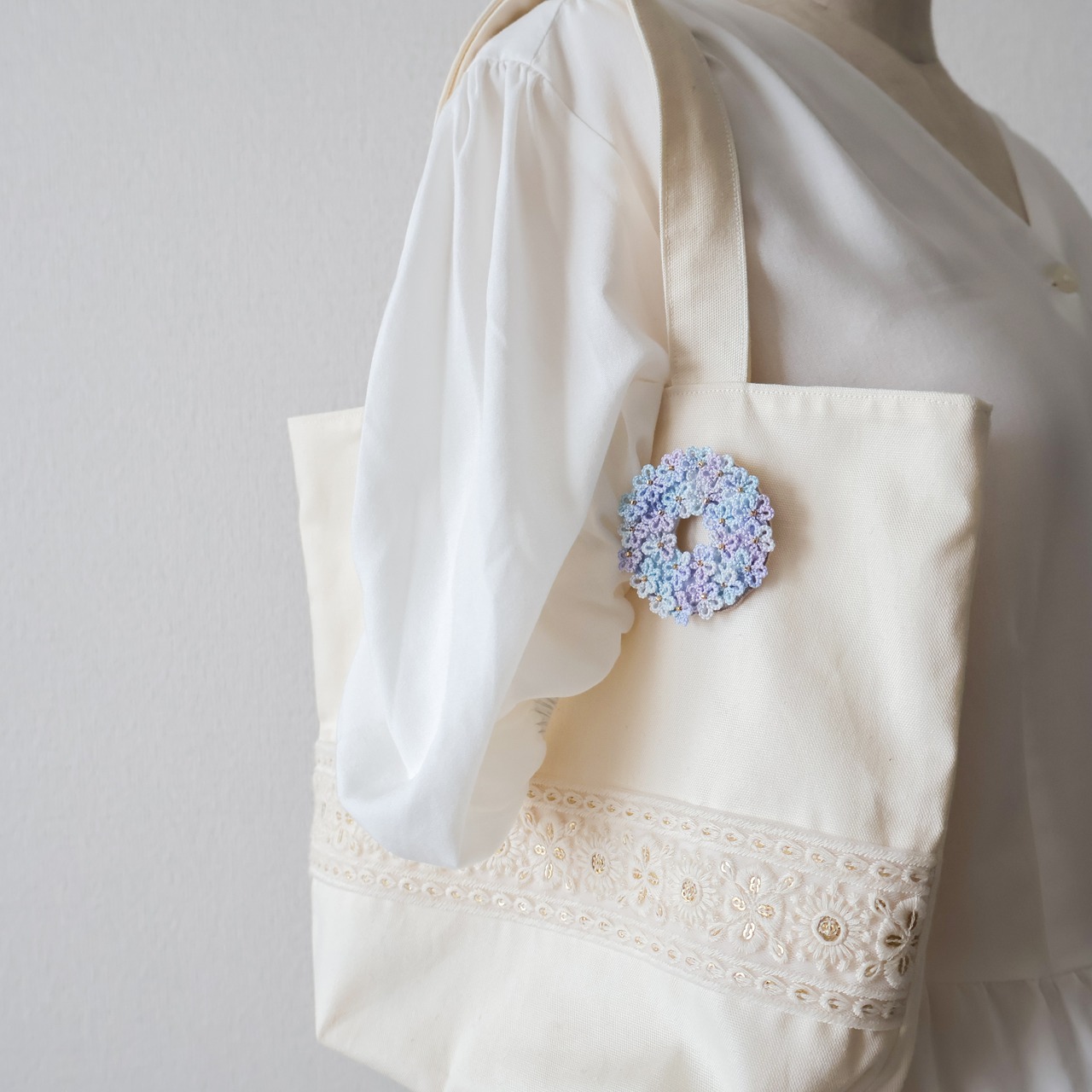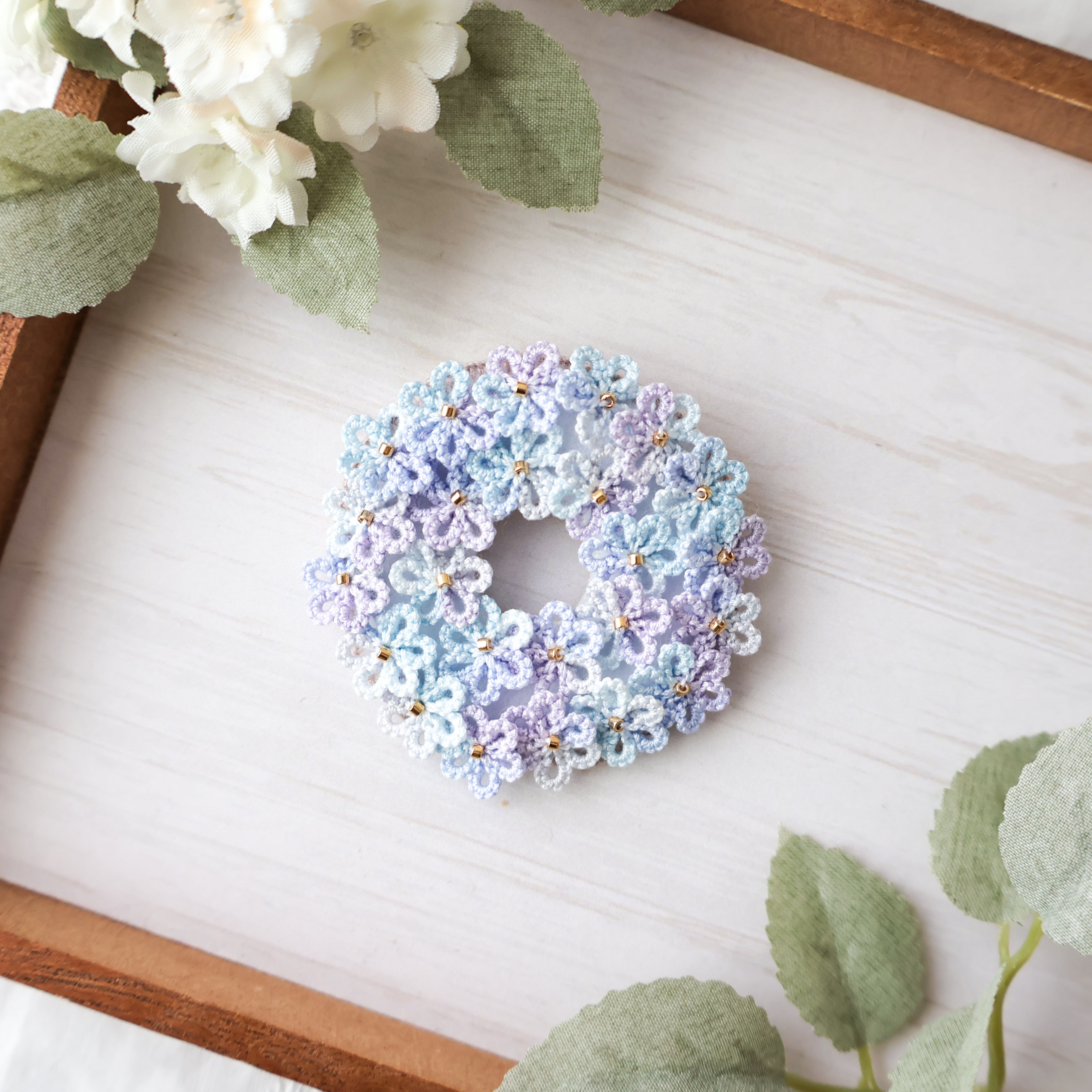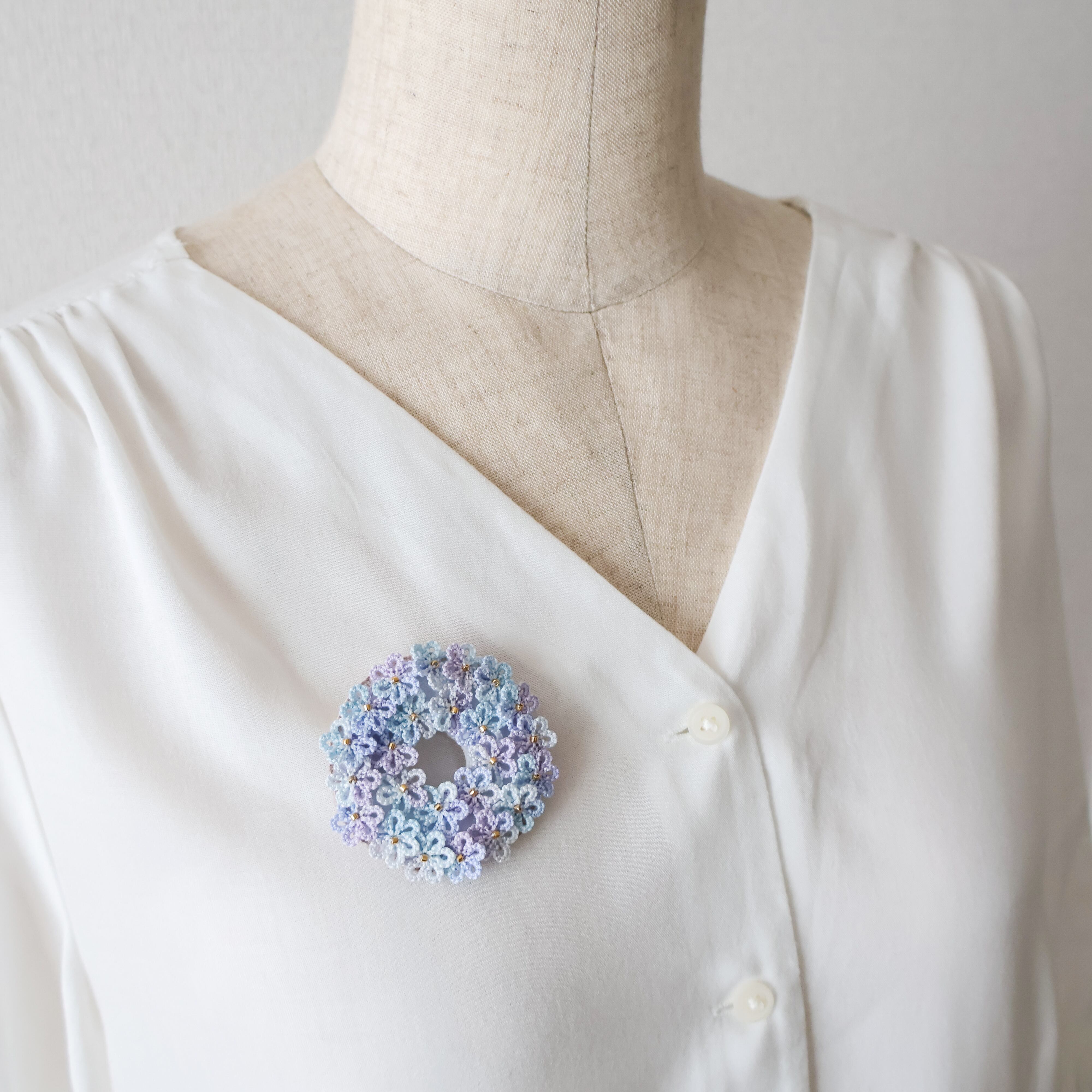 そして、グラデーションの糸を使用して編んでいるので、色とりどりな淡い華やかなブローチとなっております。
