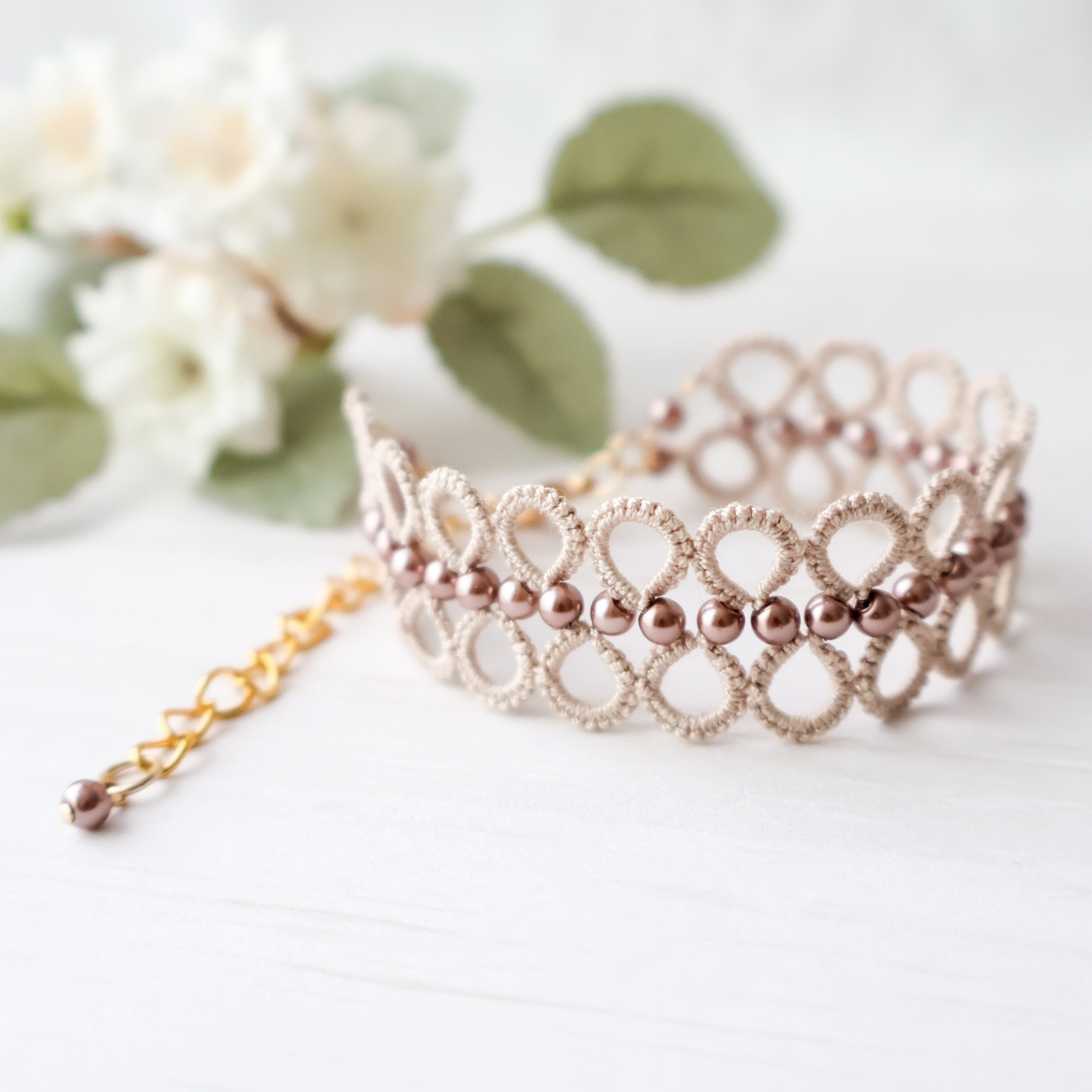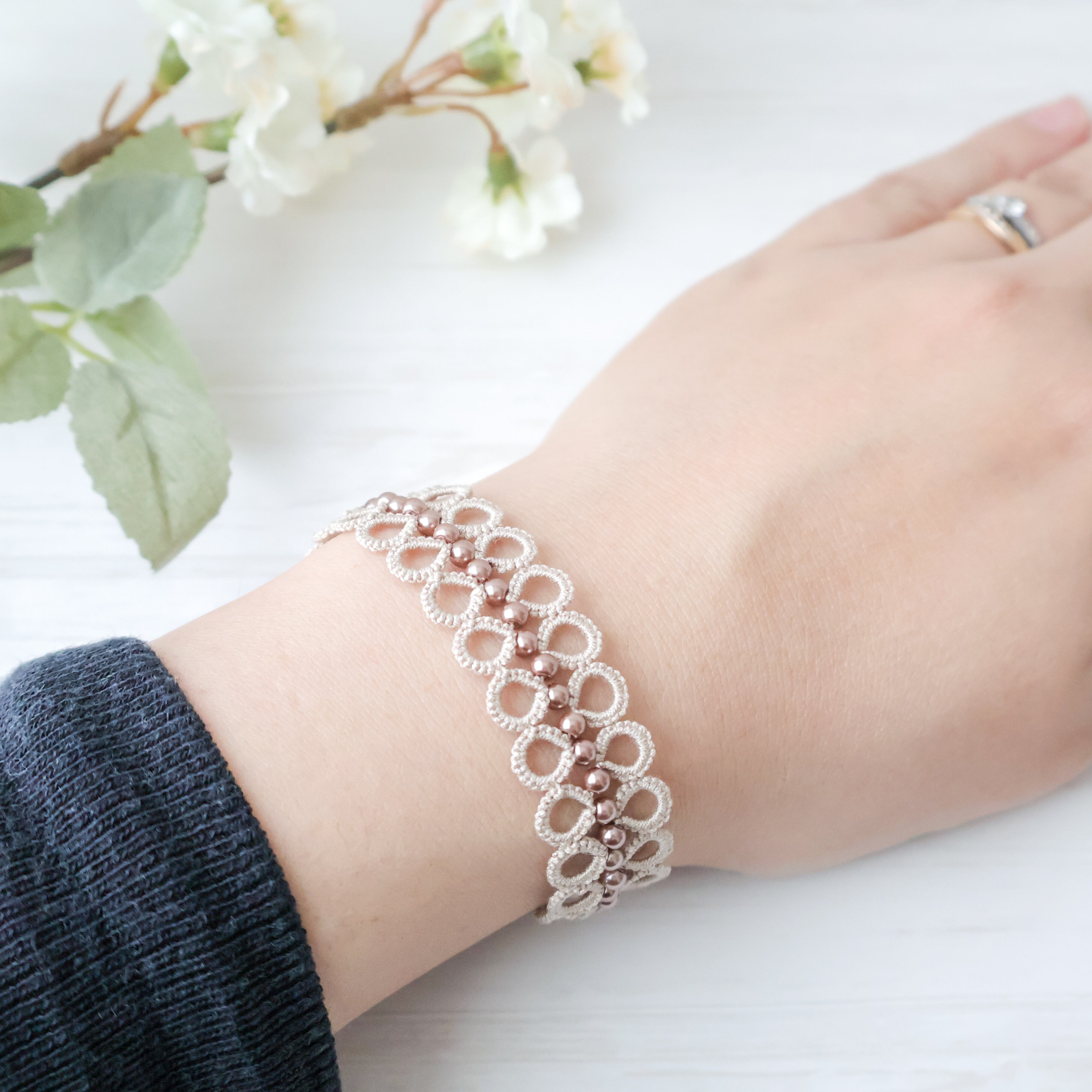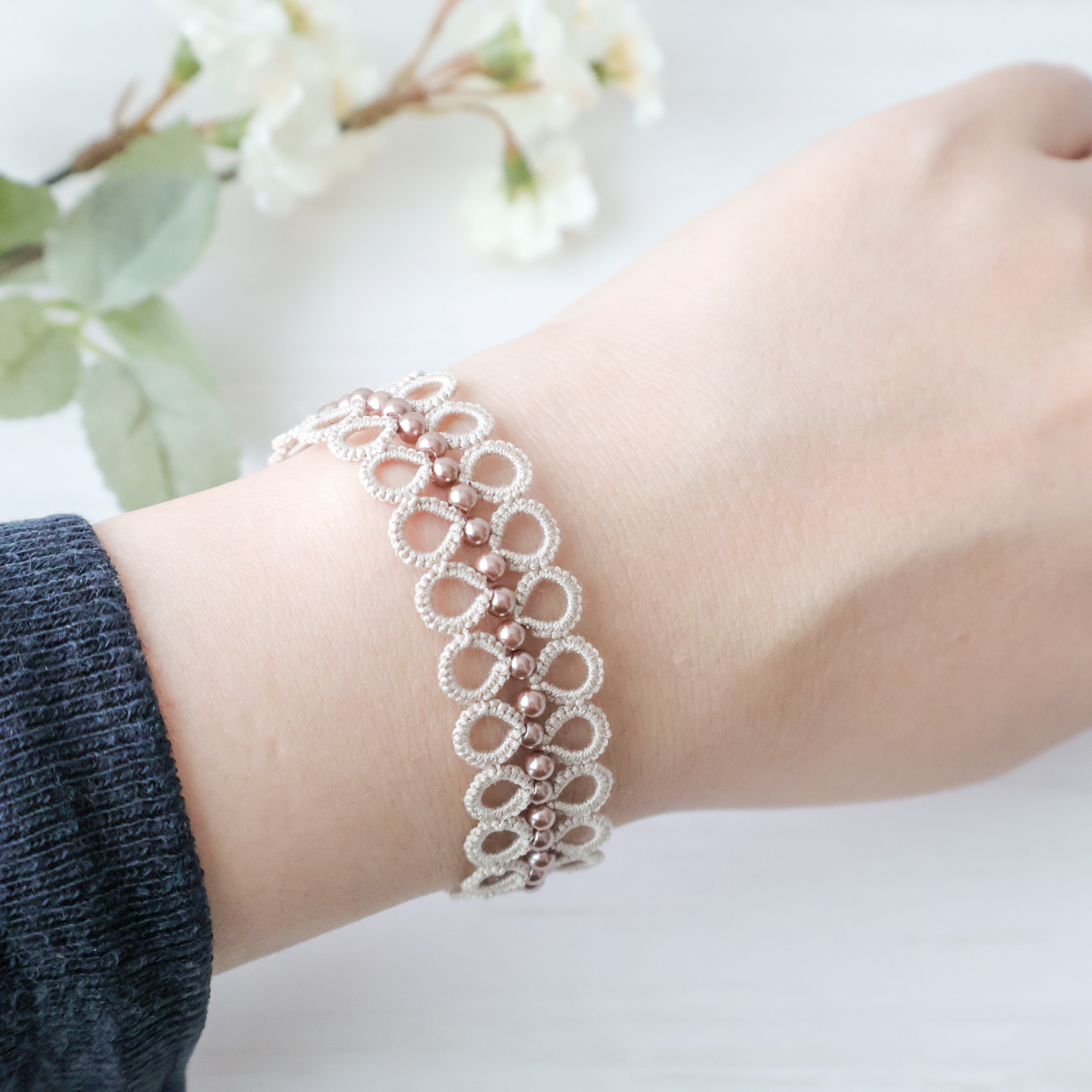 パールを一緒に編み込むことで、シンプルながらも上品なデザインに仕立てました。