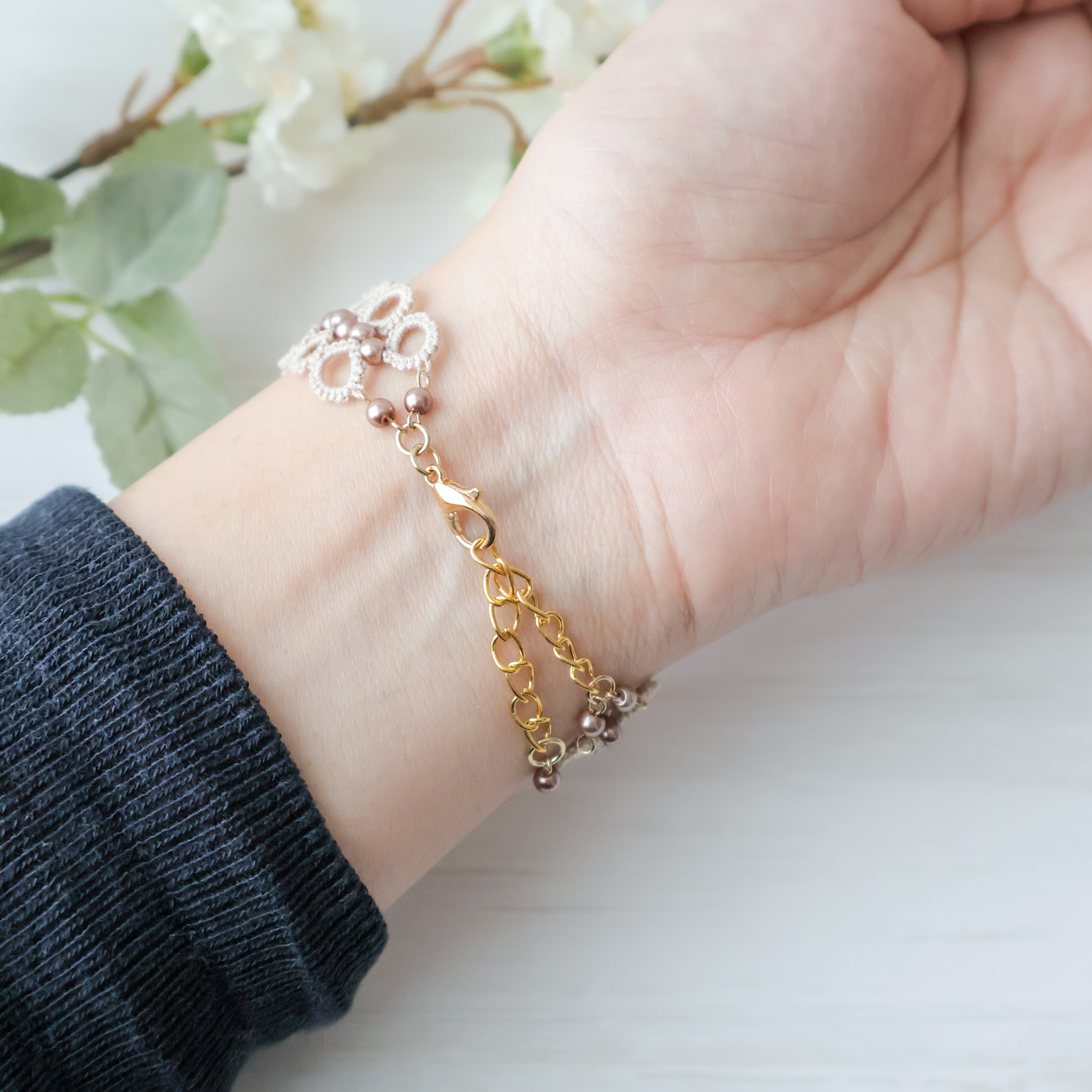 モチーフ自体は綿100%の糸で編んでいるためとても軽いのが特徴のブレスレットになります。