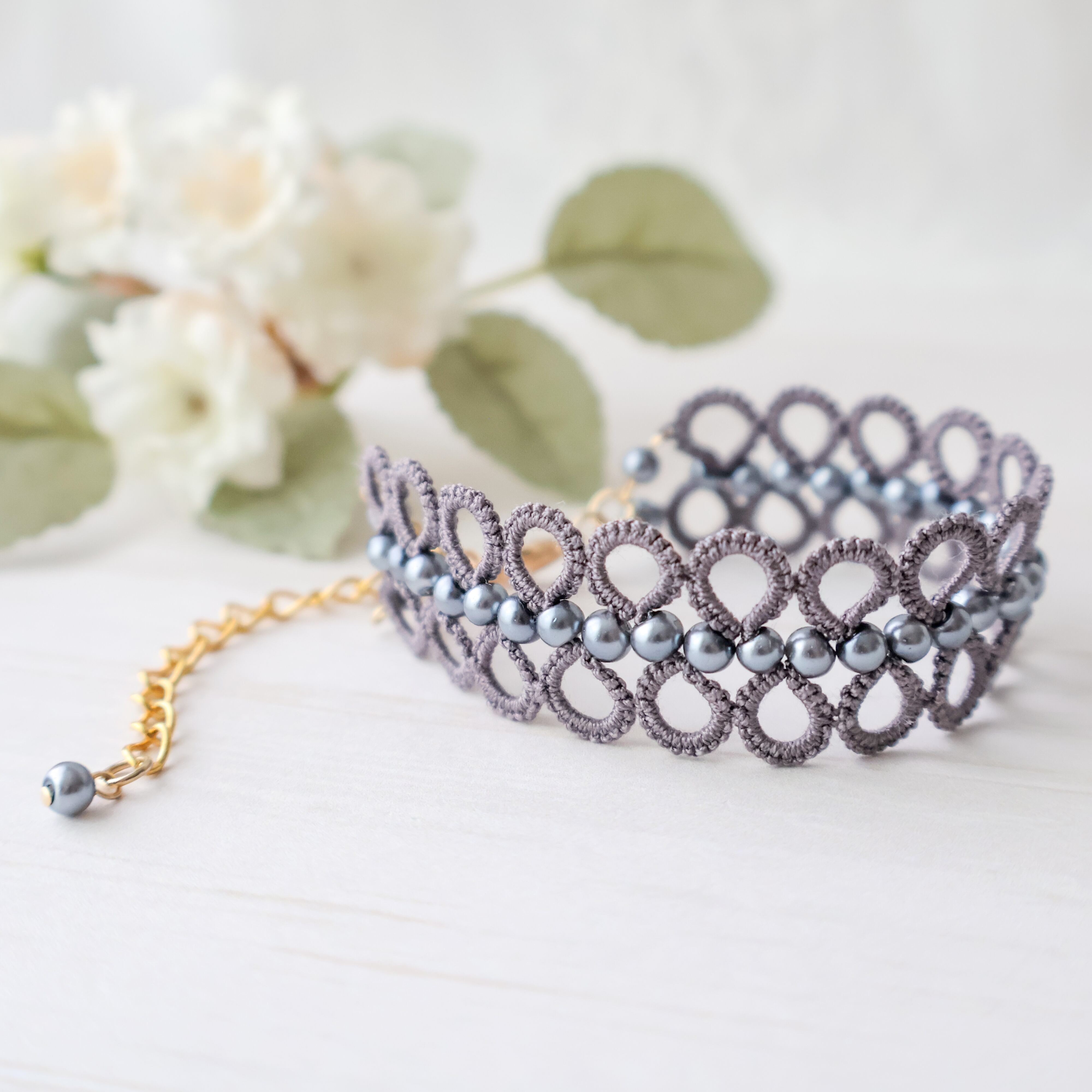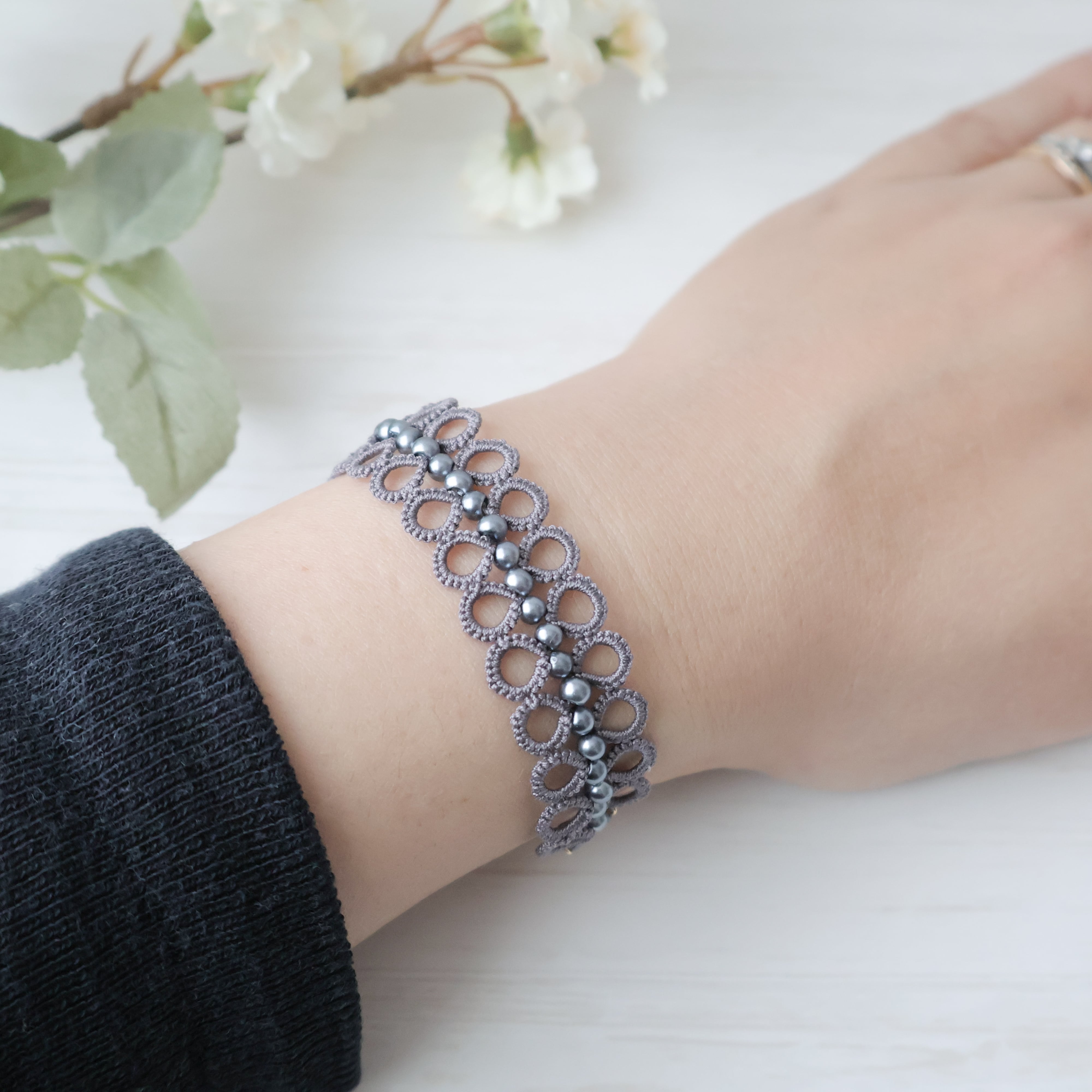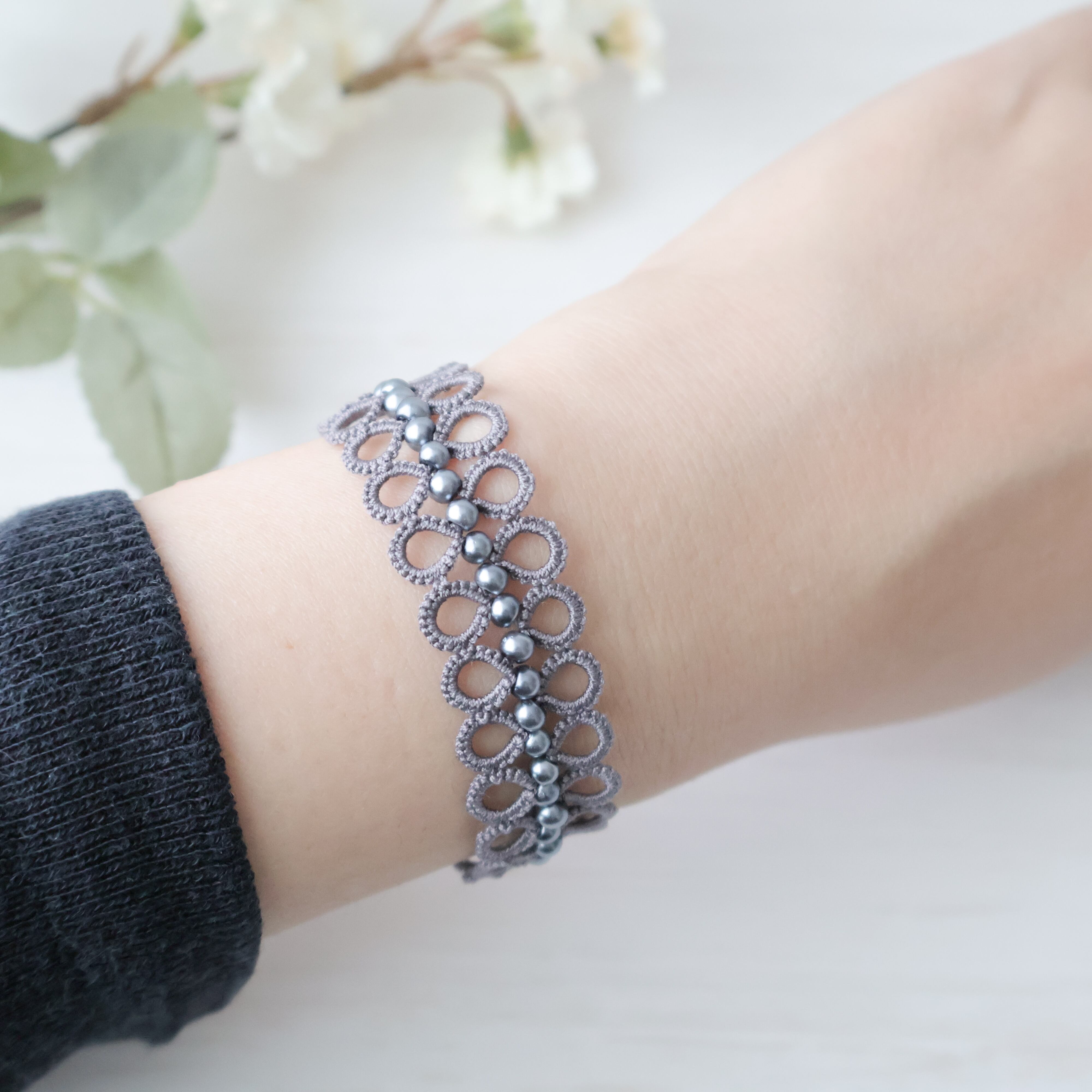 パールを一緒に編み込むことで、シンプルながらも上品なデザインに仕立てました。