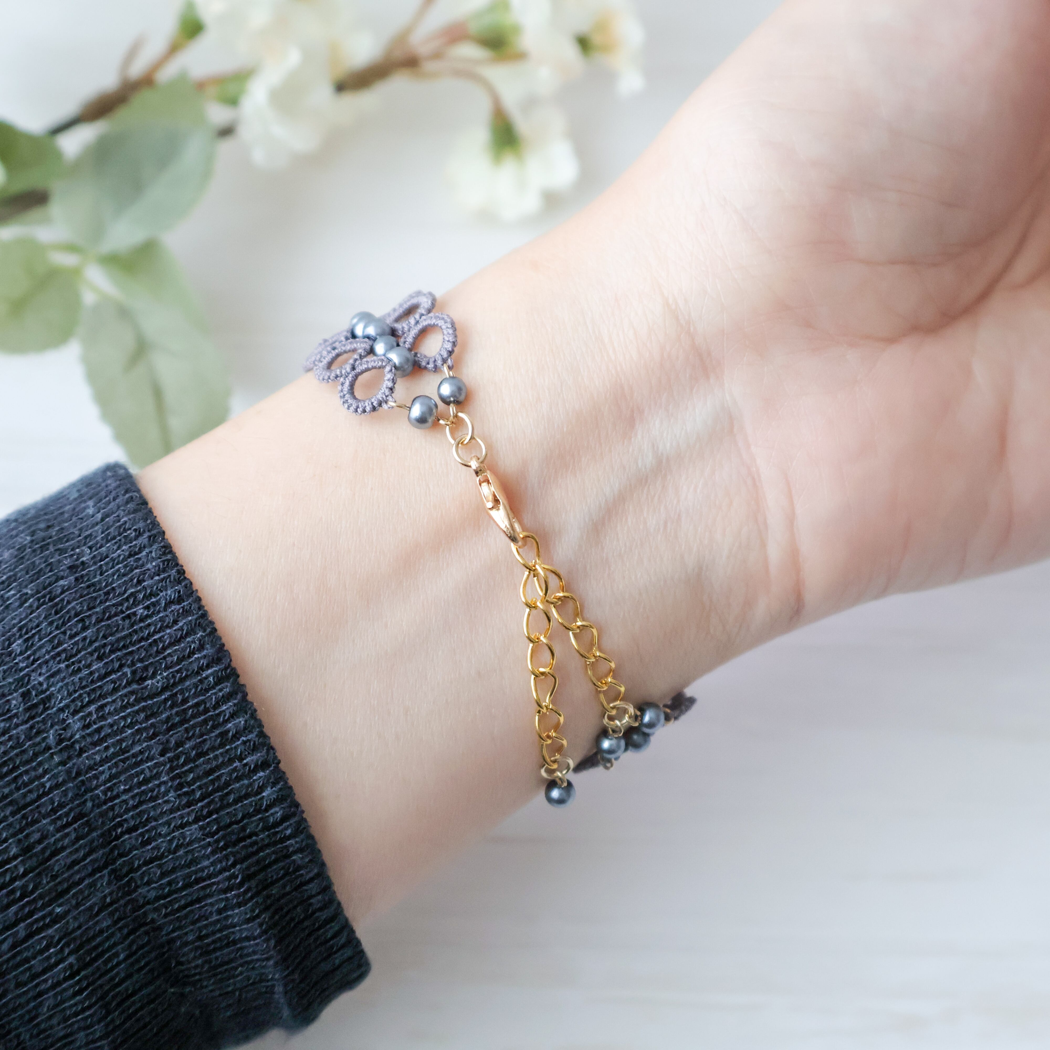 モチーフ自体は綿100%の糸で編んでいるためとても軽いのが特徴のブレスレットになります。
