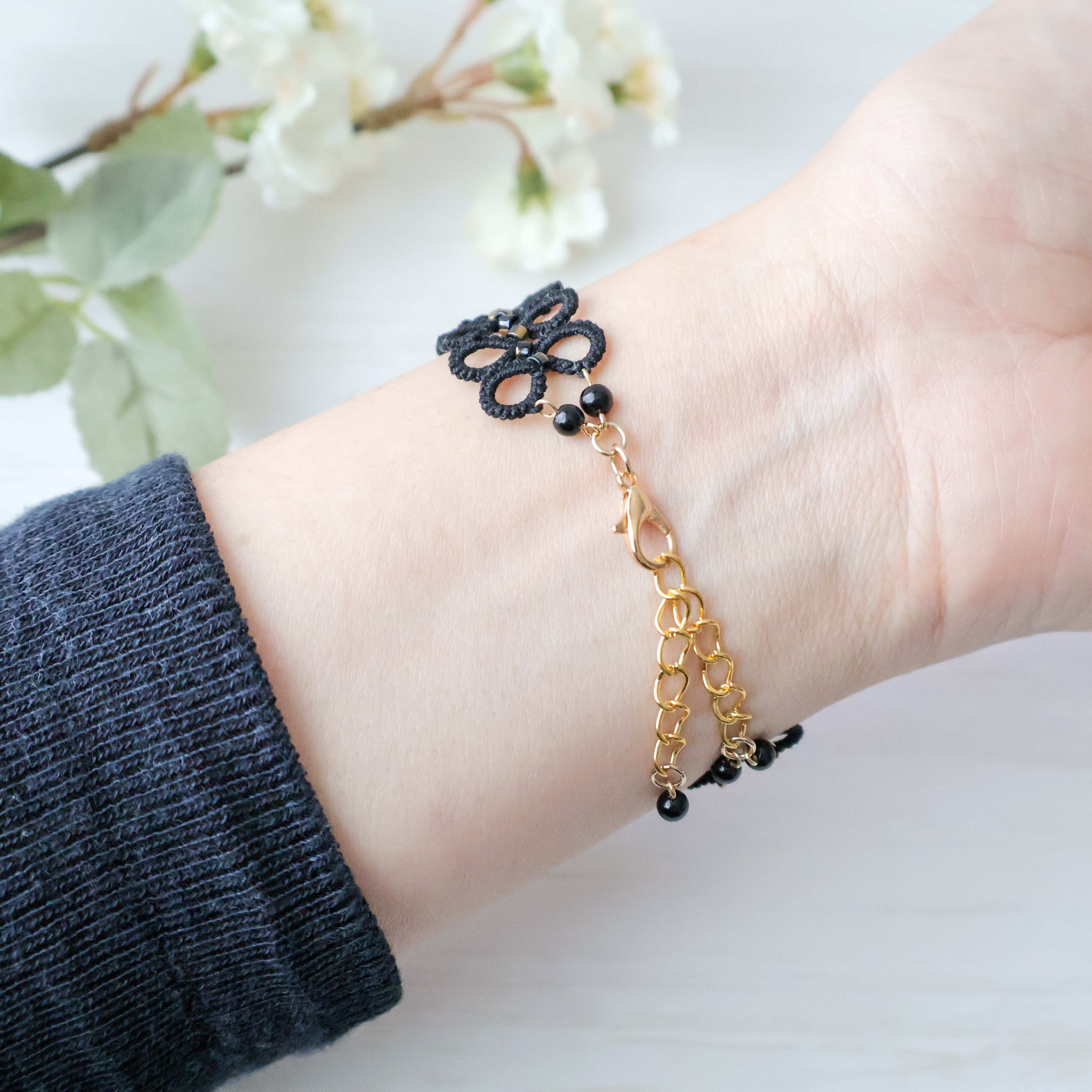 モチーフ自体は綿100%の糸で編んでいるためとても軽いのが特徴のブレスレットになります。