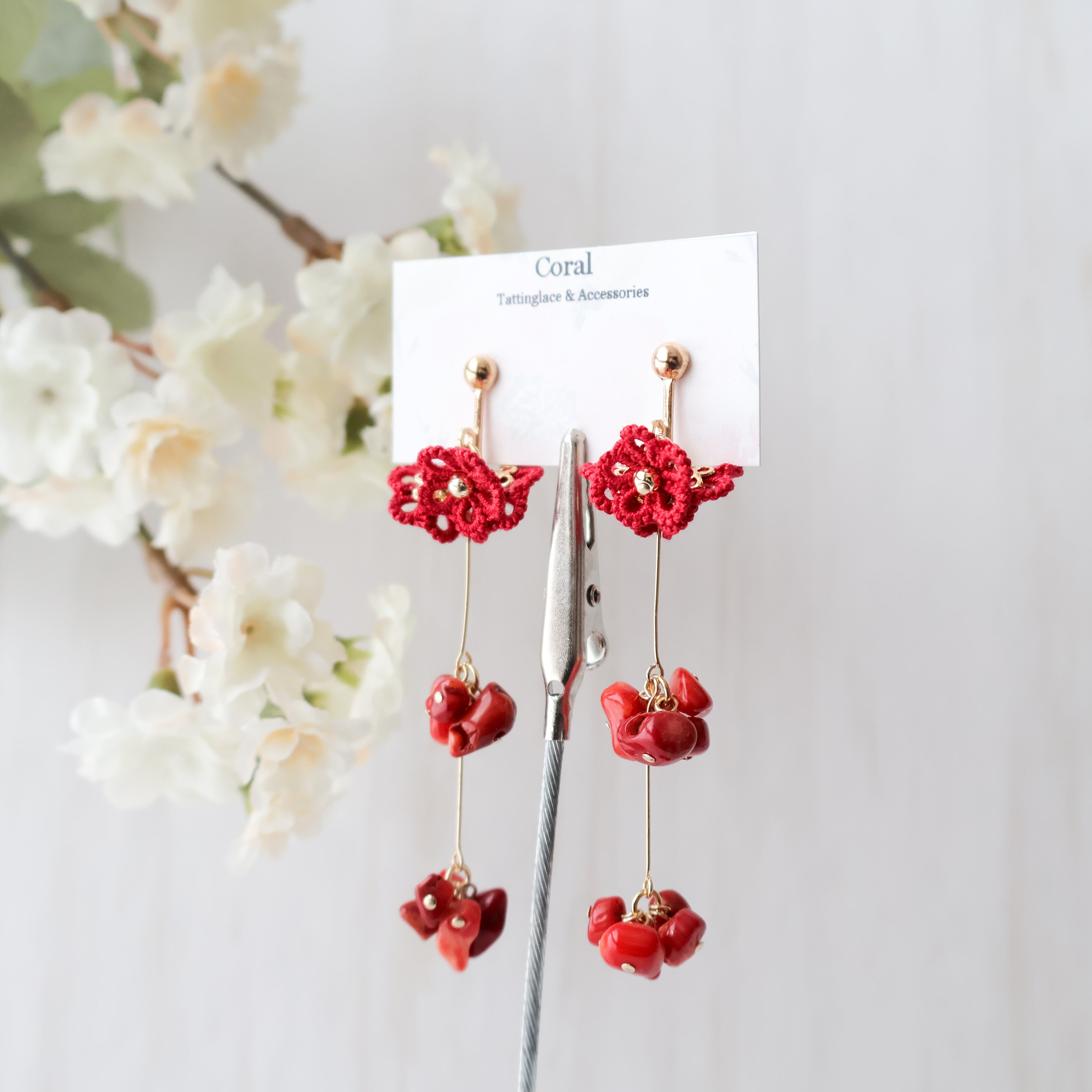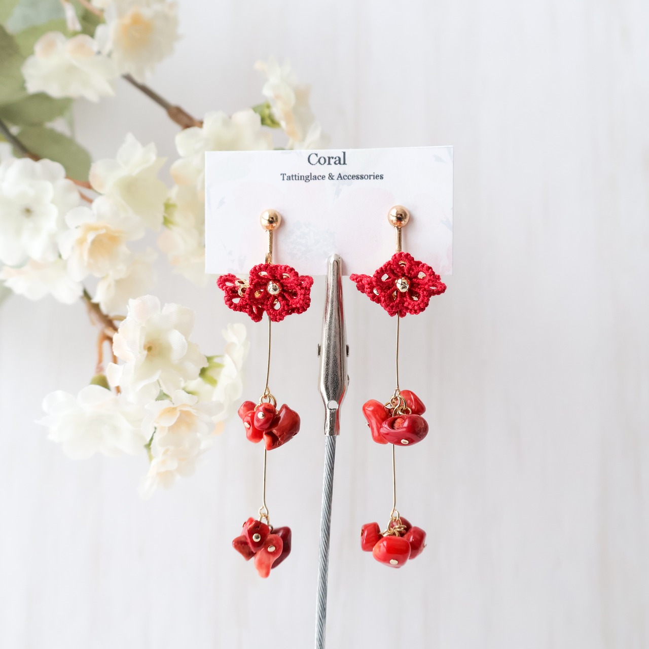 天然石はレッドコーラル(赤珊瑚)を使用。