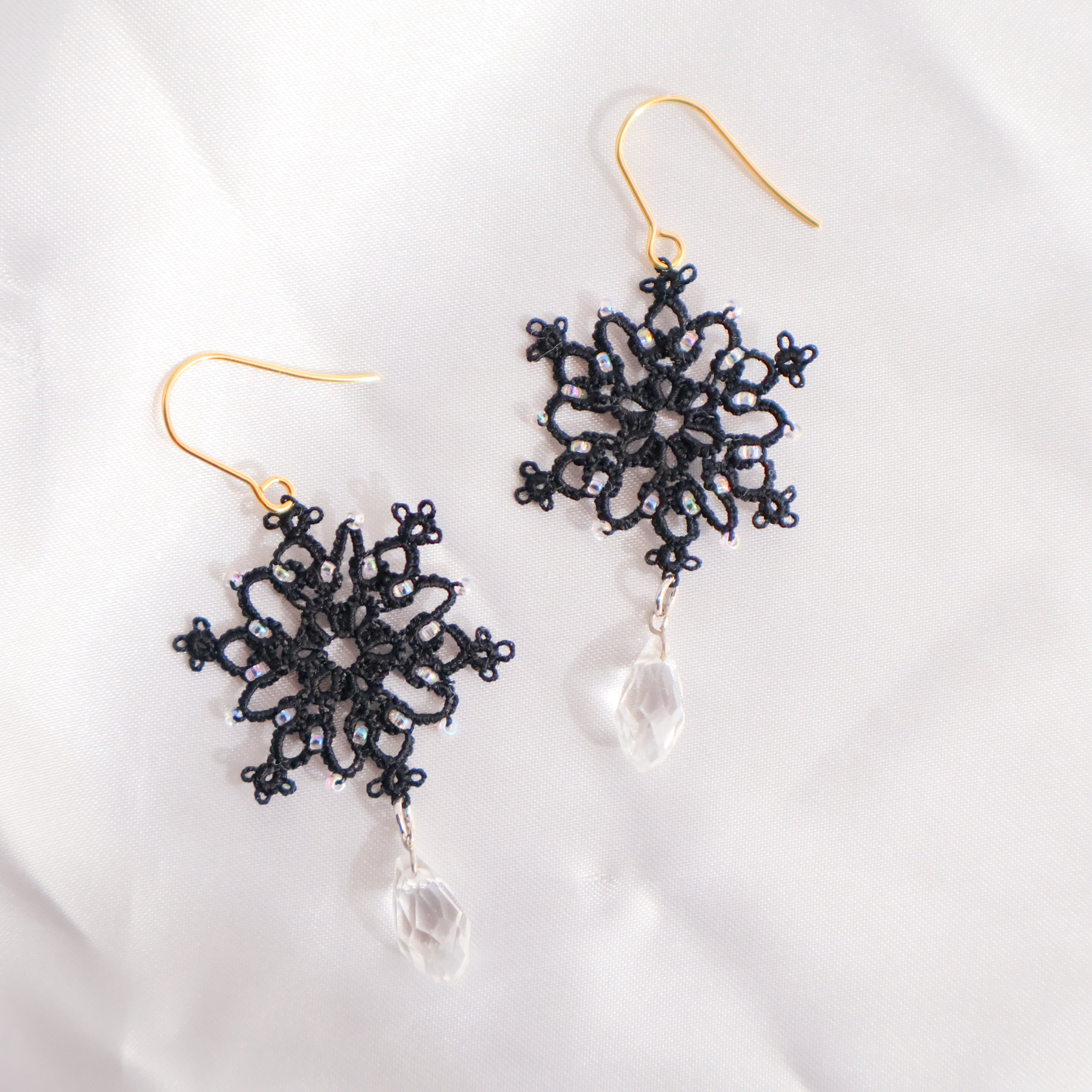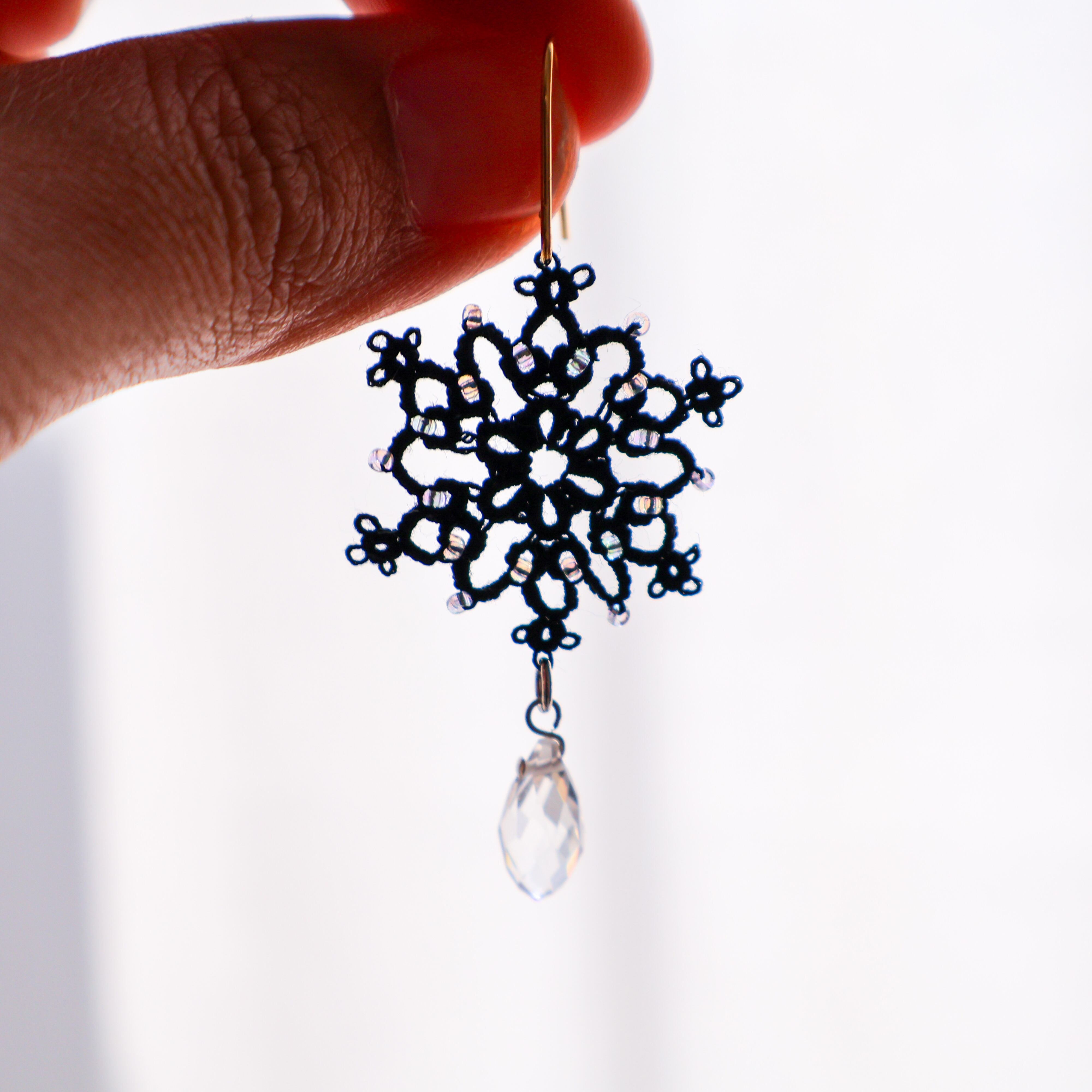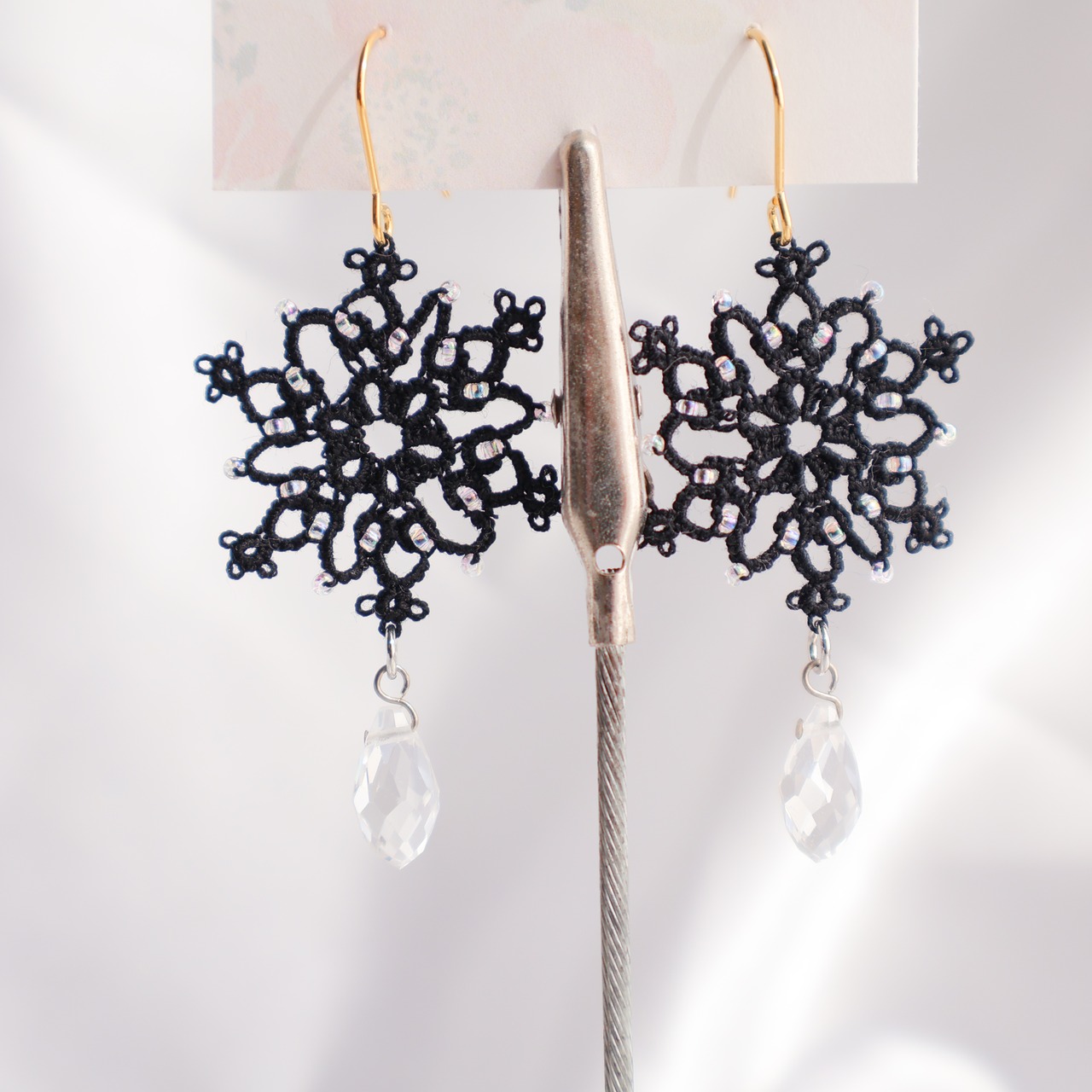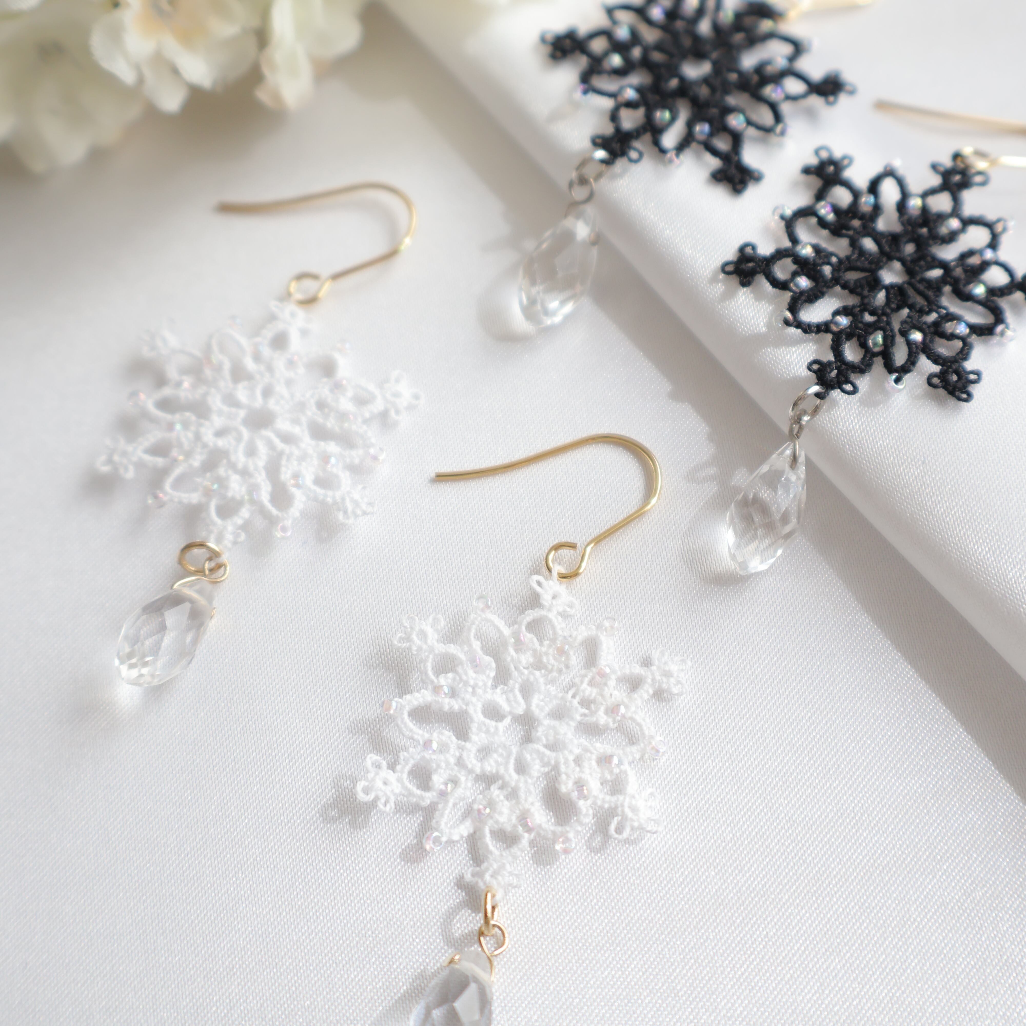 国産の極細コットンの糸で結った雪の結晶モチーフ